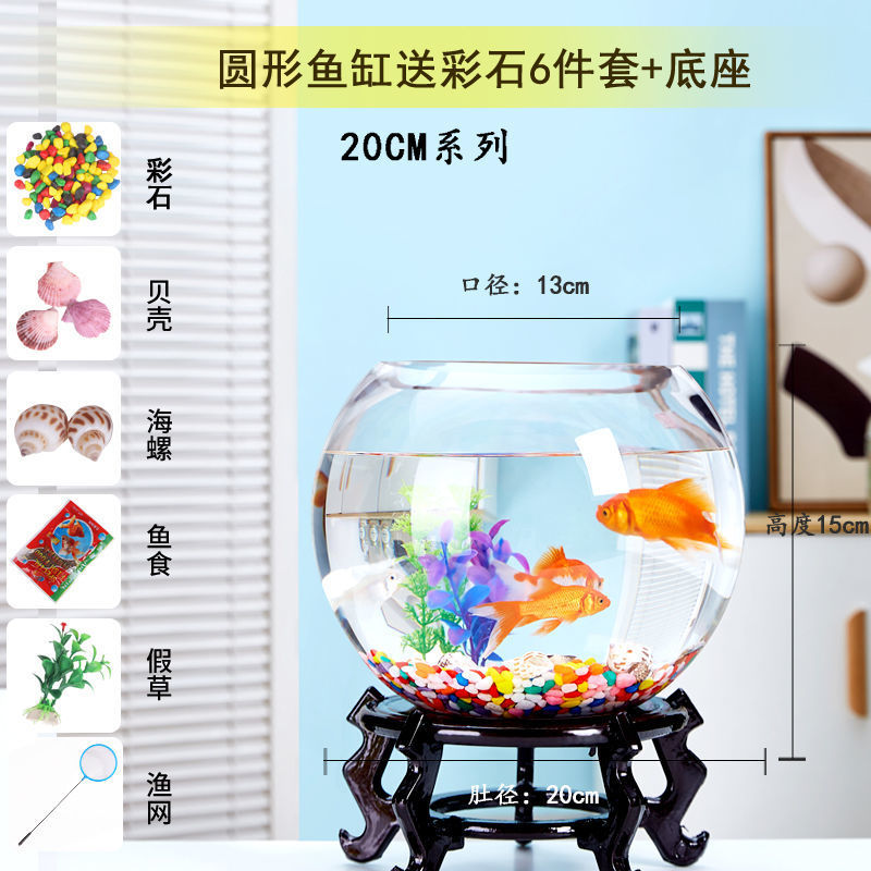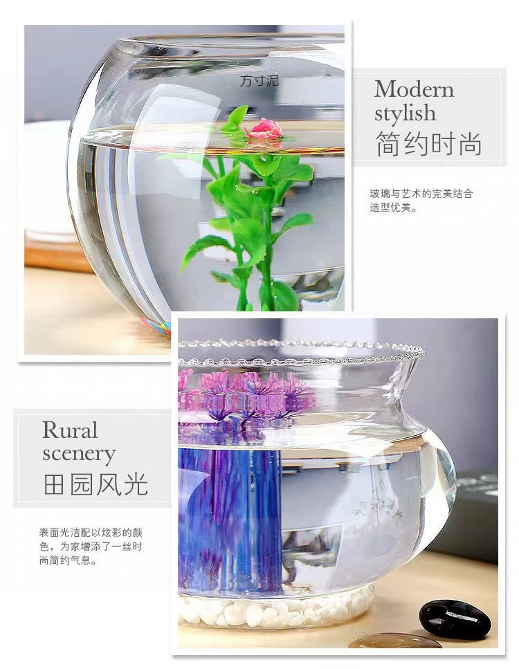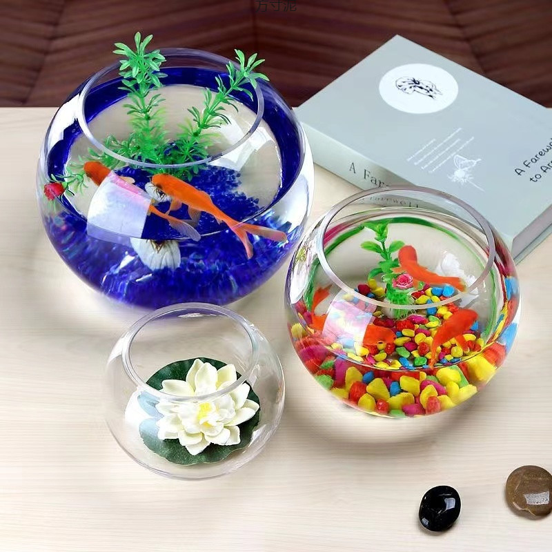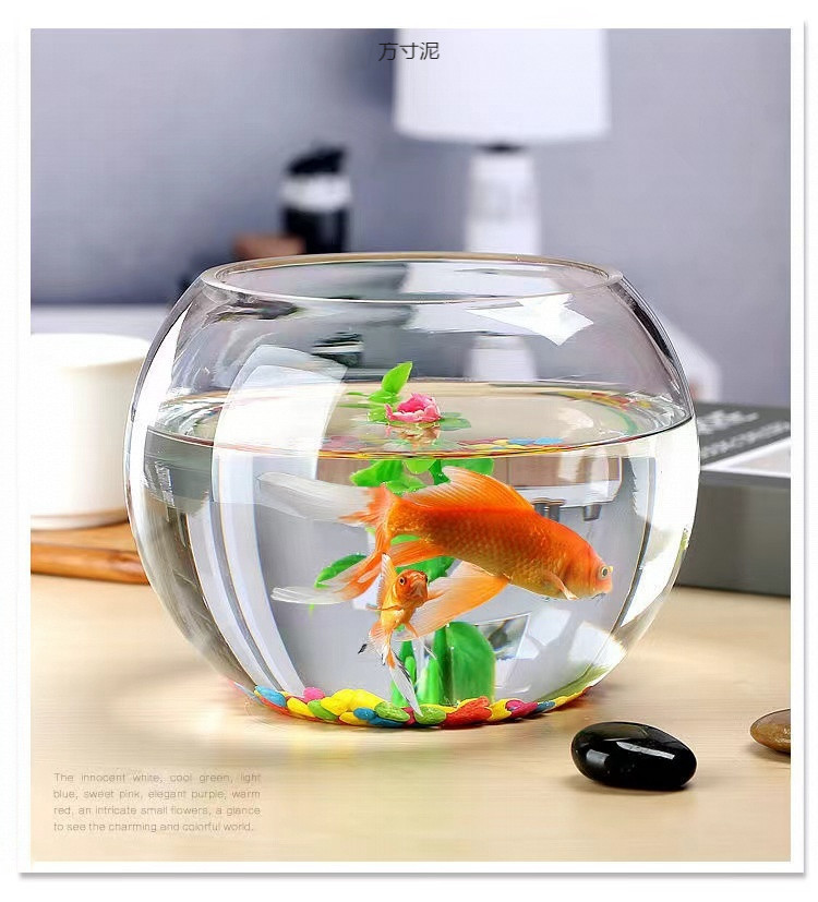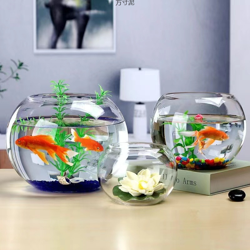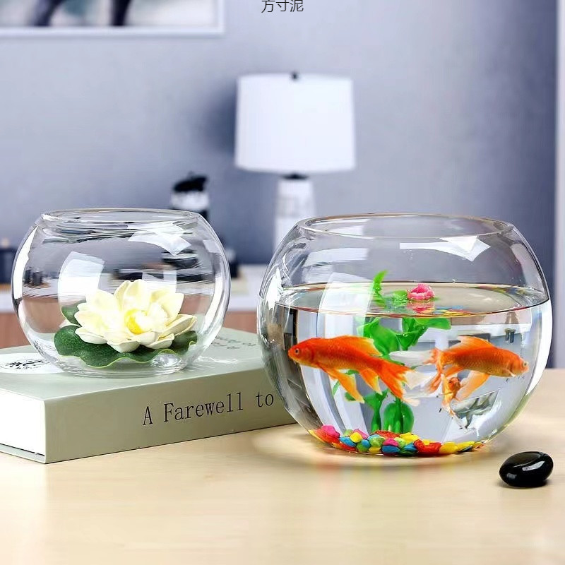 두꺼운 둥근 수조 유리 수경 수조 작은 홈 오피스 데스크탑 금붕어 미니 수조 그릇 연꽃