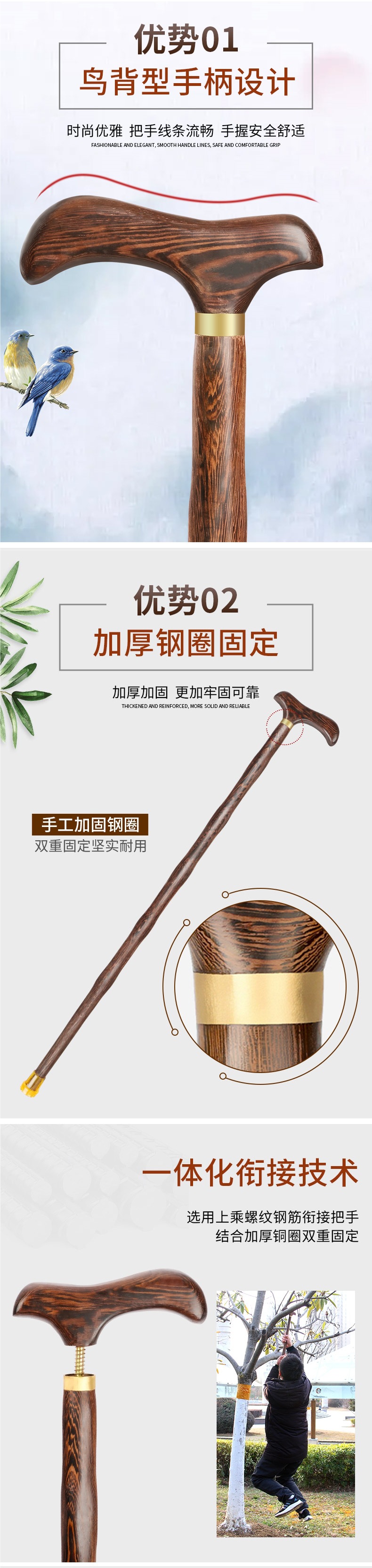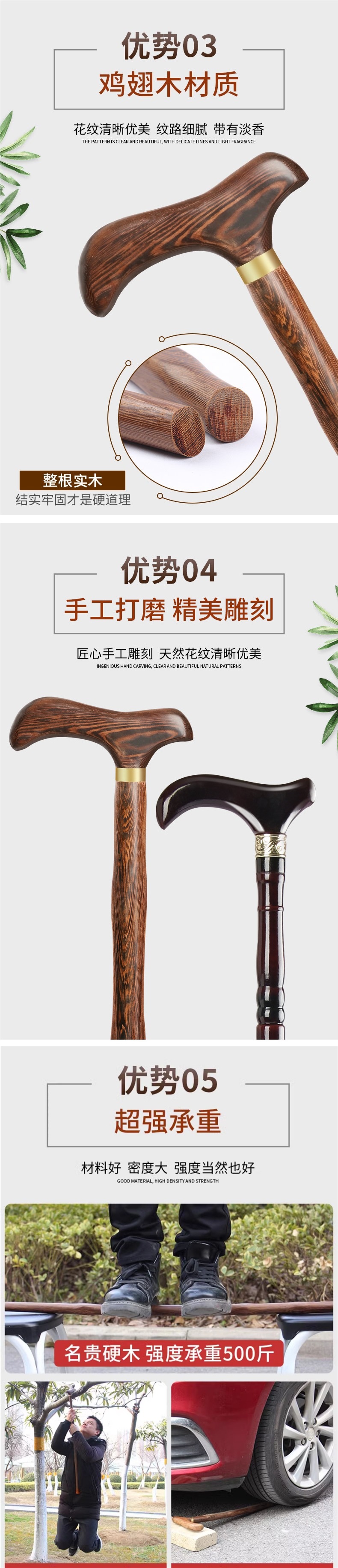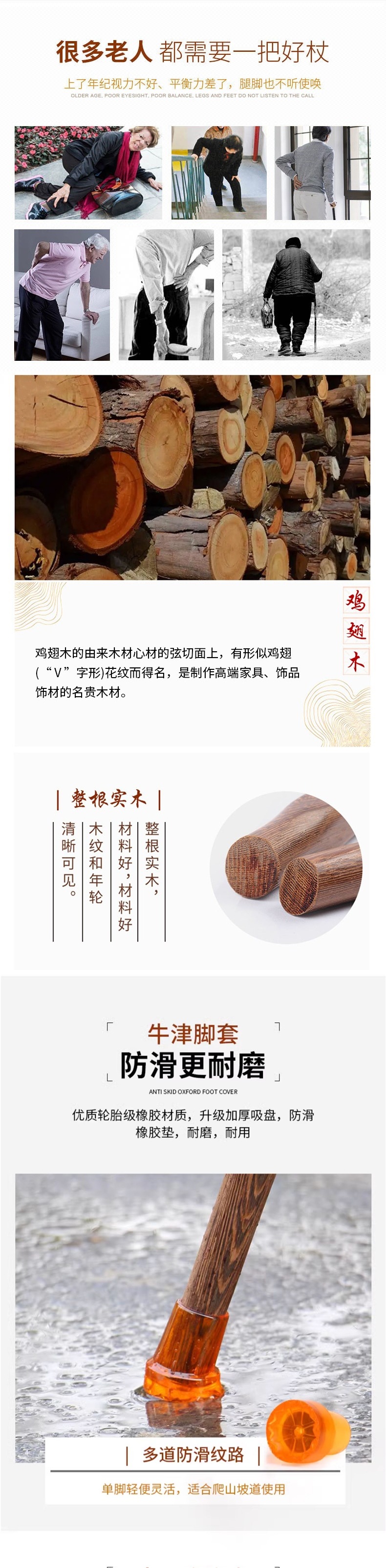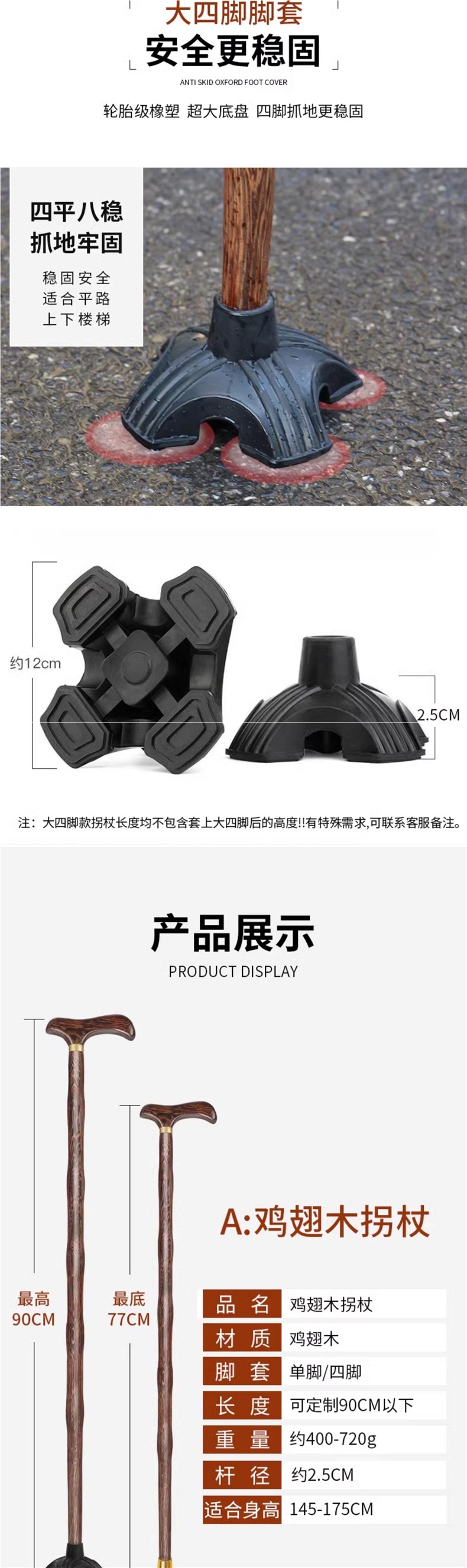 • 닭 날개 나무 목발 85cm (두꺼운 미끄럼 방지 발 커버 포함) 160-165cm