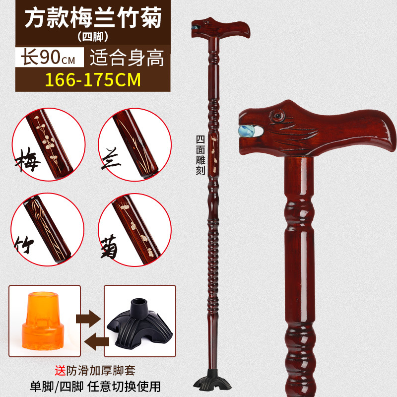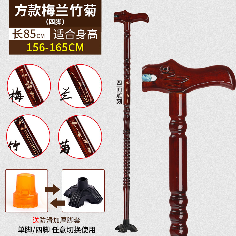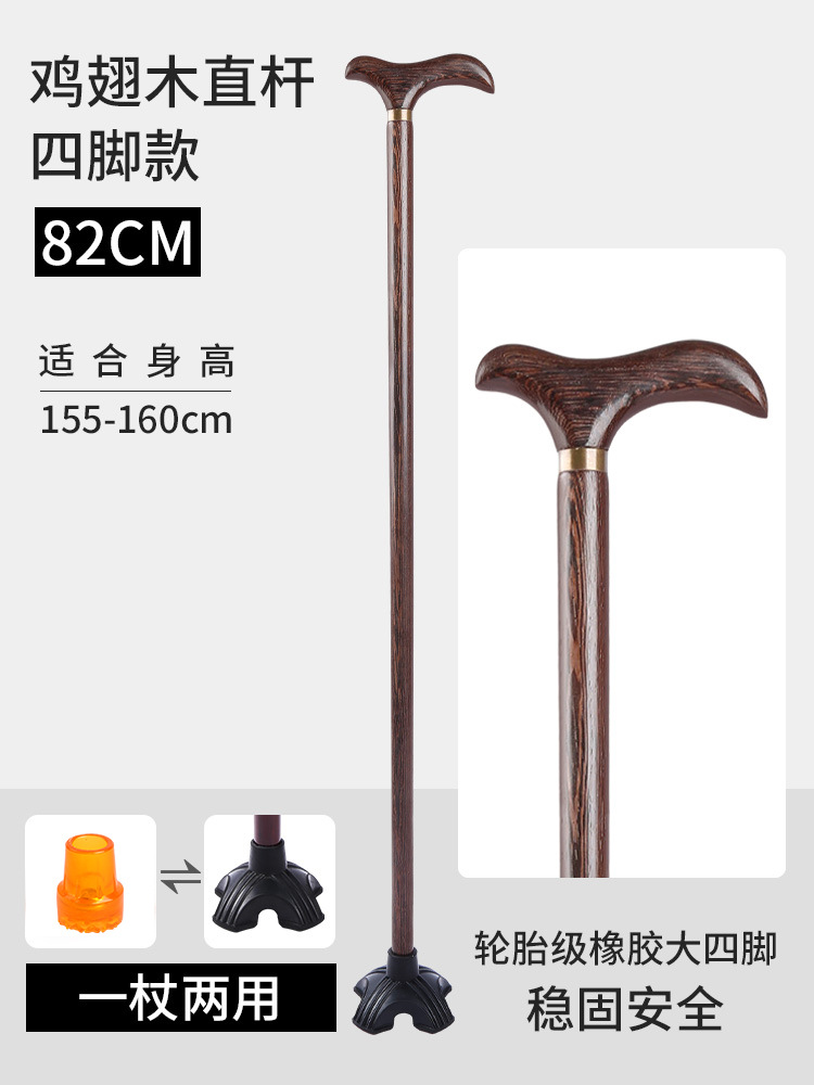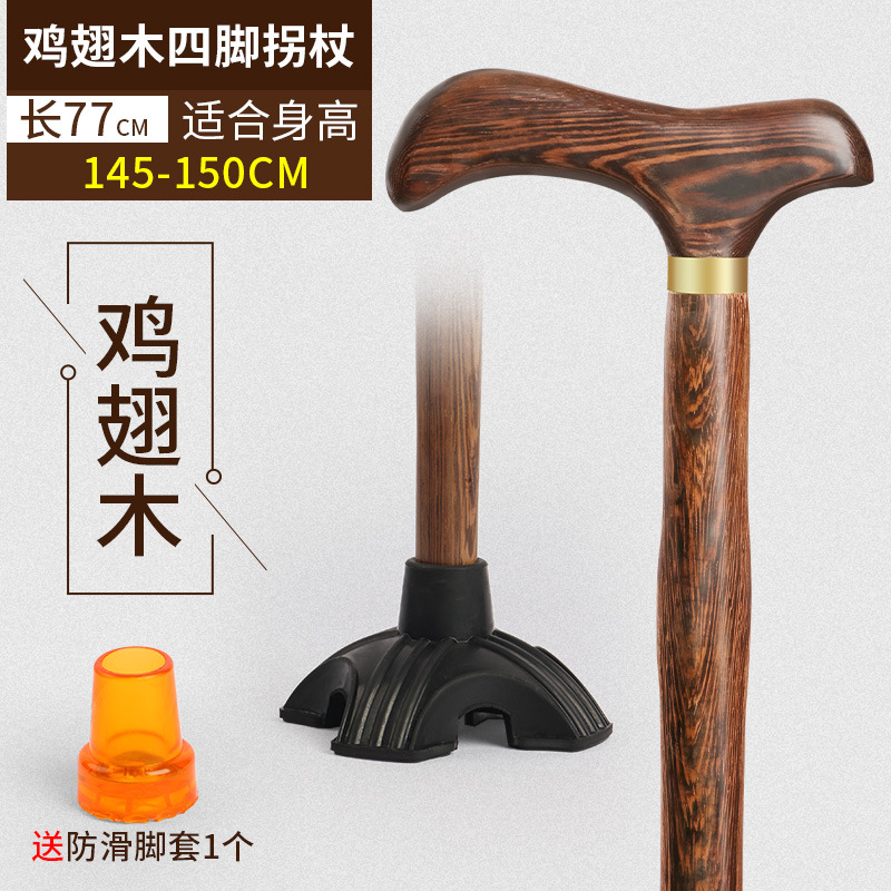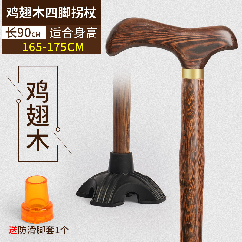 노인용 지팡이, 미끄럼 방지, 경량 원목, 노인용 추락 방지 지팡이, 여성용 4발 특수 보조 지팡이