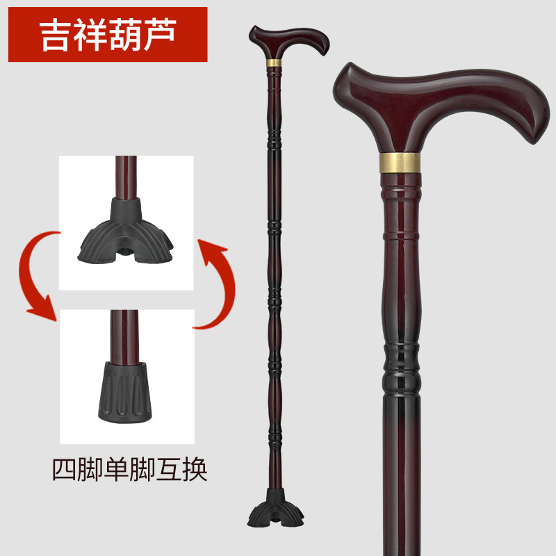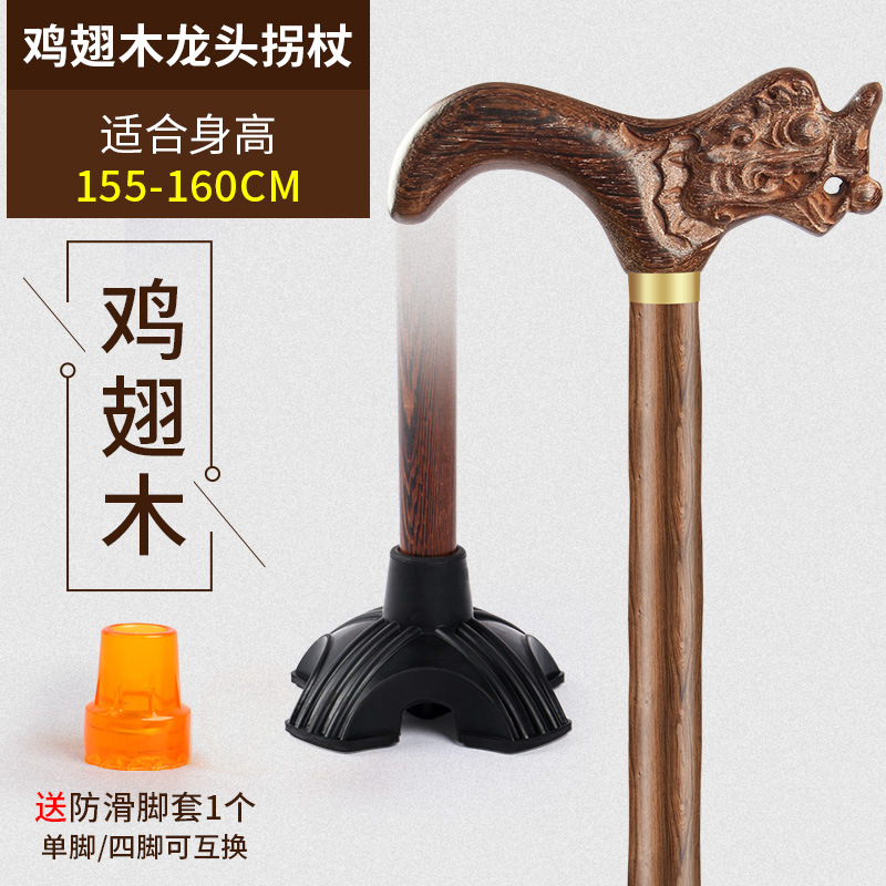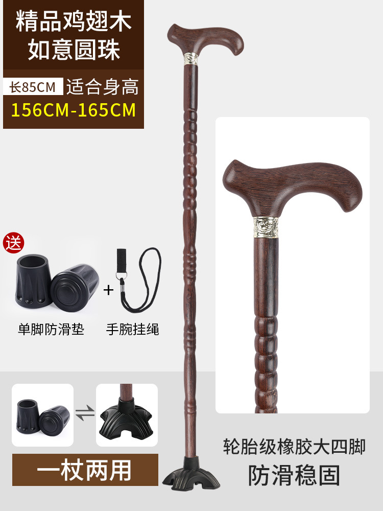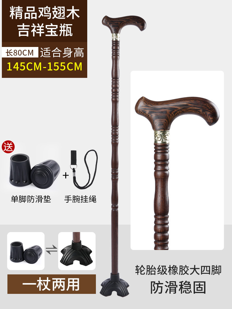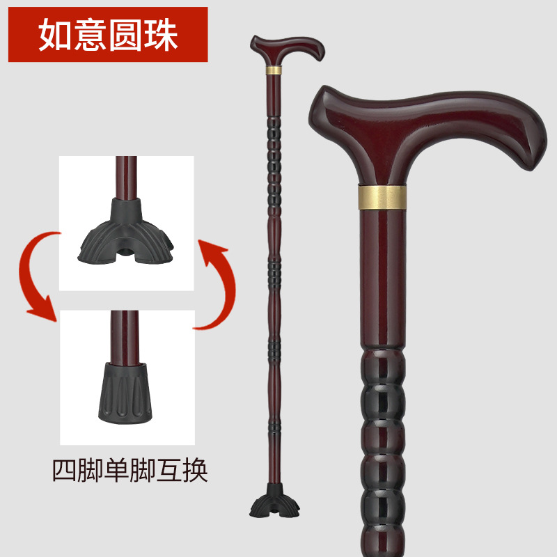 노인용 지팡이, 미끄럼 방지, 경량 원목, 노인용 추락 방지 지팡이, 여성용 4발 특수 보조 지팡이