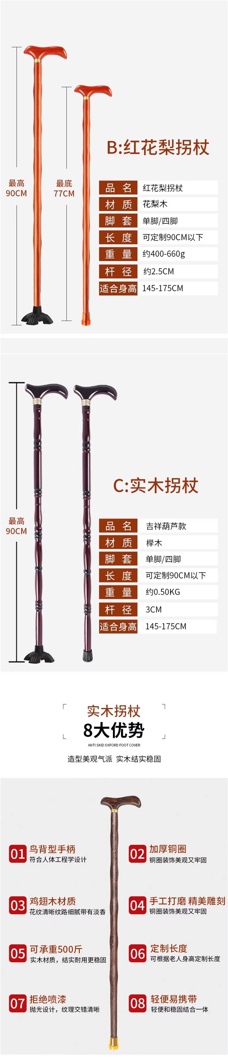 노인용 지팡이, 미끄럼 방지, 경량 원목, 노인용 추락 방지 지팡이, 여성용 4발 특수 보조 지팡이스토어 가기