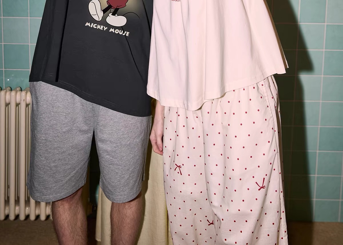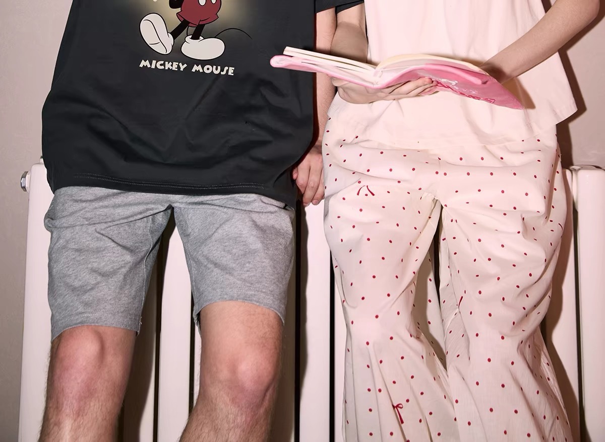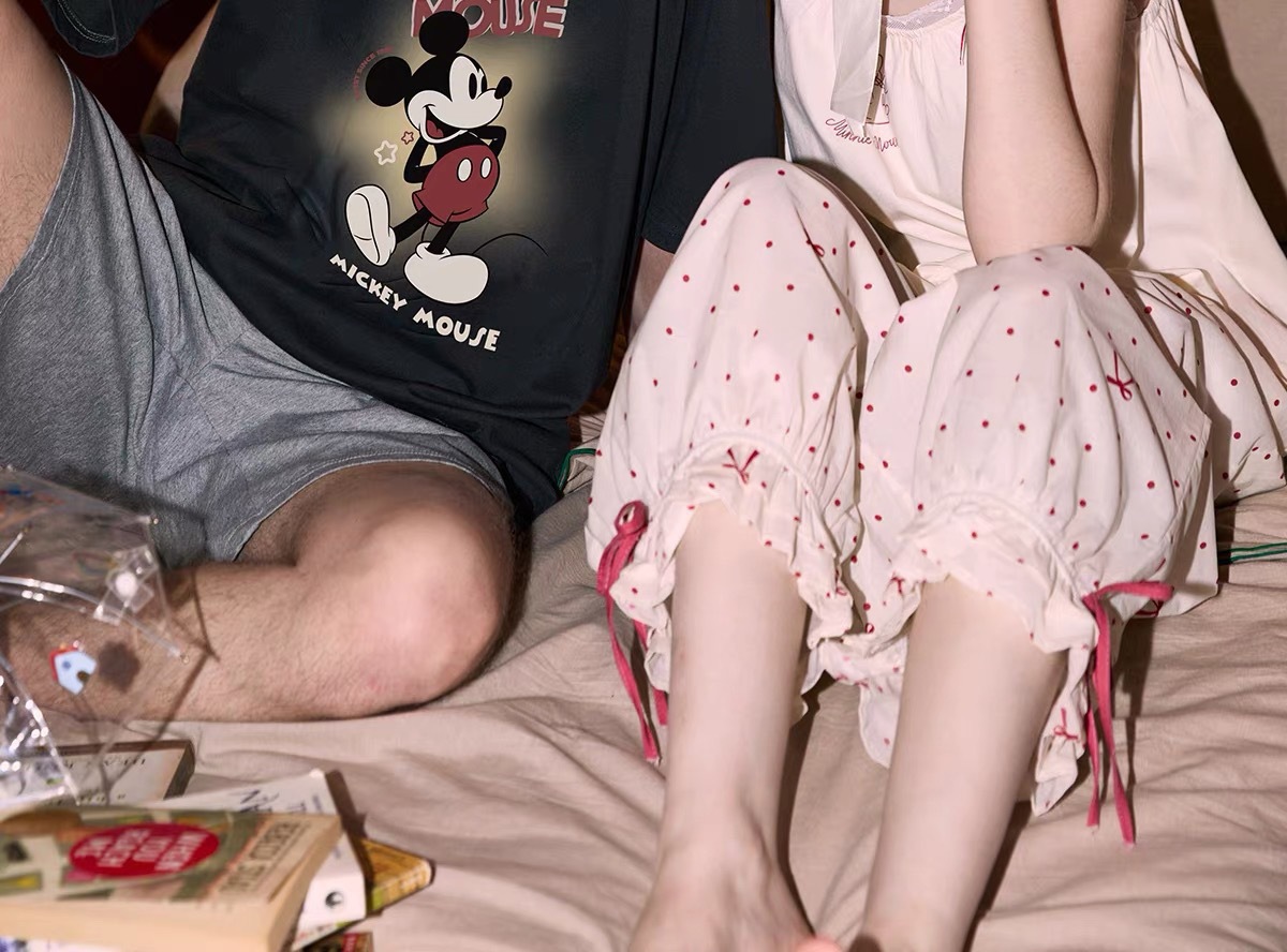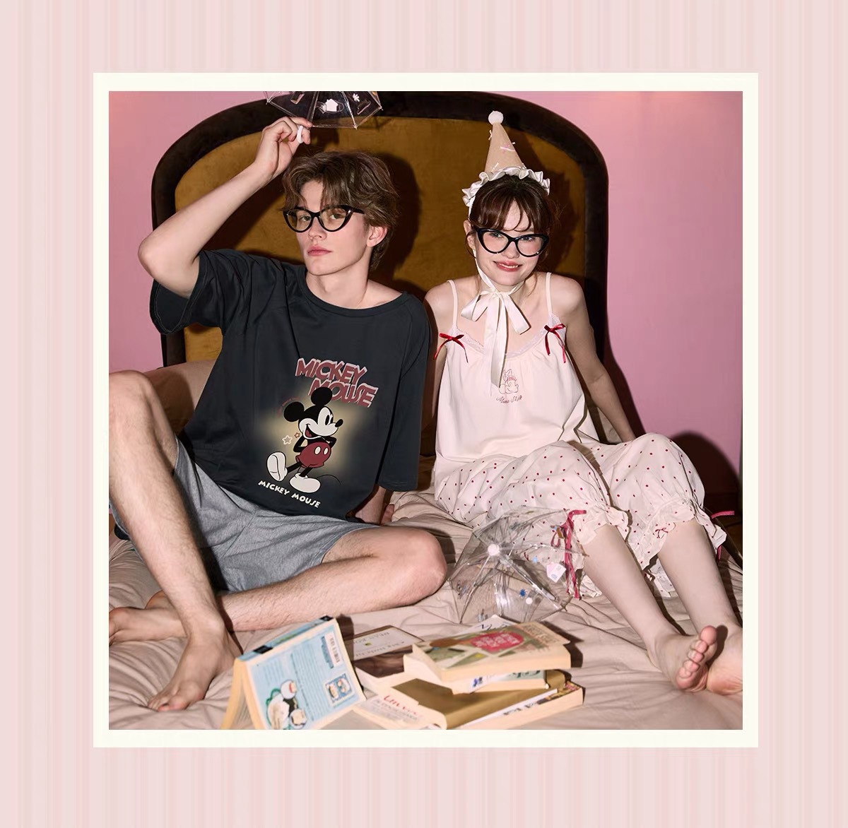 과일 쉘 같은 스타일 잠옷 커플 여름 슬링 레이스 트림 바지 세트 새로운 순면 남성 홈 의류 세트스토어 가기