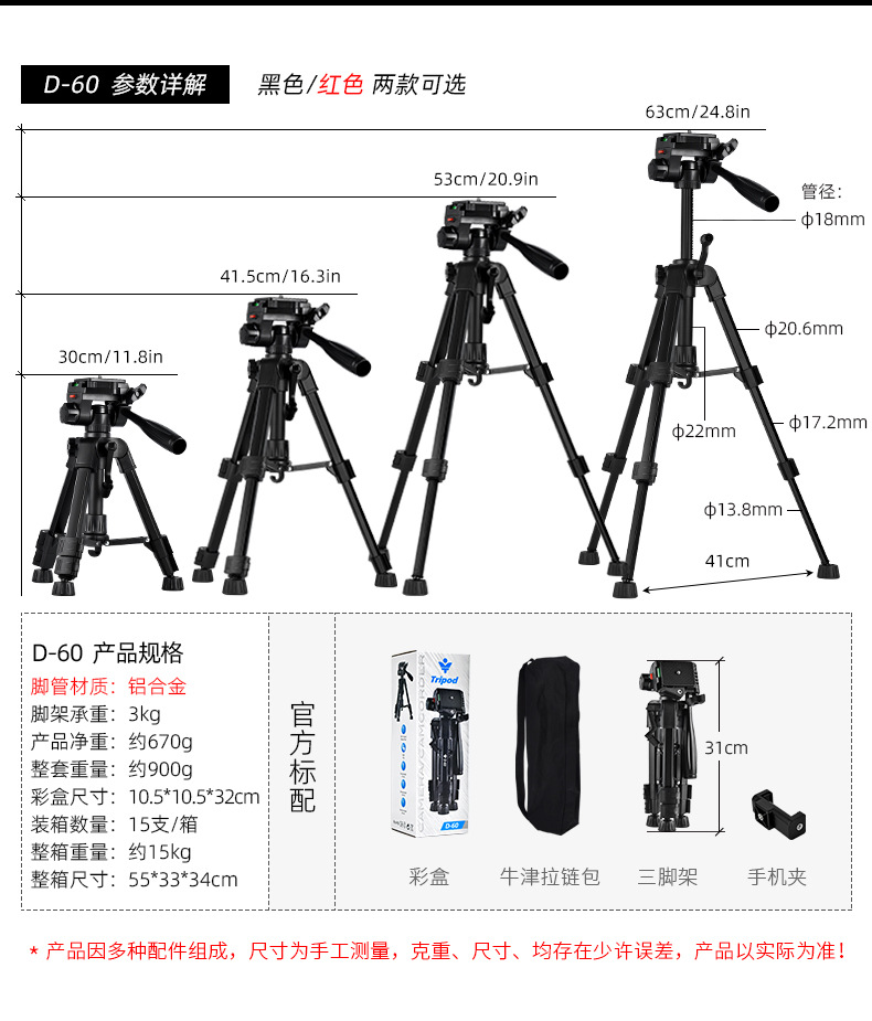 휴대폰 라이브 방송 셀카 스탠드 휴대용 카메라 삼각대 D60 휴대폰 데스크탑 금속 사진 삼각대