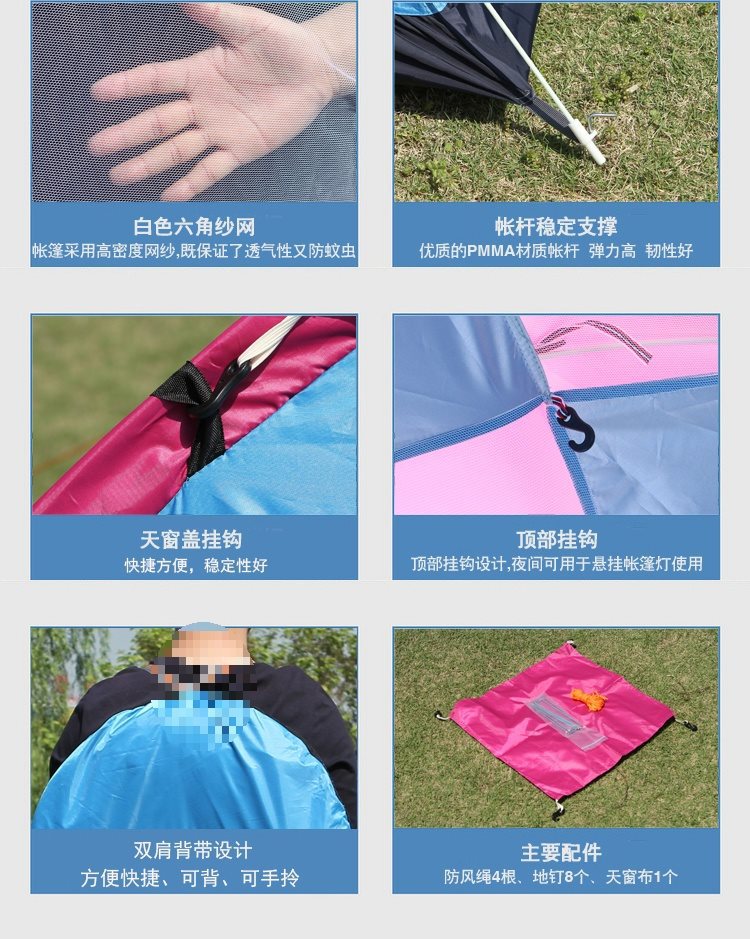 • 이중 이중문 위장 + 방습 매트 + 피크닉 매트 + 베개*2 자동 빠른 열기