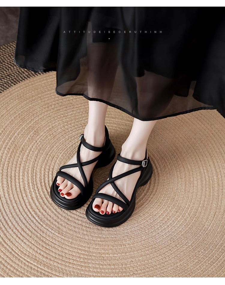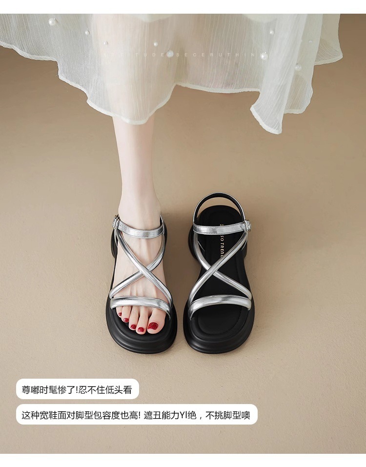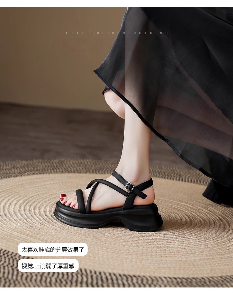 2025년 여름 여성을 위한 두꺼운 밑창의 편안한 오픈 토 샌들, 겉옷용 새로운 부드러운 밑창의 로마 샌들, 고급 신발스토어 가기