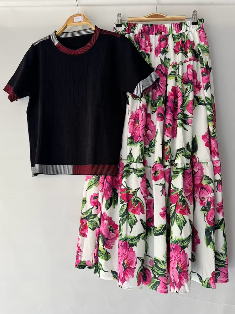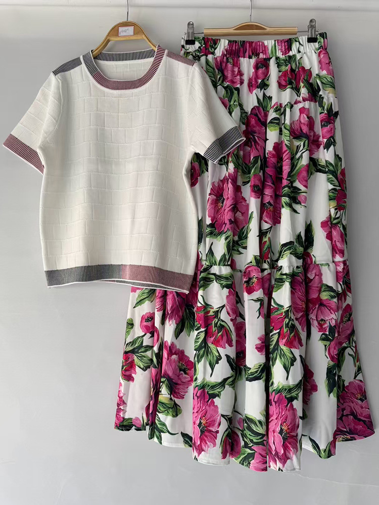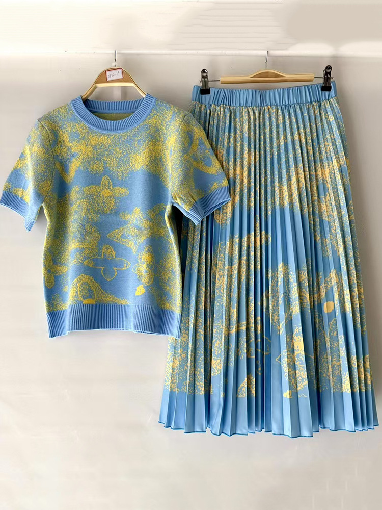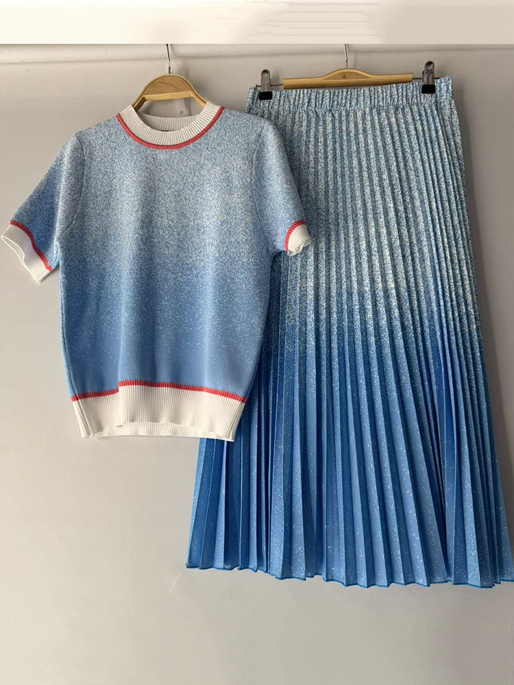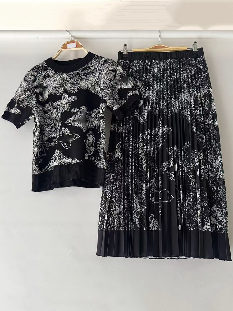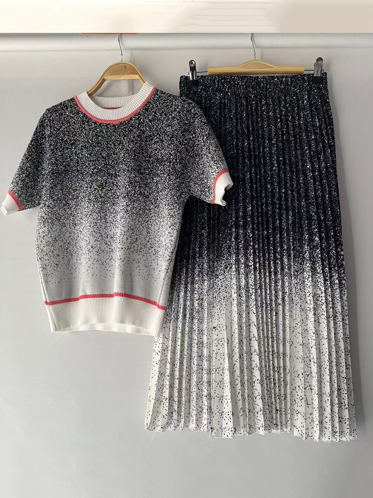2025 대외 무역 여성 복고풍 줄무늬 니트 카디건 풀오버 2 피스 느슨한 주름 치마 세트스토어 가기