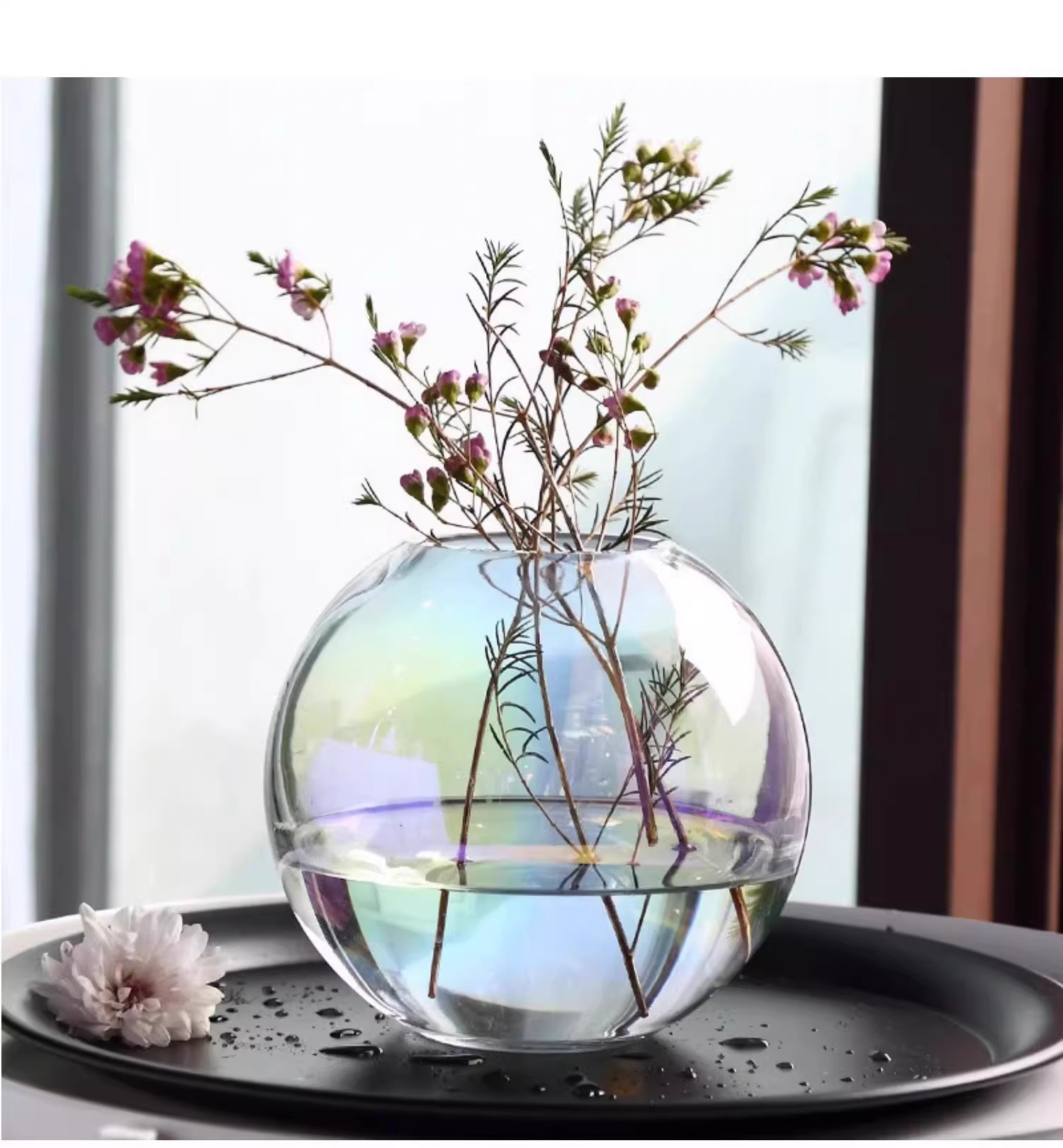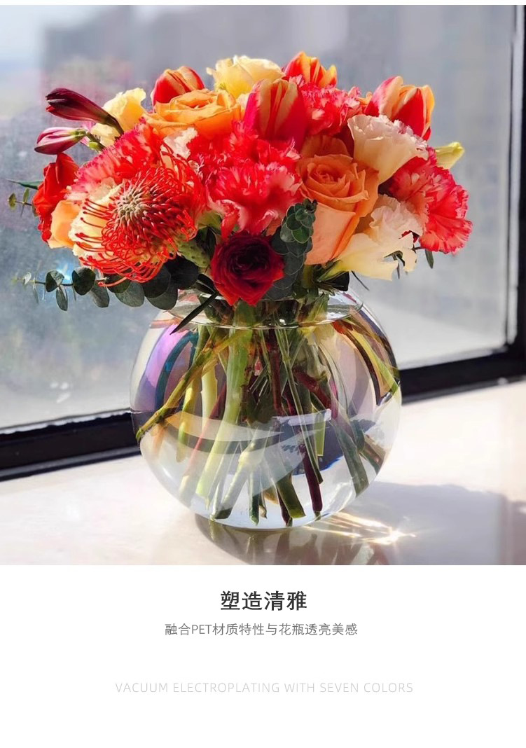 북유럽 스타일의 심플한 투명 구형 플라스틱 꽃병, 가정 거실 테이블 꽃꽂이 수경재배 꽃