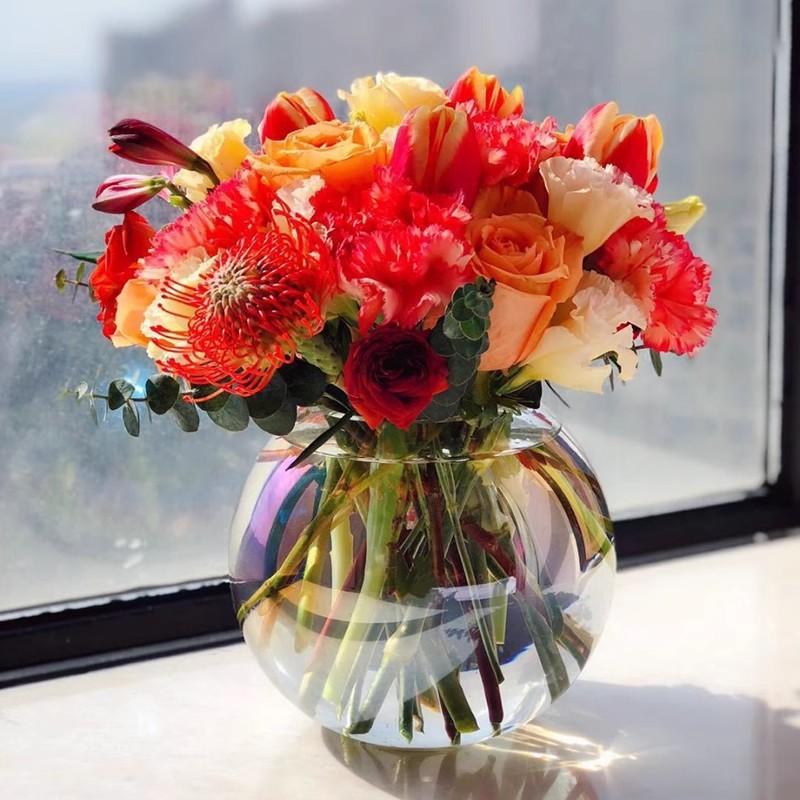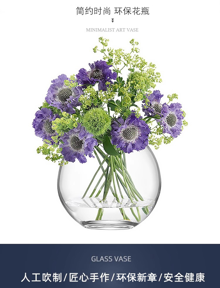 북유럽 스타일의 심플한 투명 구형 플라스틱 꽃병, 가정 거실 테이블 꽃꽂이 수경재배 꽃스토어 가기
