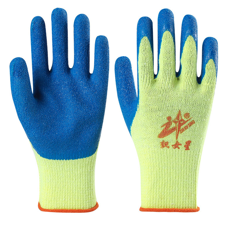 카이트 스타 면사 주름 노동 보호 장갑, 고무 처리 및 두꺼운 미끄럼 방지 벽돌 운반 건설 현장 작업 내마모성 노동 보호 장갑