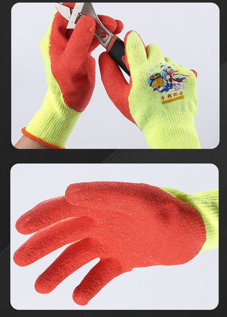 카이트 스타 면사 주름 노동 보호 장갑, 고무 처리 및 두꺼운 미끄럼 방지 벽돌 운반 건설 현장 작업 내마모성 노동 보호 장갑스토어 가기