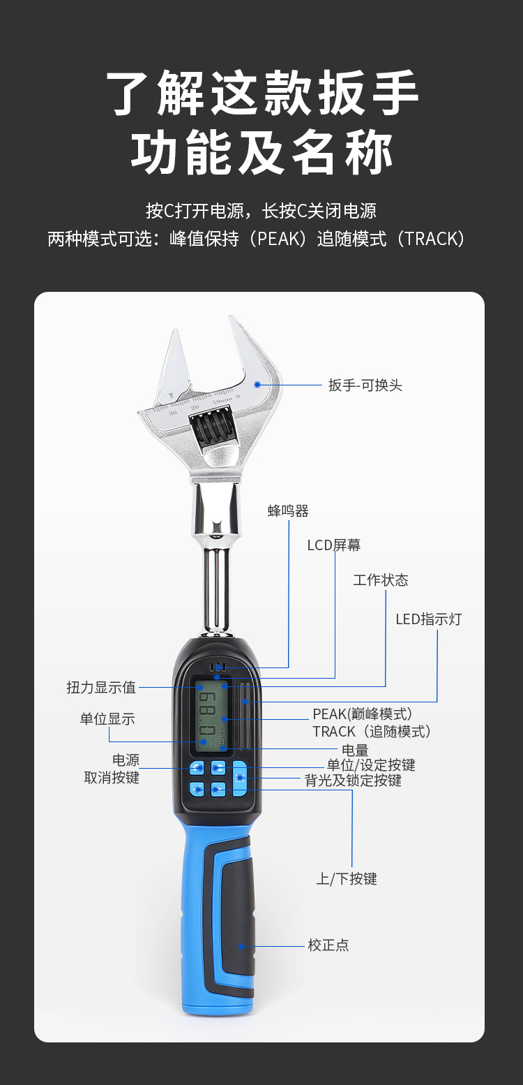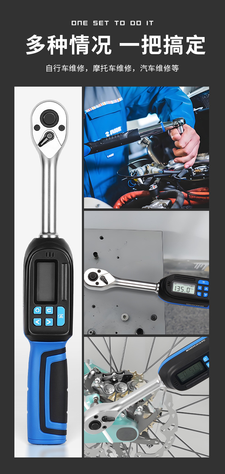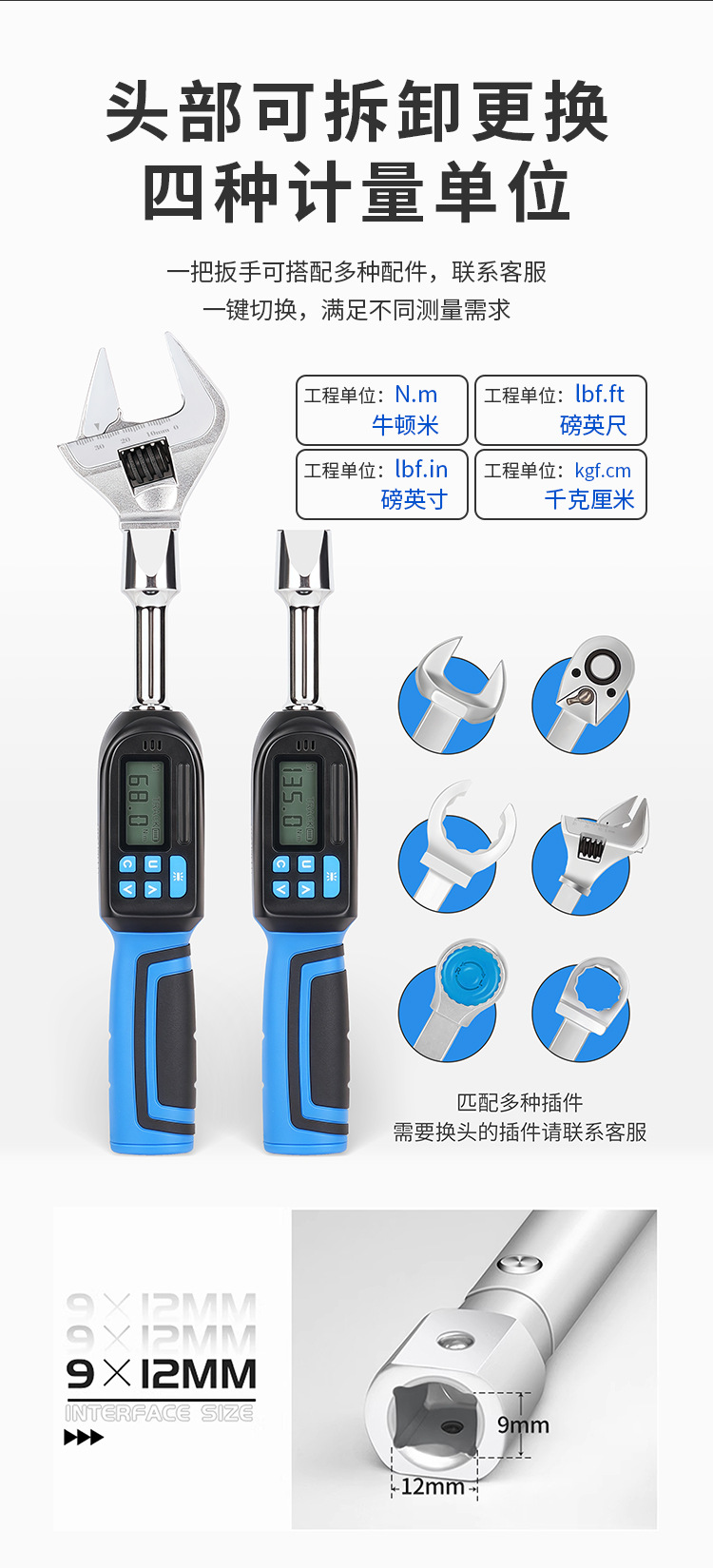 [±2% 고정밀도] 교체 가능한 헤드 디지털 토크 렌치 사전 설정된 토크 래칫 렌치 4가지 모드 변환