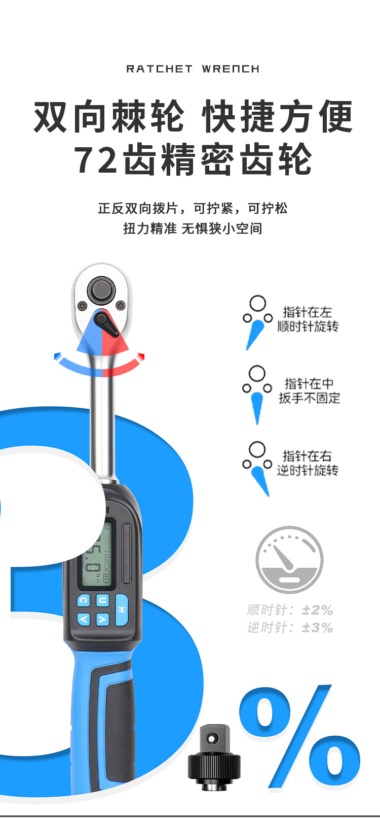[±2% 고정밀도] 교체 가능한 헤드 디지털 토크 렌치 사전 설정된 토크 래칫 렌치 4가지 모드 변환스토어 가기