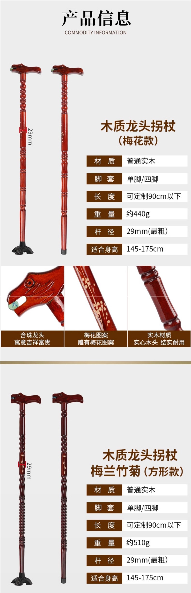 • 닭 날개 나무 목발 77cm(두꺼운 미끄럼 방지 고무 커버 포함) 145-150cm