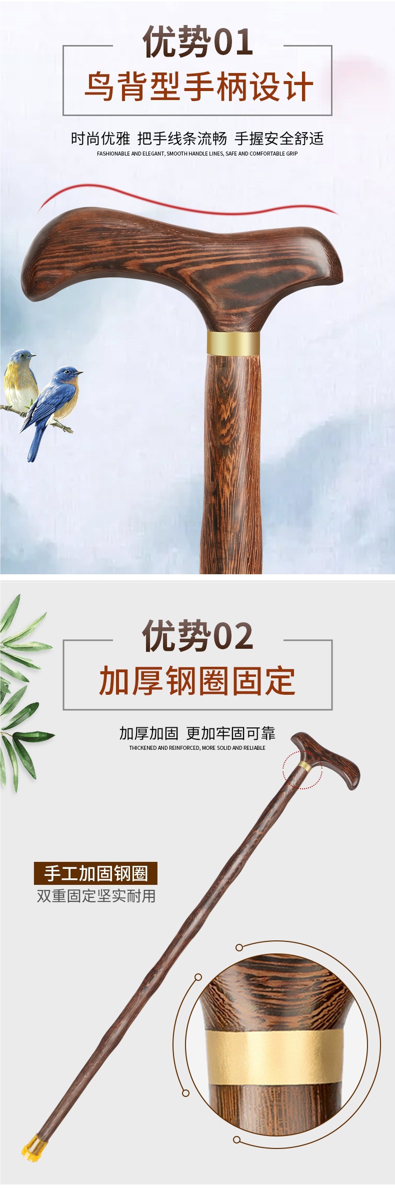 • 닭 날개 나무 목발 90cm (두꺼운 미끄럼 방지 고무 커버 포함) 165-175cm