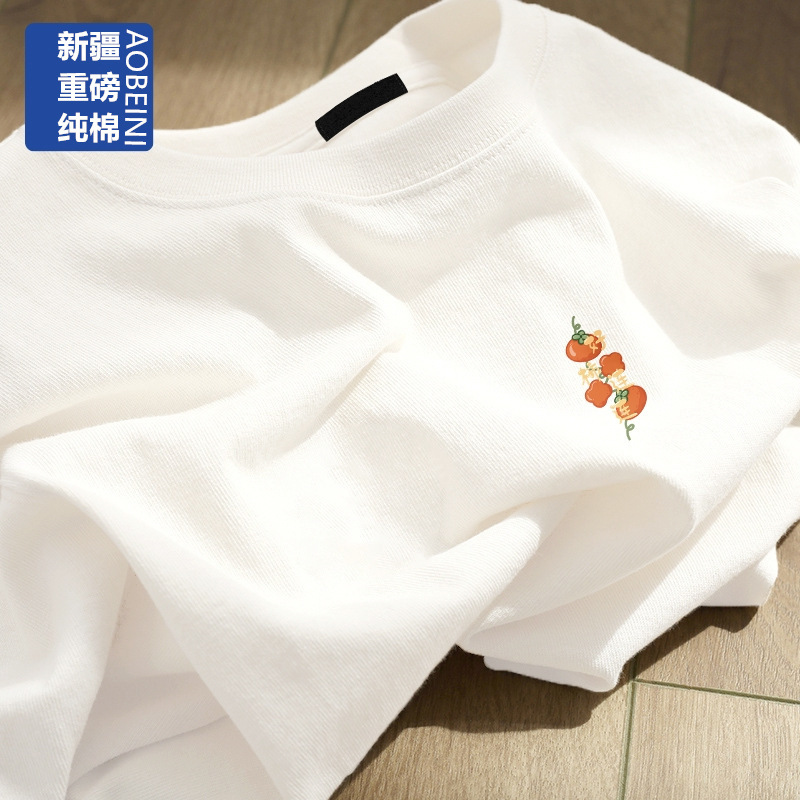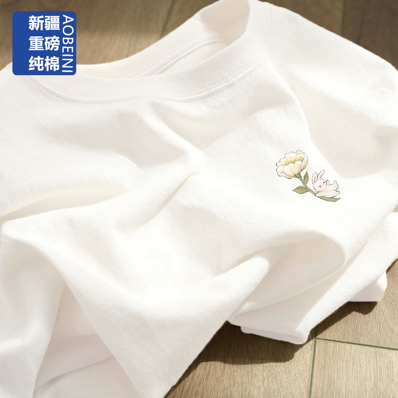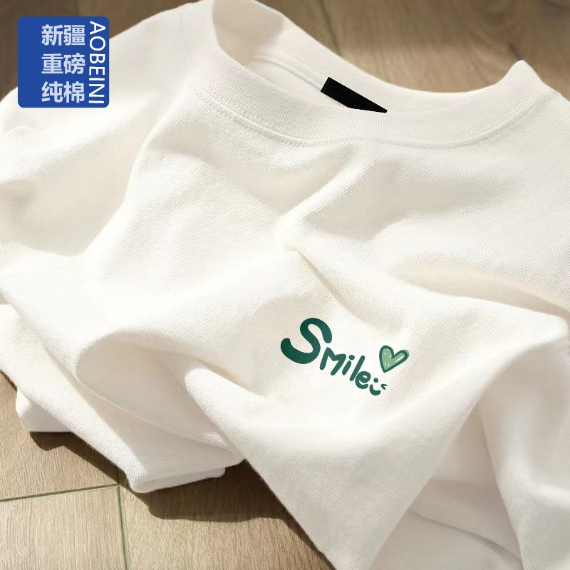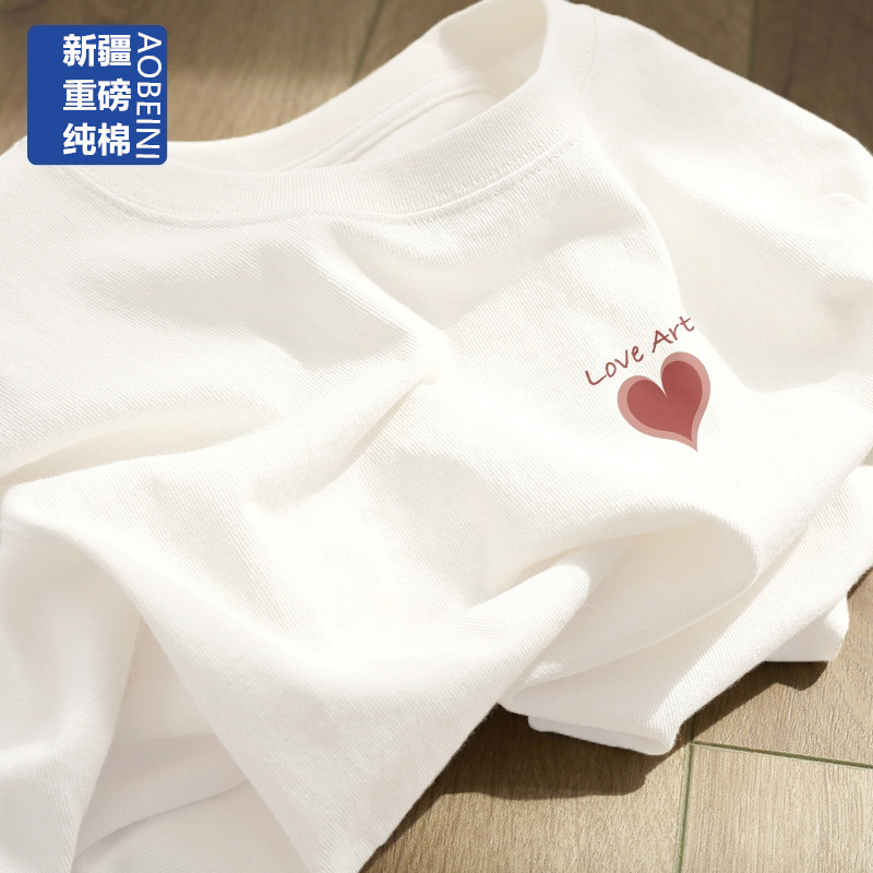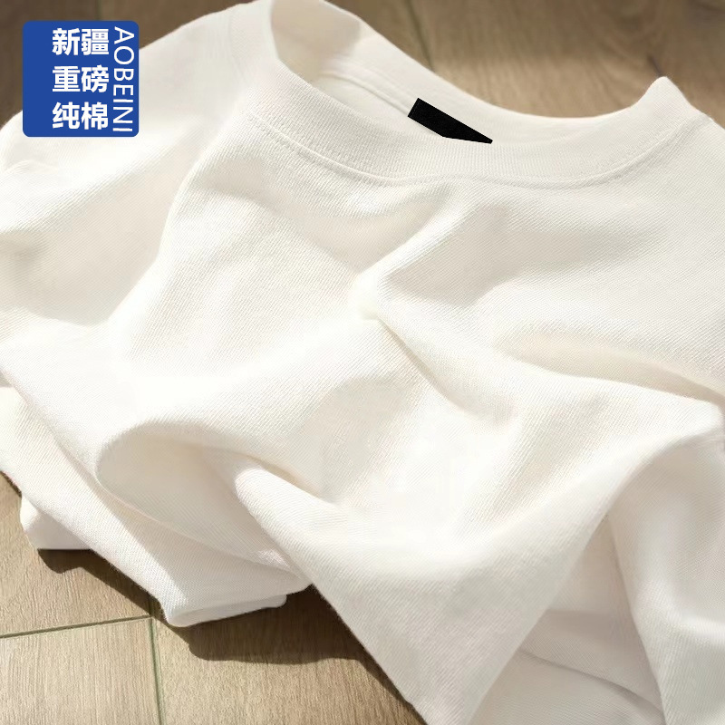 여성용 헤비 화이트 반팔 티셔츠 2025 남성과 여성을위한 새로운 스타일 슬리밍 대형 순수 코튼 바닥 반팔 탑 인스토어 가기