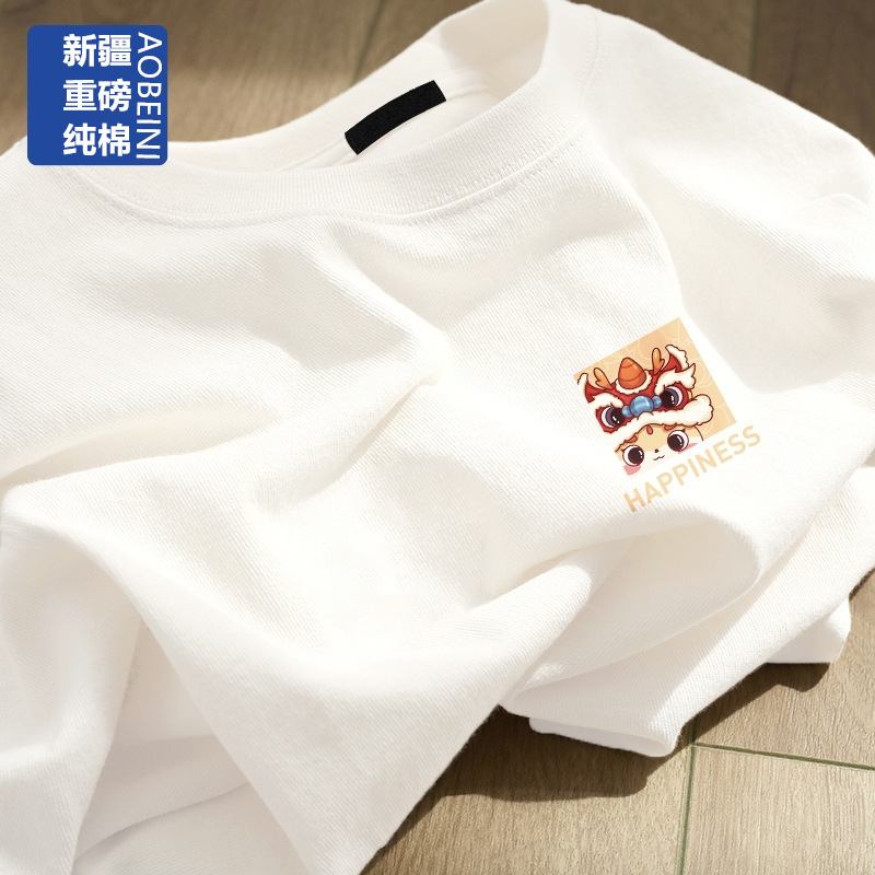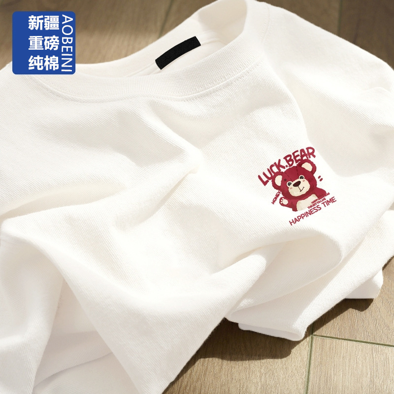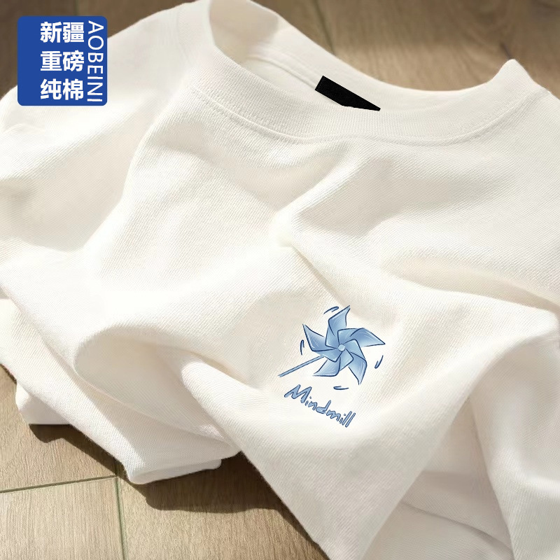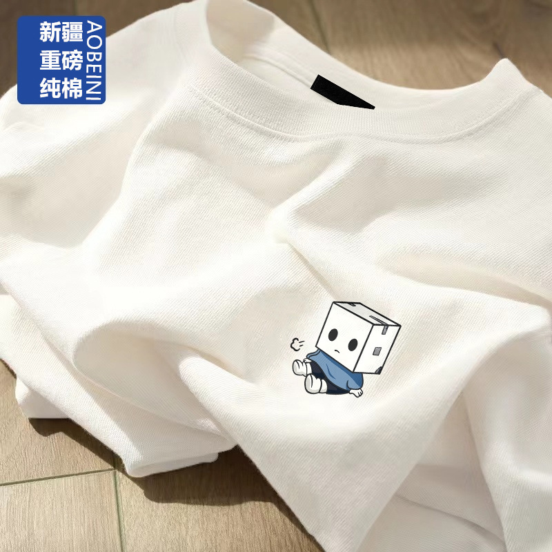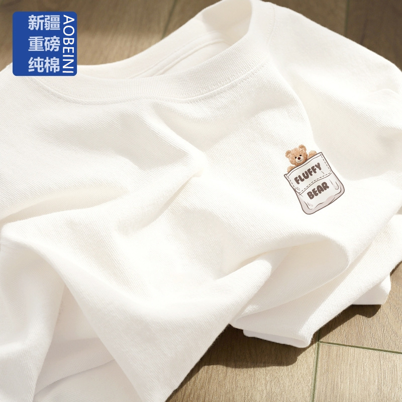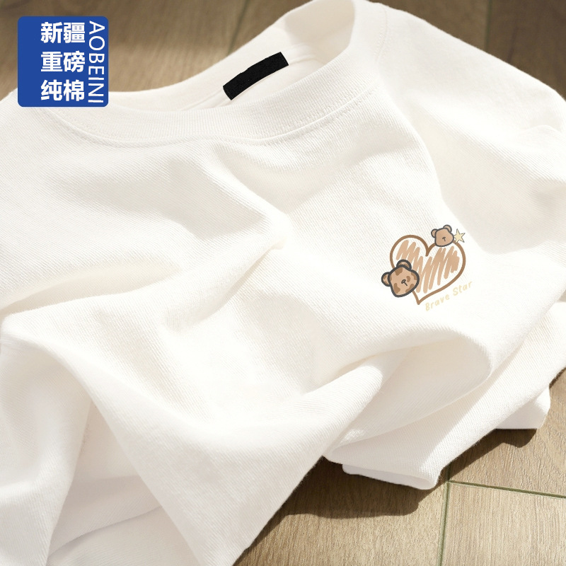 여성용 헤비 화이트 반팔 티셔츠 2025 남성과 여성을위한 새로운 스타일 슬리밍 대형 순수 코튼 바닥 반팔 탑 인스토어 가기