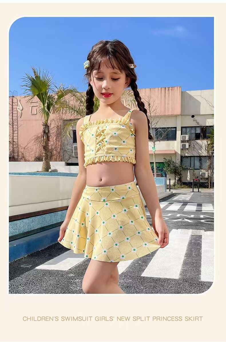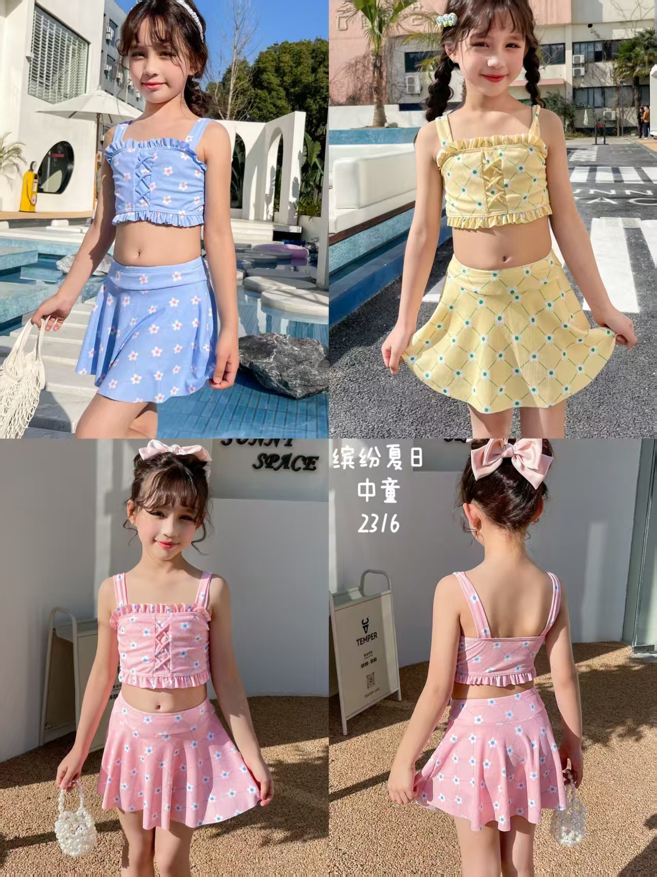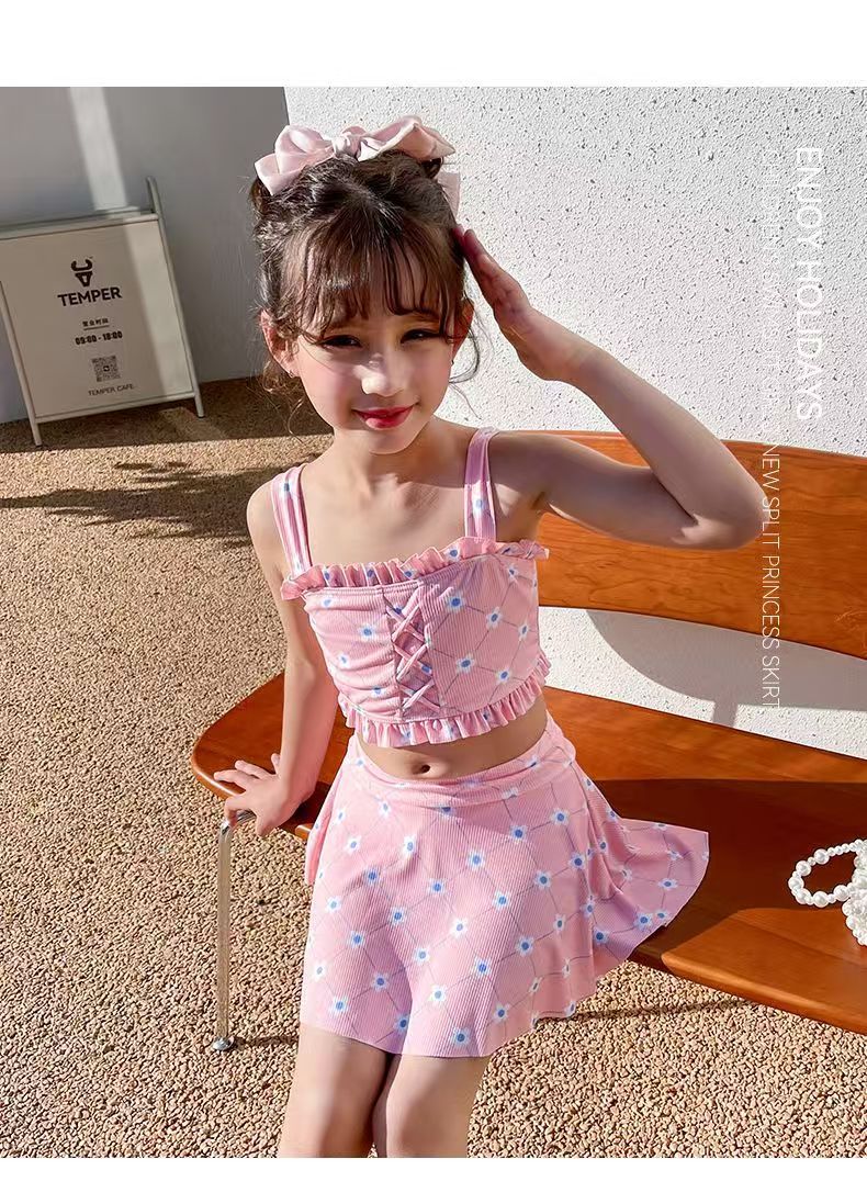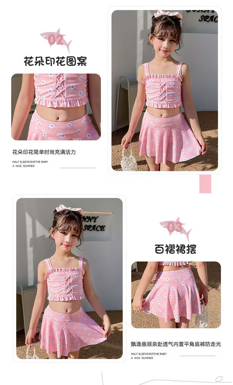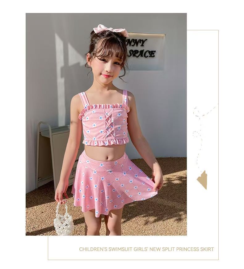 2025 새로운 어린이 수영복 소녀 중간 어린이 원피스 민소매 스커트 수영복 소녀 귀여운 5-8 세 2316