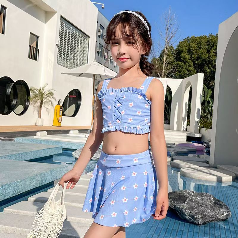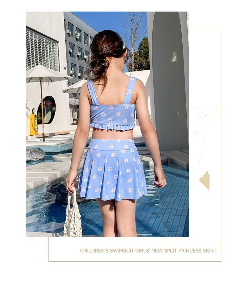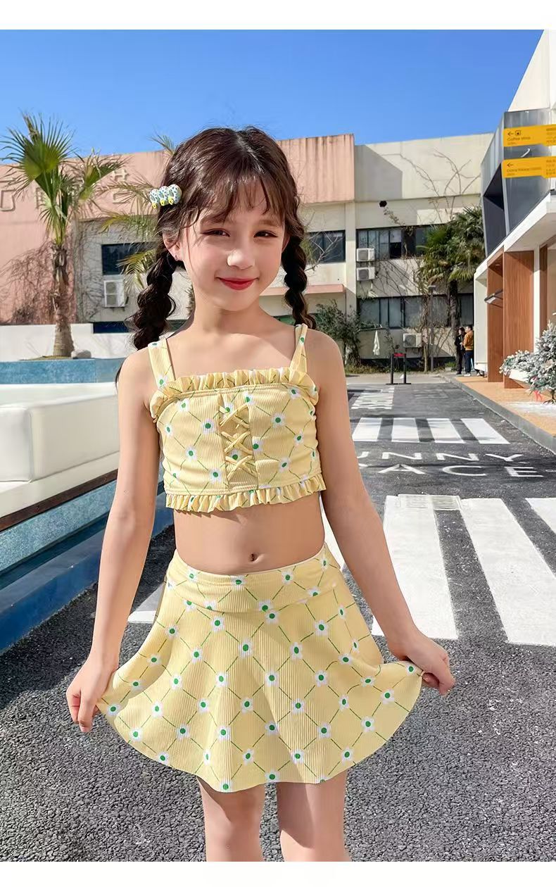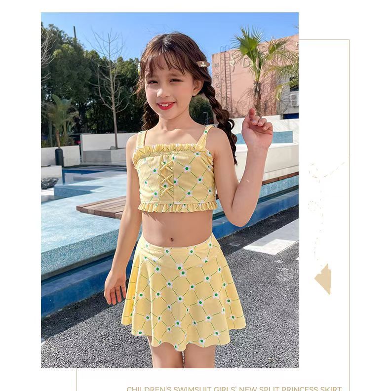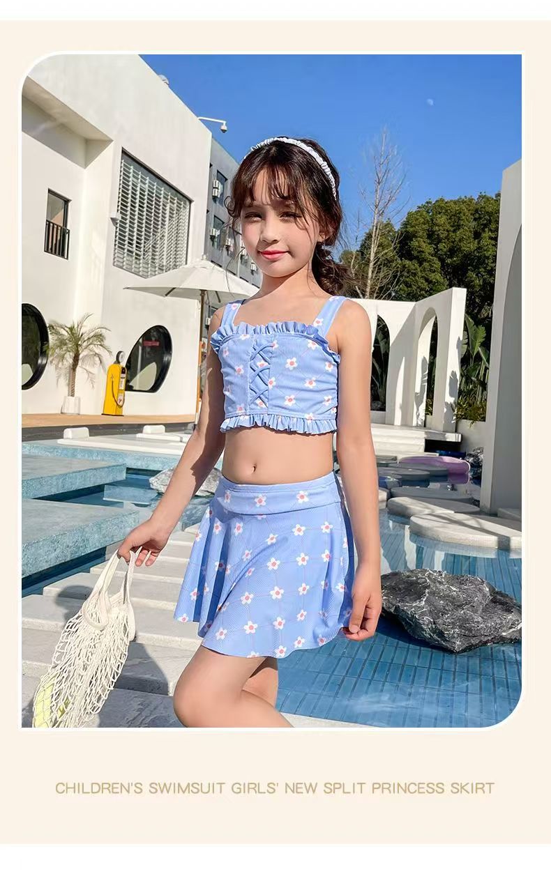 2025 새로운 어린이 수영복 소녀 중간 어린이 원피스 민소매 스커트 수영복 소녀 귀여운 5-8 세 2316