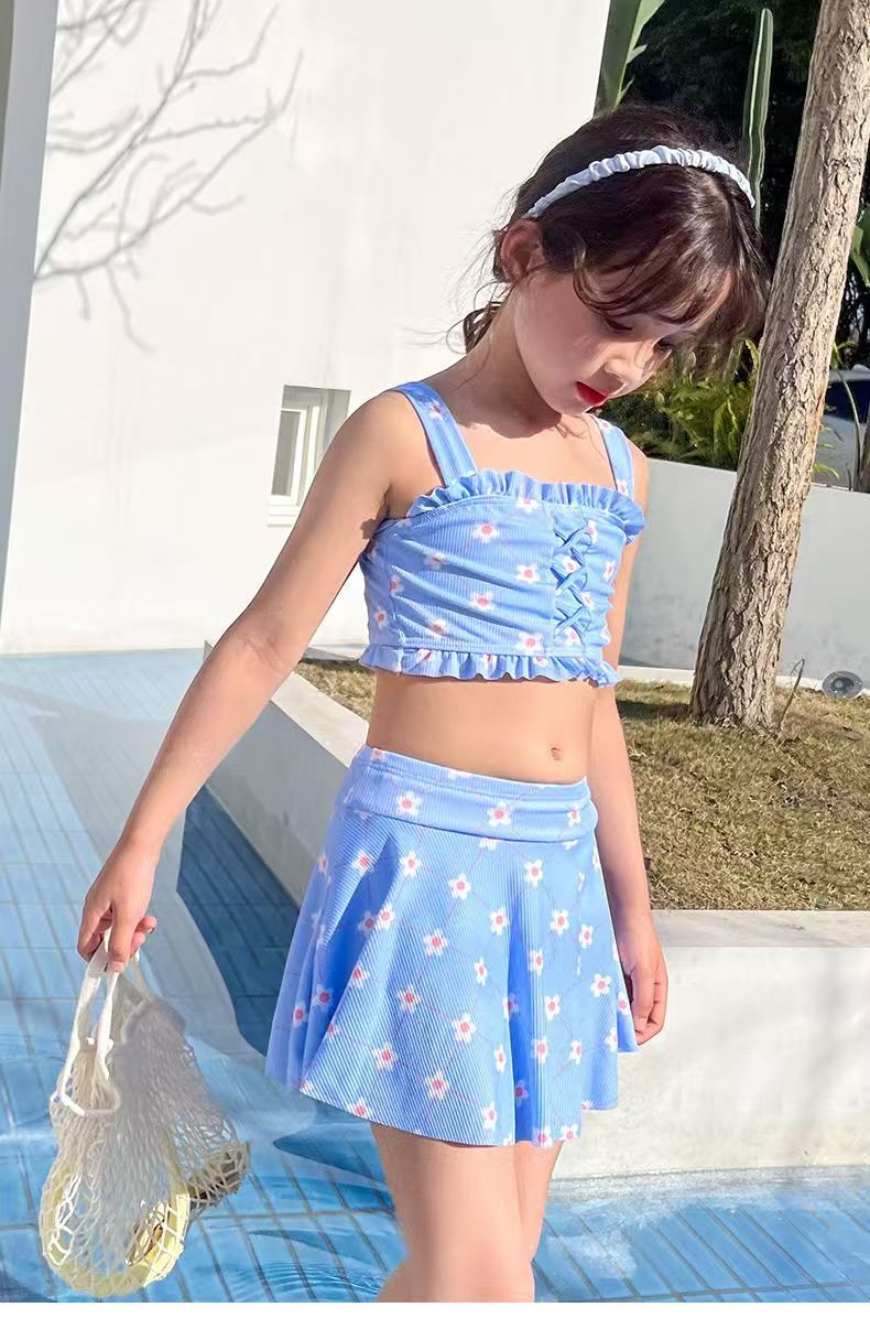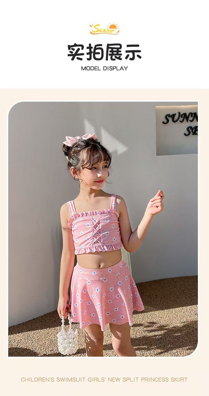 2025 새로운 어린이 수영복 소녀 중간 어린이 원피스 민소매 스커트 수영복 소녀 귀여운 5-8 세 2316스토어 가기
