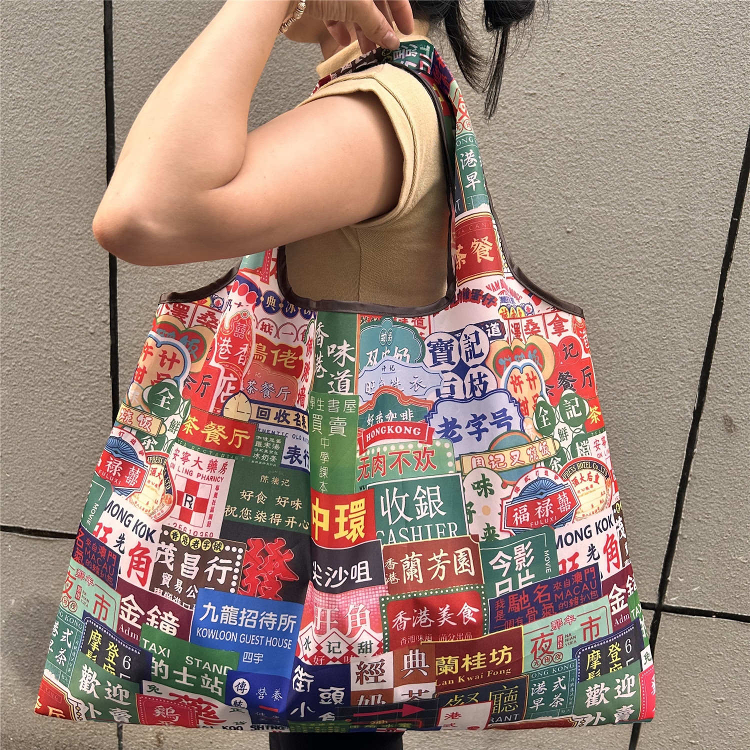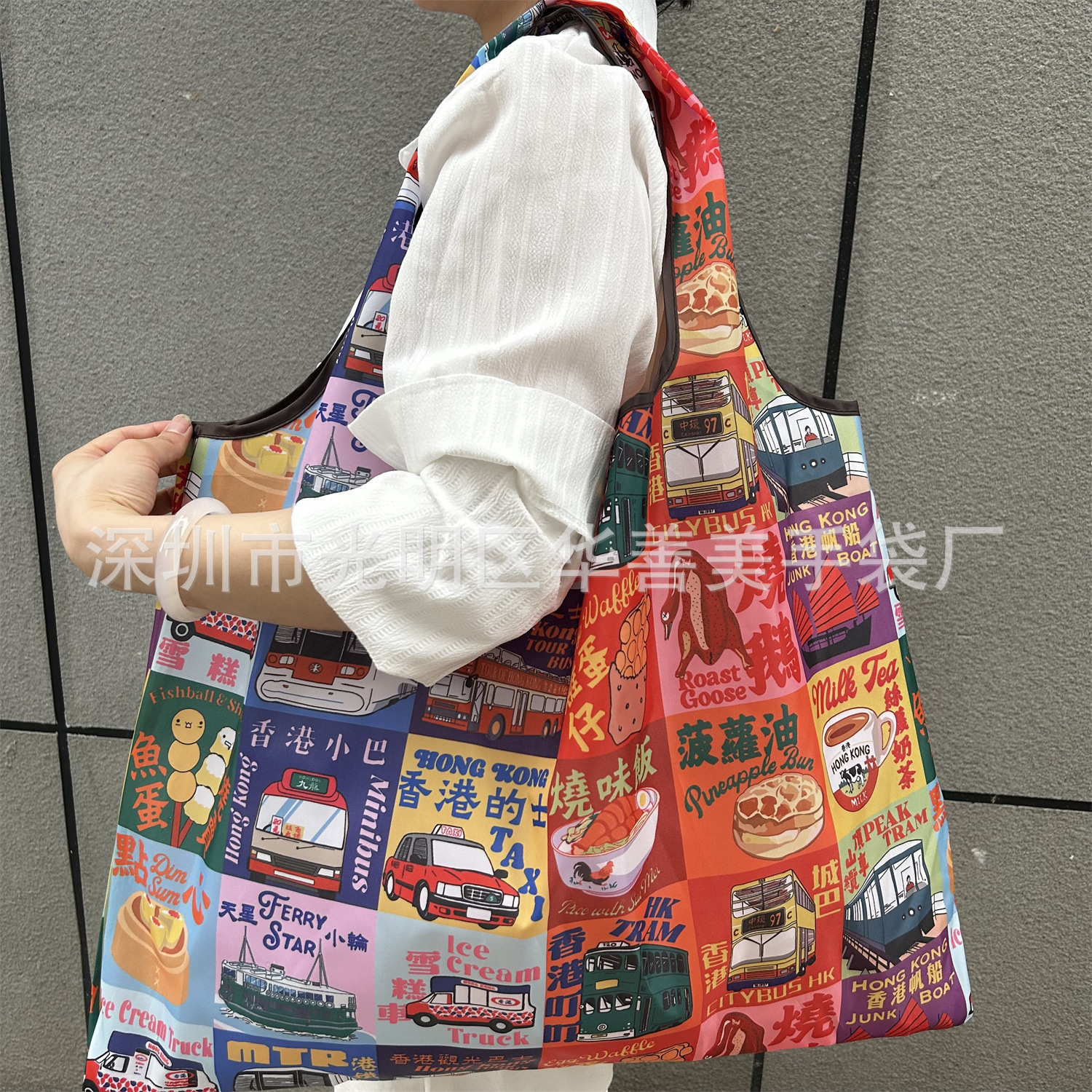 새로운 접이식 환경 친화적 인 여행 휴대용 슈퍼마켓 대용량 어깨 쇼핑 가방 여성 쇼핑 가방