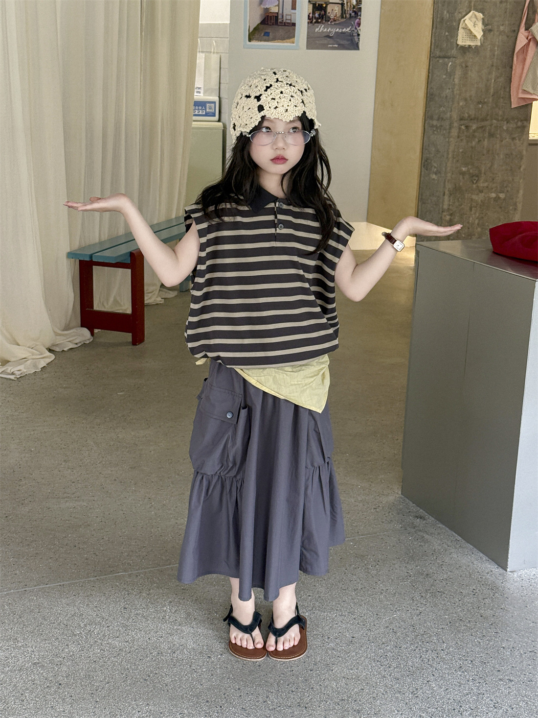 꽃과 어린이 의류 소녀 찾기 2025 세트 여름 새로운 한국 어린이 POLO 셔츠 오버 스커트 투피스 세트 조수 어린이스토어 가기