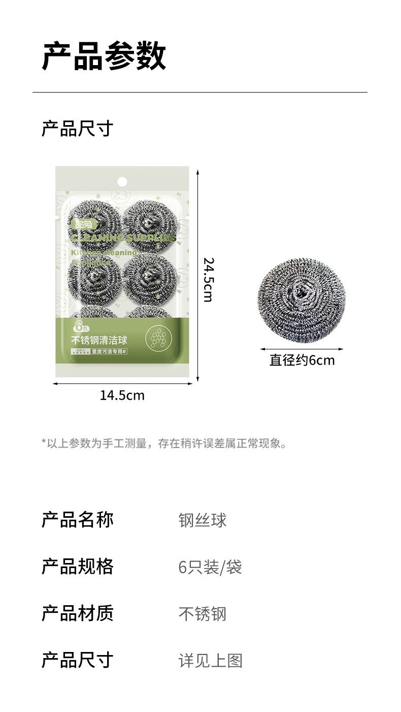 6 스테인레스 스틸 청소 공 가정은 녹슬지 않습니다. 부엌 브러시 냄비 그릇 젓가락 강철 와이어 볼을 느슨하게하여 먼지를 제거하기 쉽지 않습니다.스토어 가기