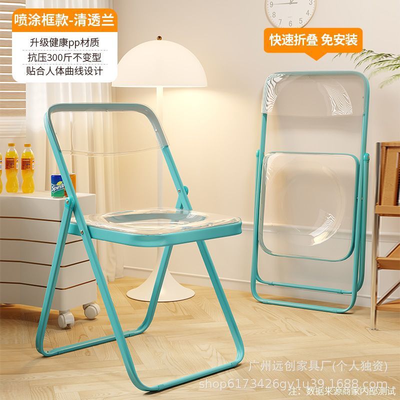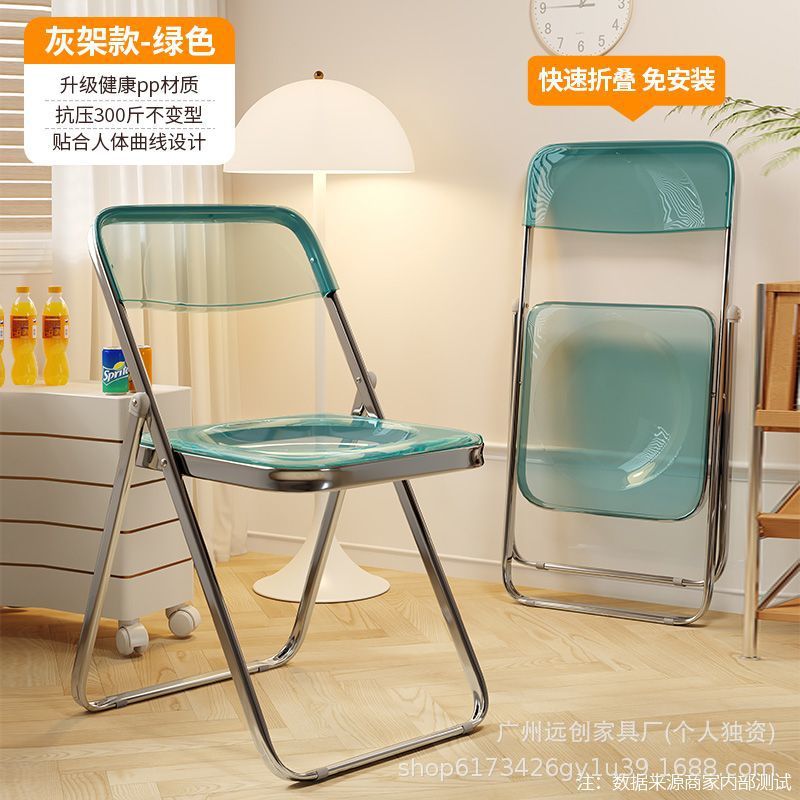 • 연한 녹색 투명 접이식 의자 [업그레이드된 PC 소재]
