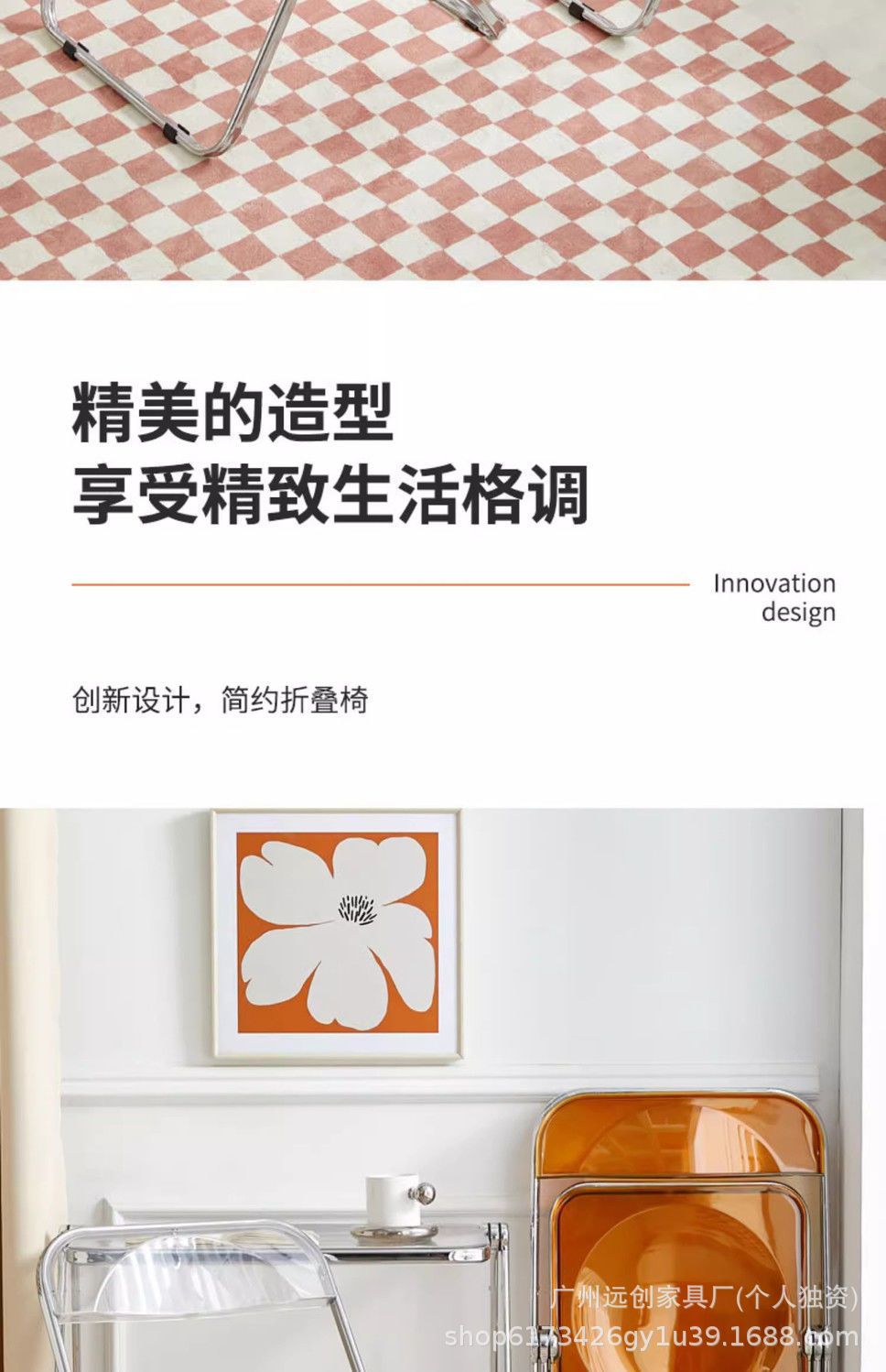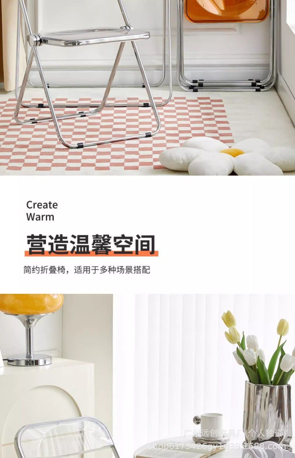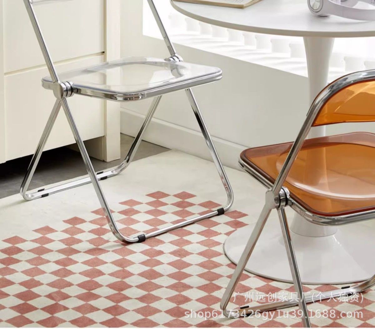 • 호박색 투명 접이식 의자 [업그레이드된 PC 소재]