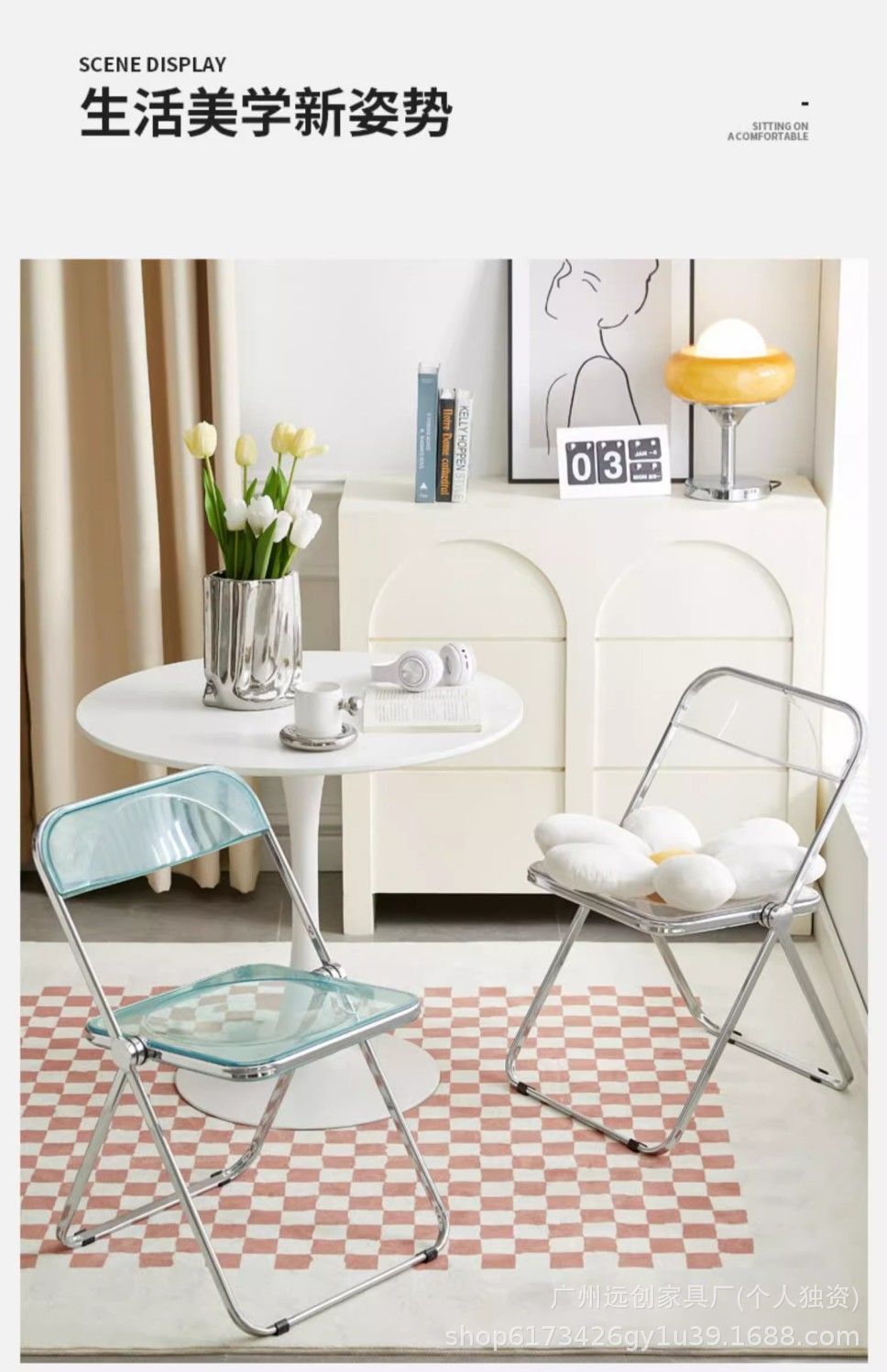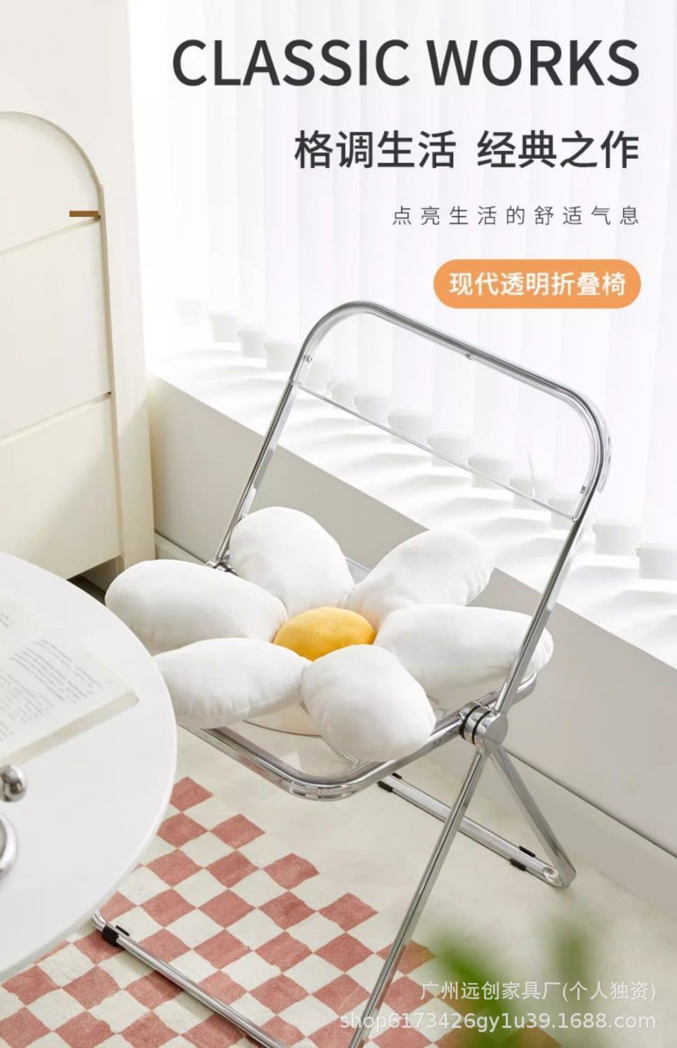 • 황백색 투명 접이식 의자 [업그레이드된 PC 소재]