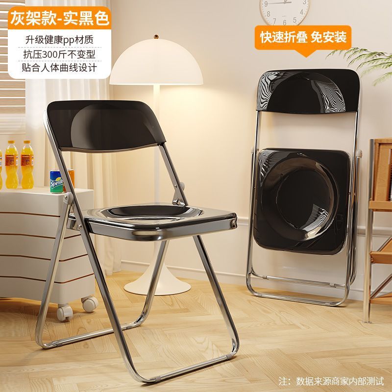 • 솔리드 블랙투명 접이식 의자 [업그레이드된 PC 소재]