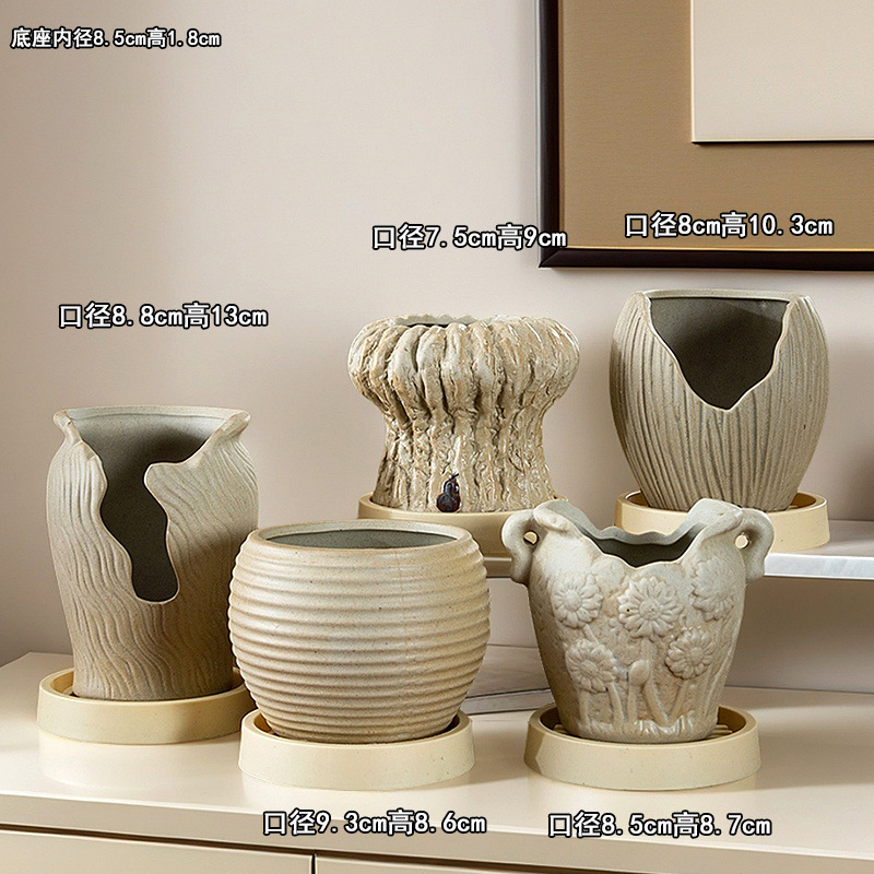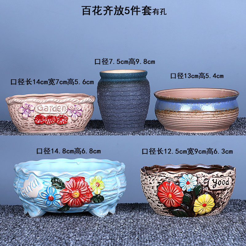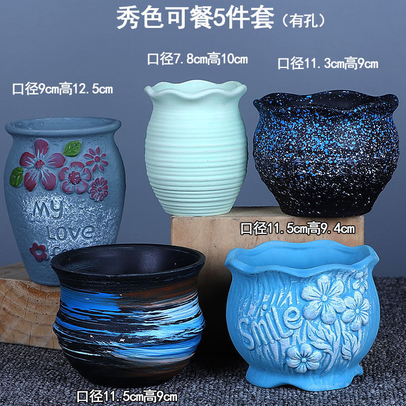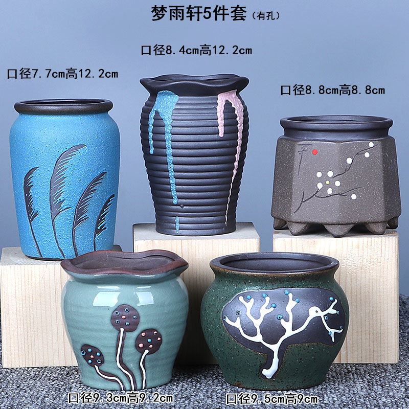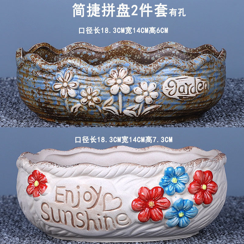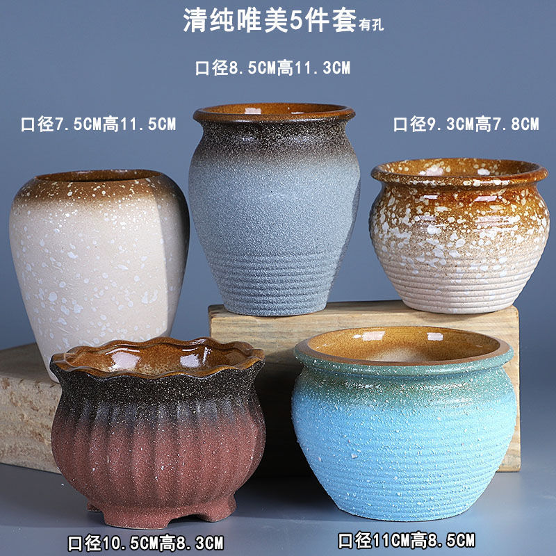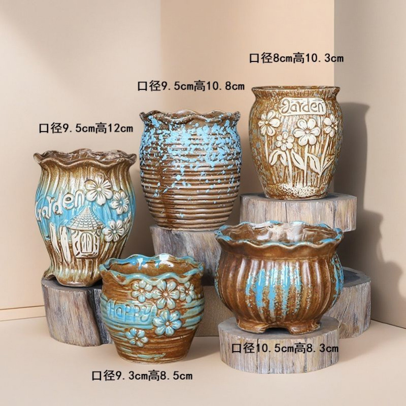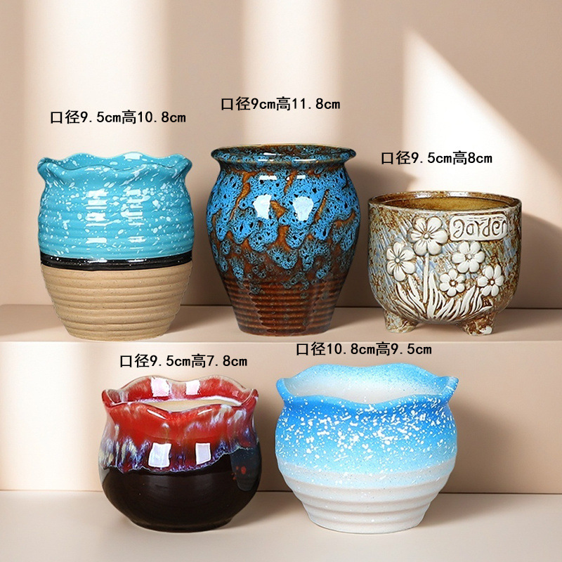 도자기 다육 화분, 세라믹 대형 크리에이티브 맞춤형 거친 도자기 통기성 다육 식물 대구경 소형 화분 제조업체스토어 가기