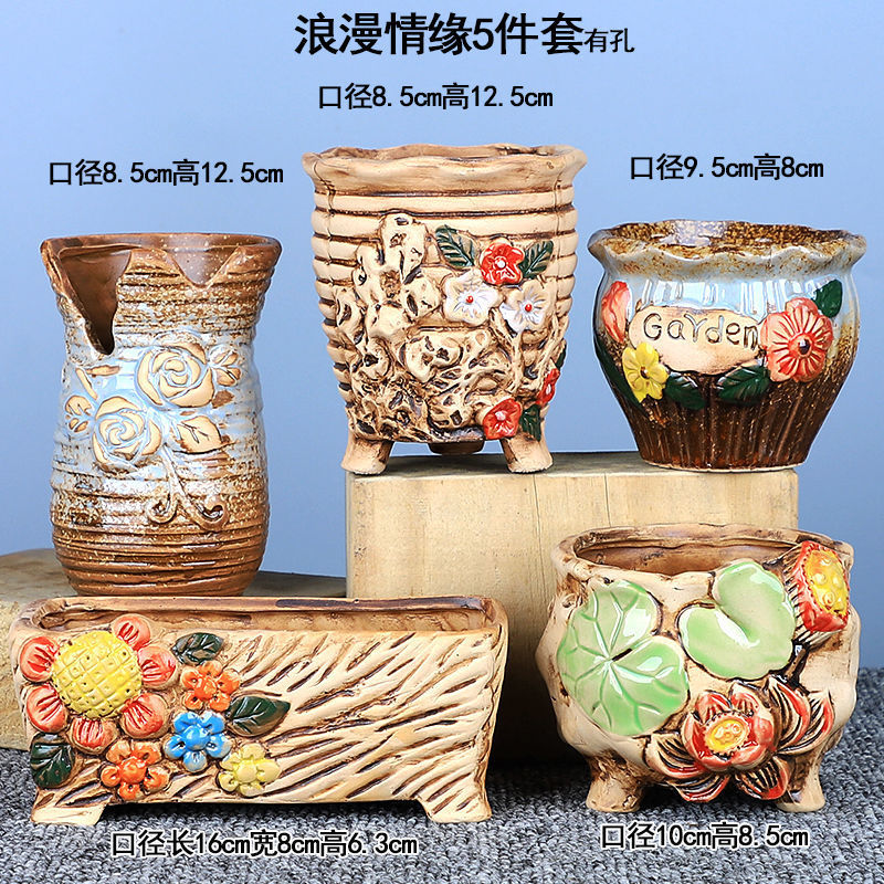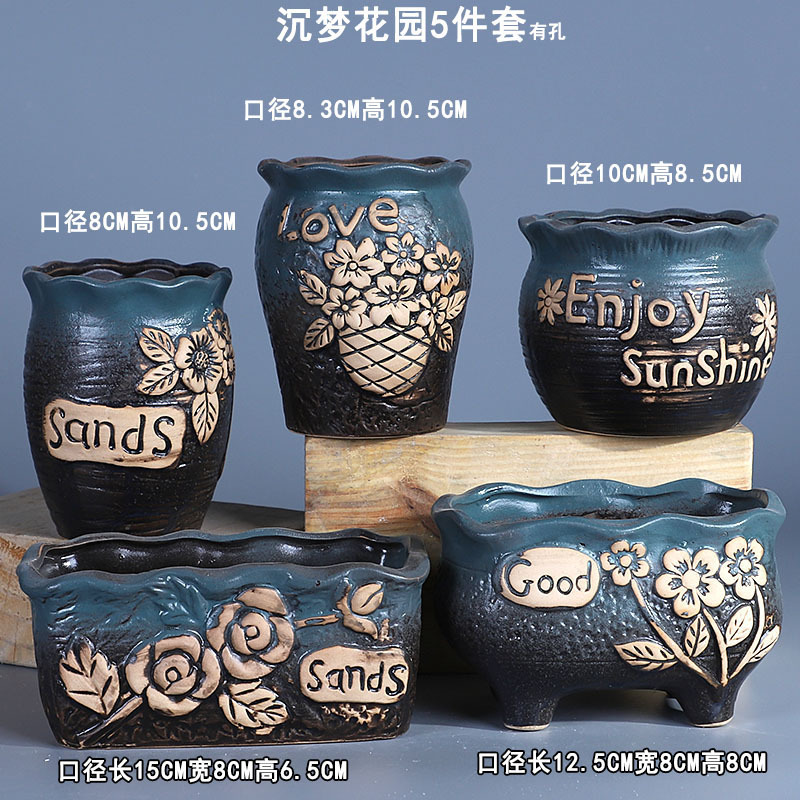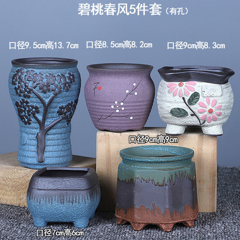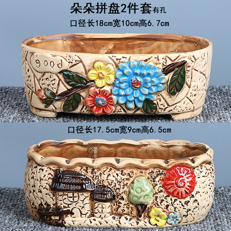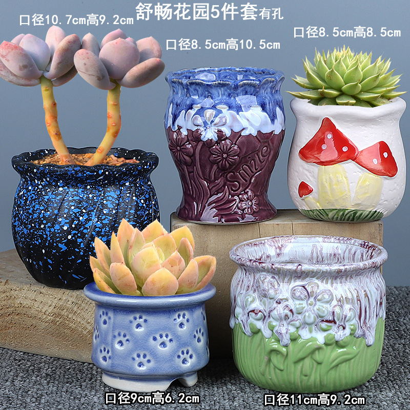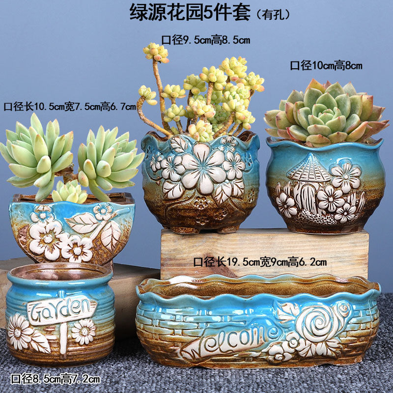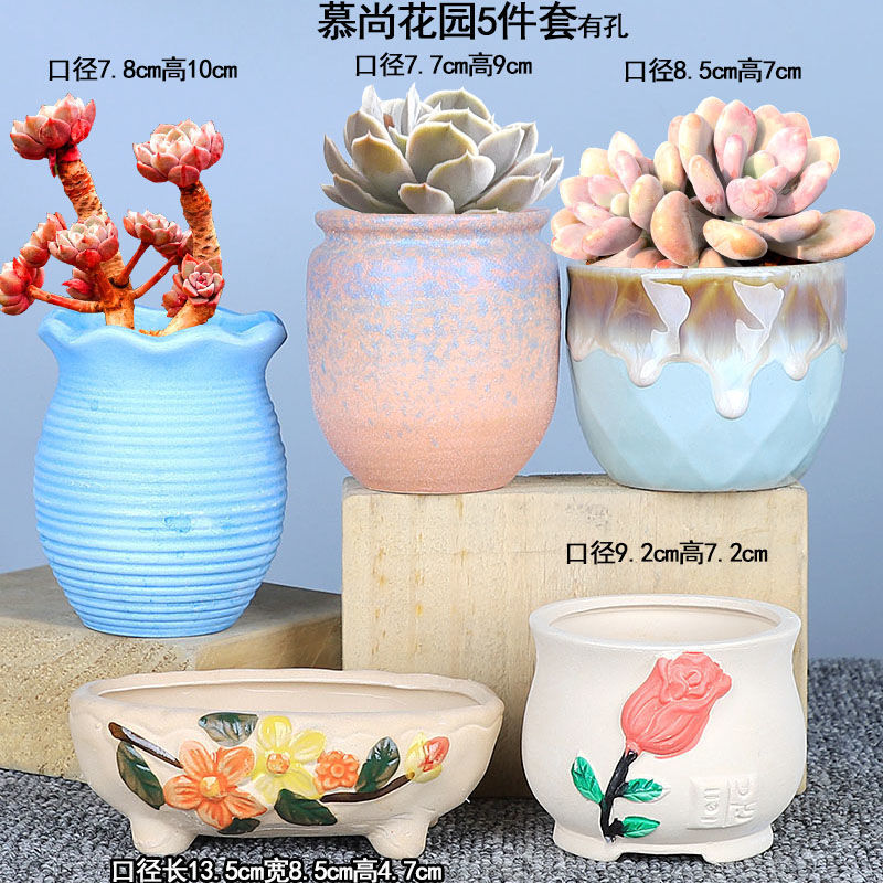 도자기 다육 화분, 세라믹 대형 크리에이티브 맞춤형 거친 도자기 통기성 다육 식물 대구경 소형 화분 제조업체스토어 가기