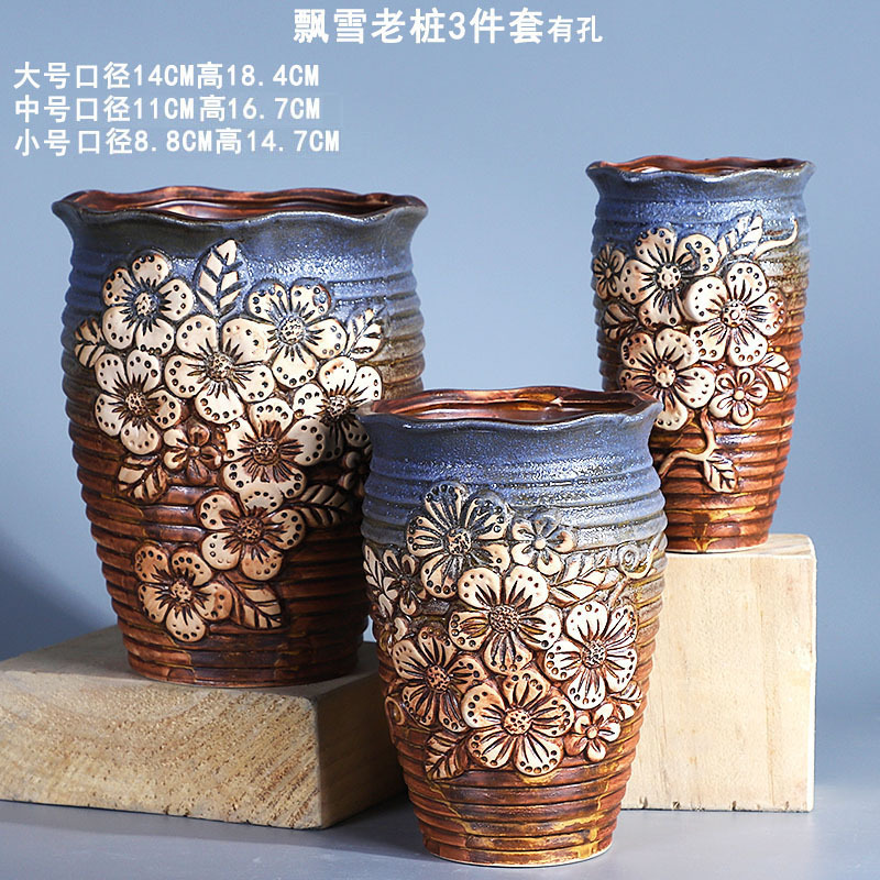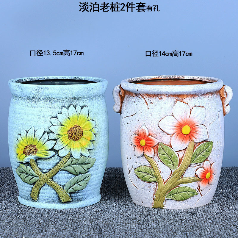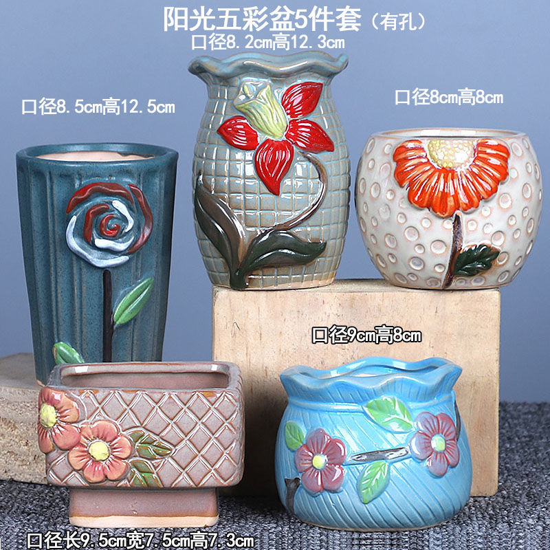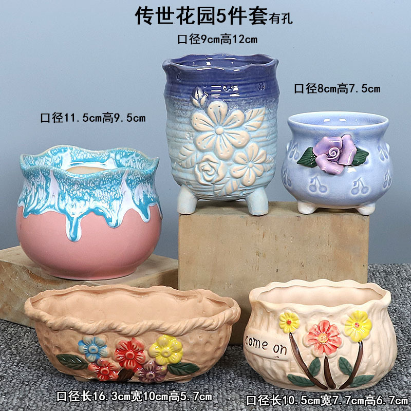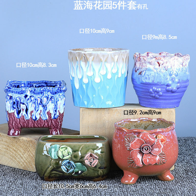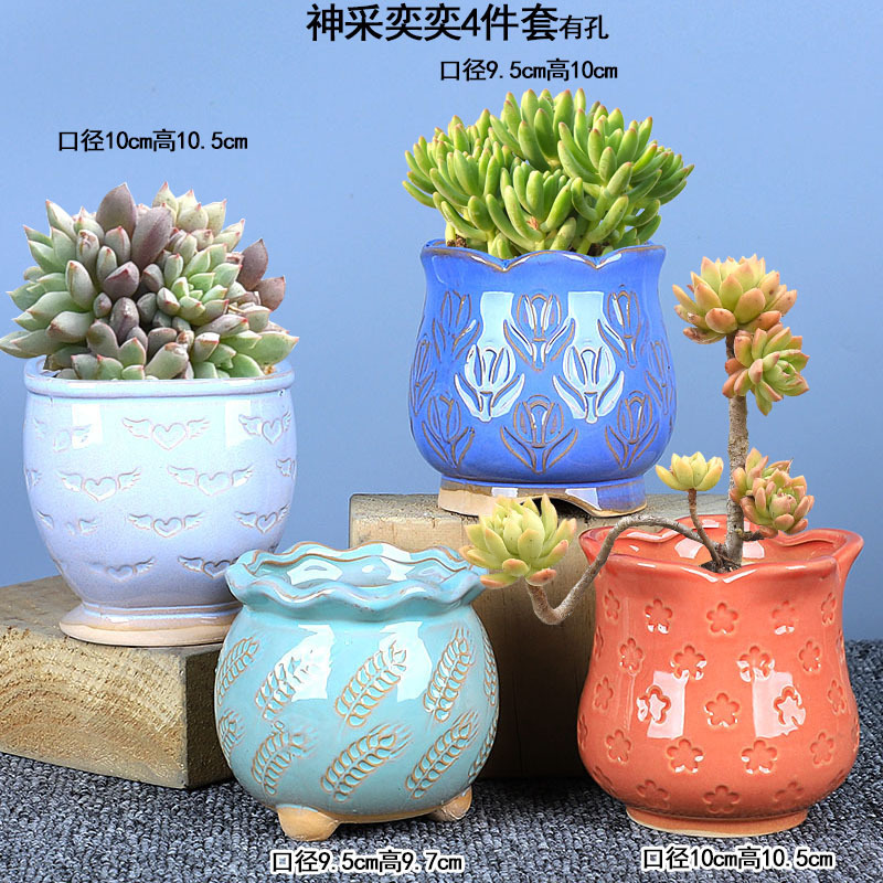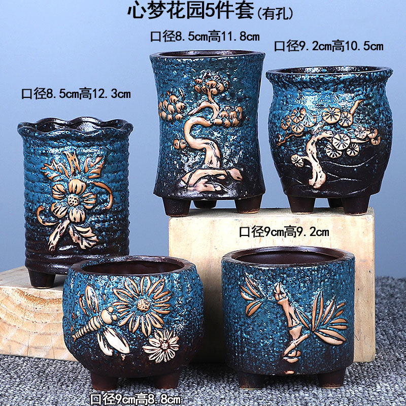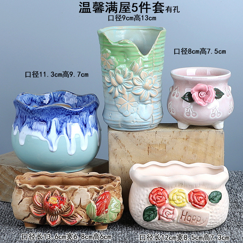 도자기 다육 화분, 세라믹 대형 크리에이티브 맞춤형 거친 도자기 통기성 다육 식물 대구경 소형 화분 제조업체스토어 가기
