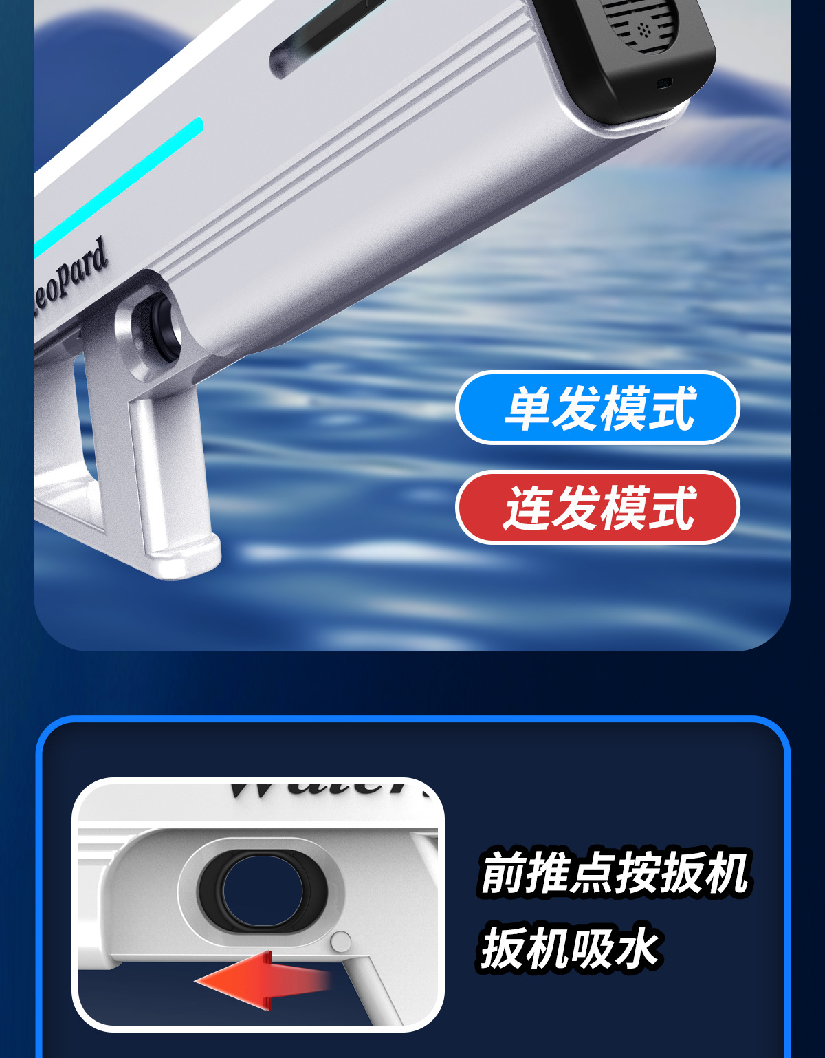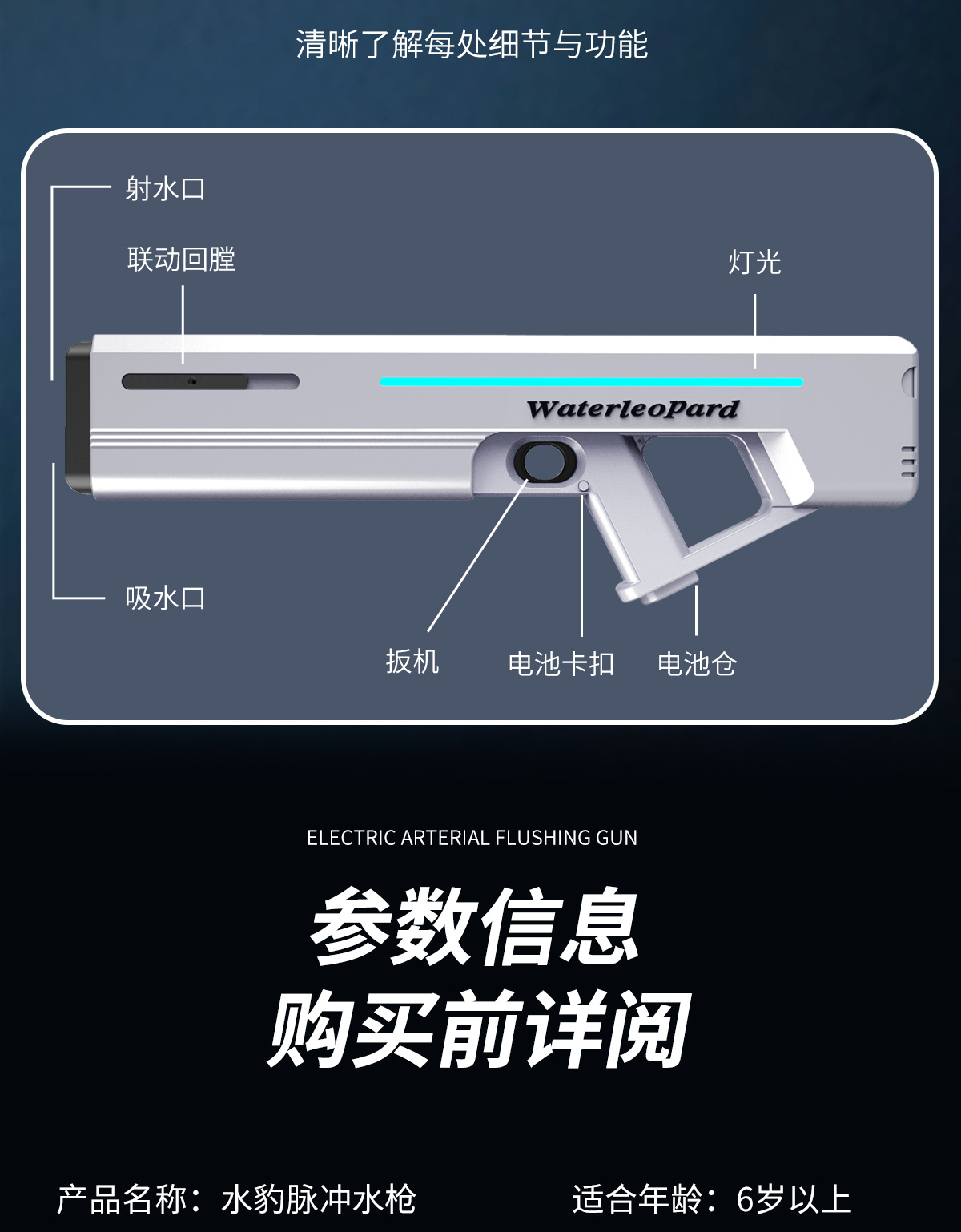 새로운 대형 수압 전기 물총 장난감은 여름 물놀이를 위해 멋진 조명 대용량 연속 물총으로 전환할 수 있습니다.