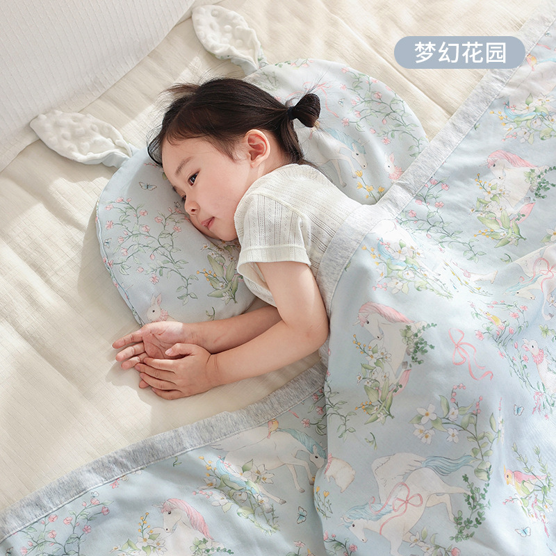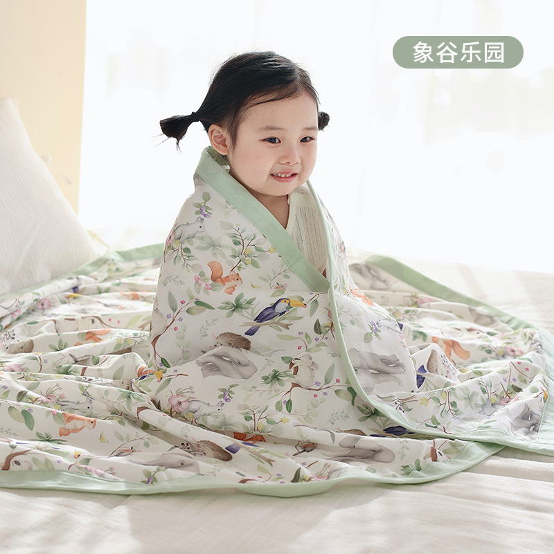 아기 담요, 4겹 대나무면, 통기성이 좋고 답답하지 않은, 신생아 목욕 랩, 유치원 아기 베개 커버