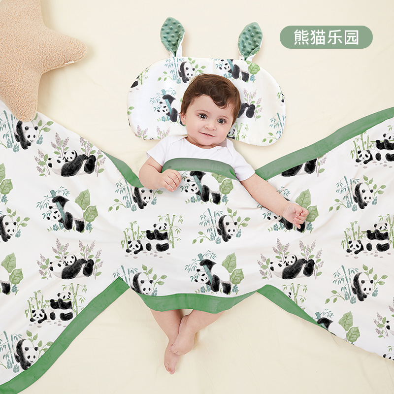 • 팬더 파라다이스 담요 + 베개(25*48cm) 2겹 조절 가능 베개 코어