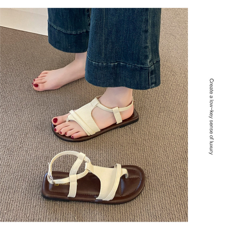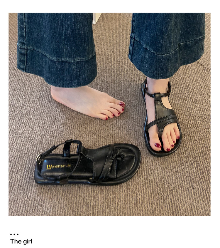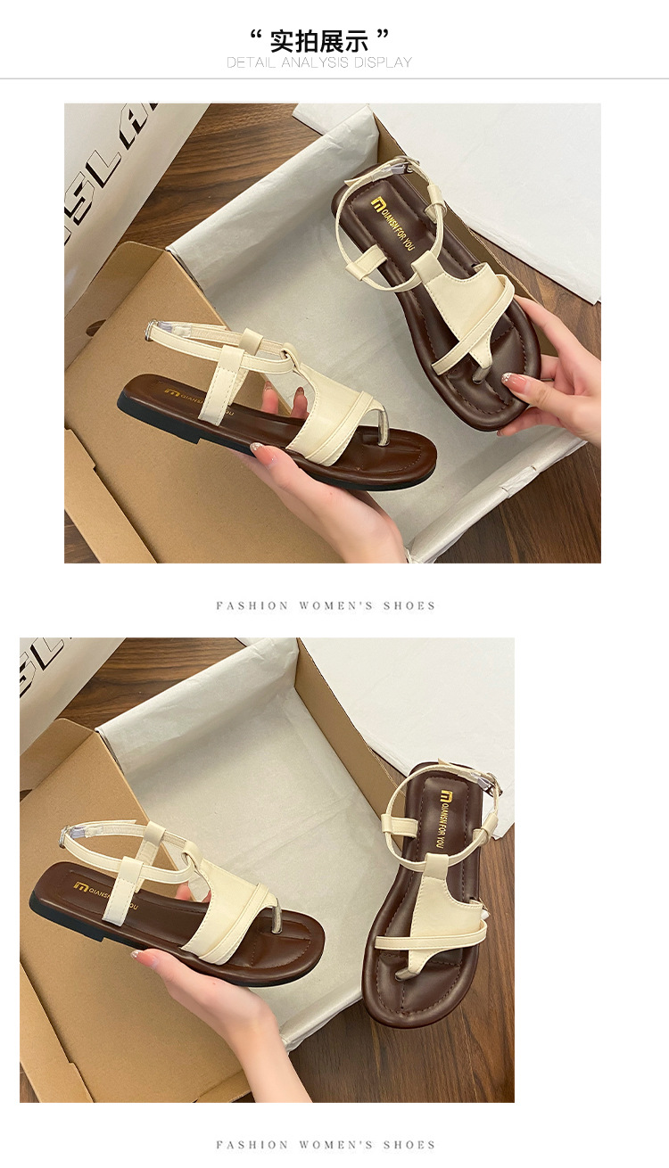 진주 버클 헤링맨 샌들 여자 2025 년 여름 새로운 요정 스타일 간단한 클램프 토이 버클 플랫 샌들스토어 가기