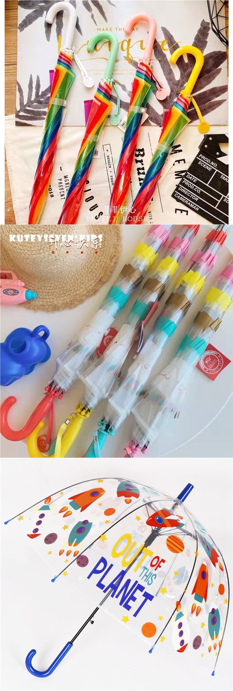 도매 무지개 우산 어린이 투명 우산 소녀 초등학생 귀여운 소년 유치원 아기 성능 작은 긴스토어 가기