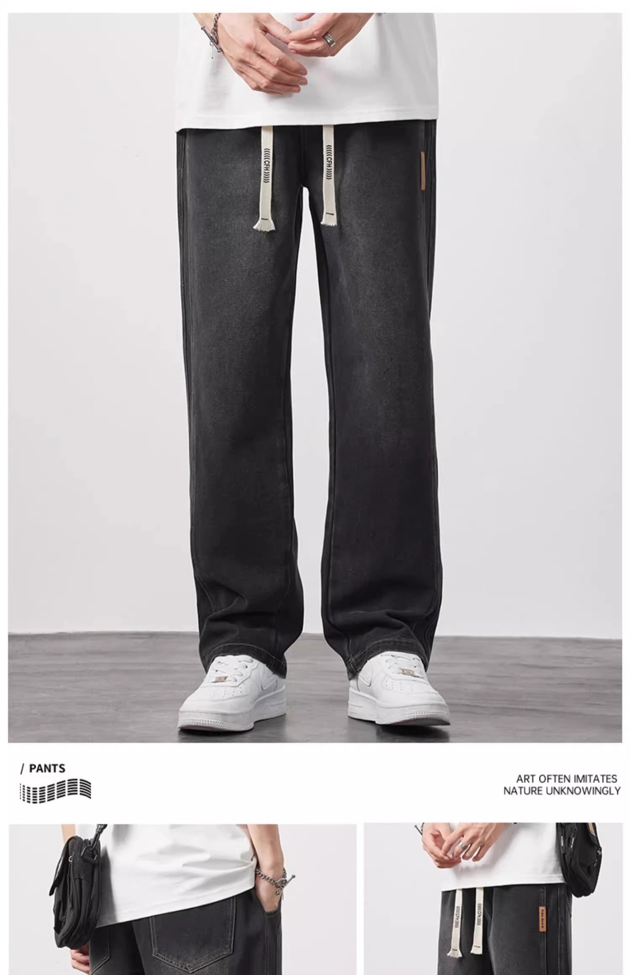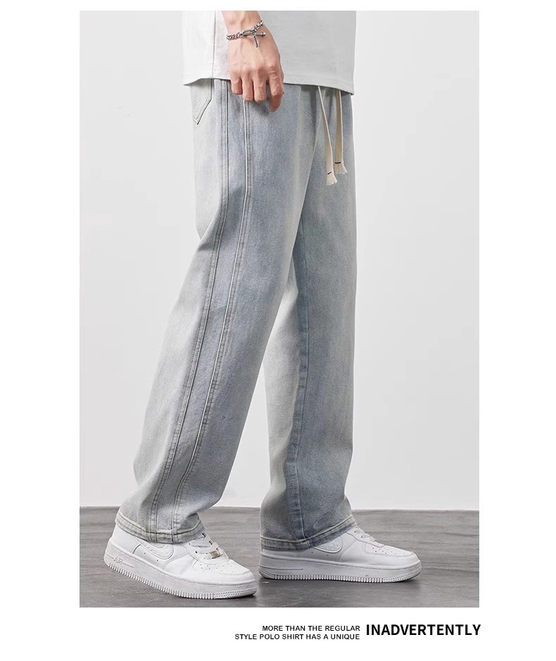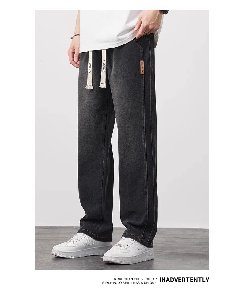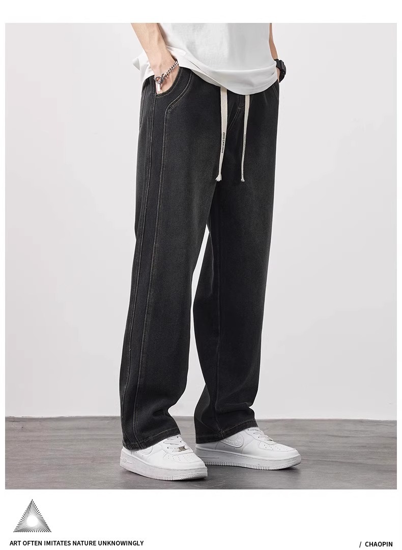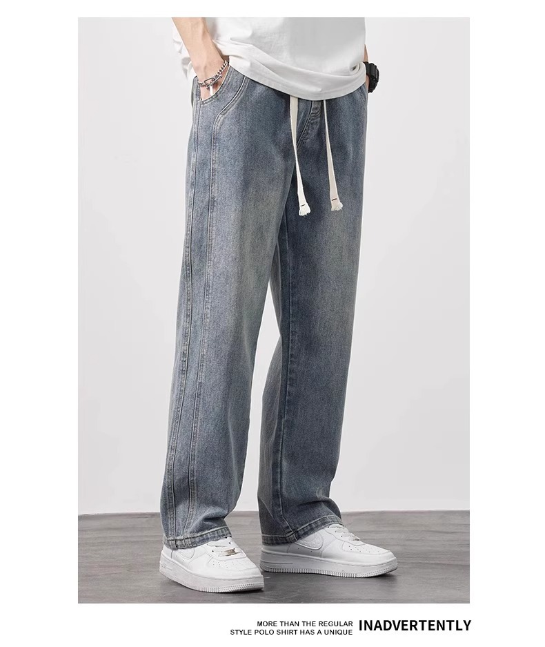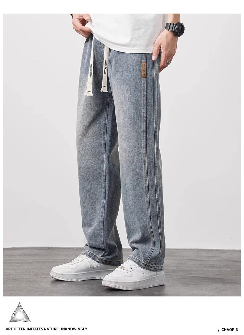 NASA 청바지 남자 여름 얇은 2025 새로운 도착 루스 스트레이트 올 매치 드로우 스트링 와이드 레그 롱 바지스토어 가기