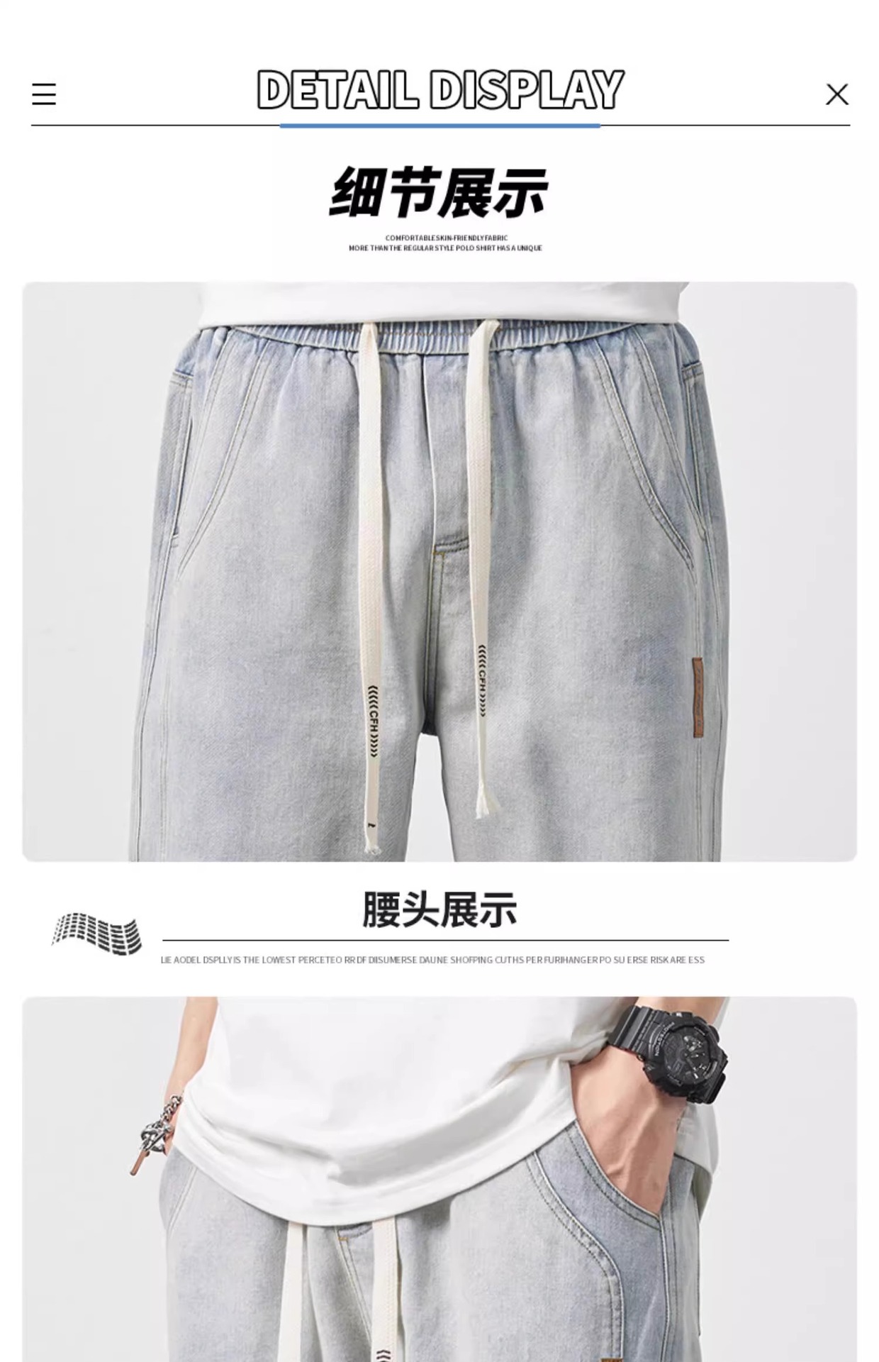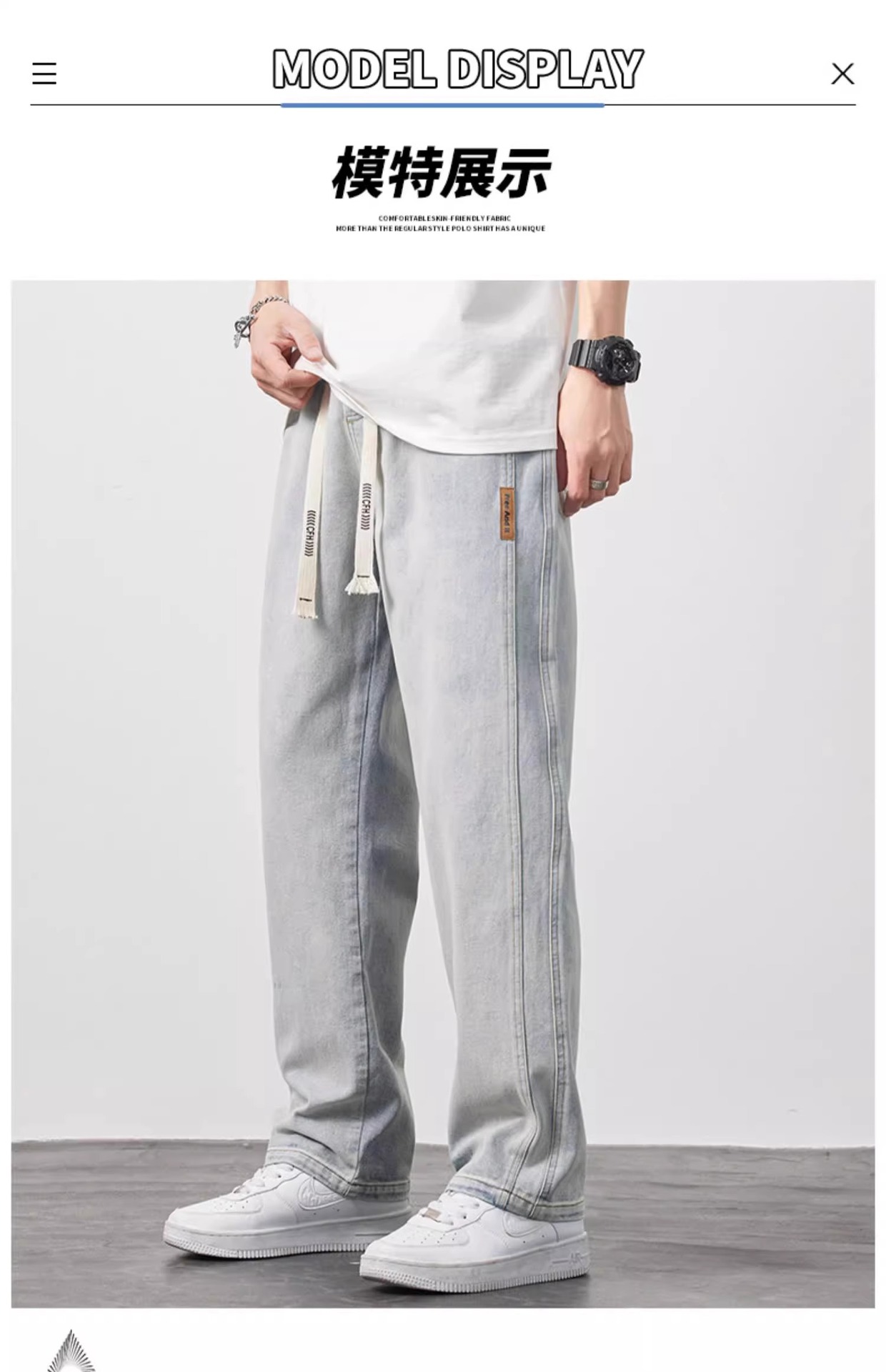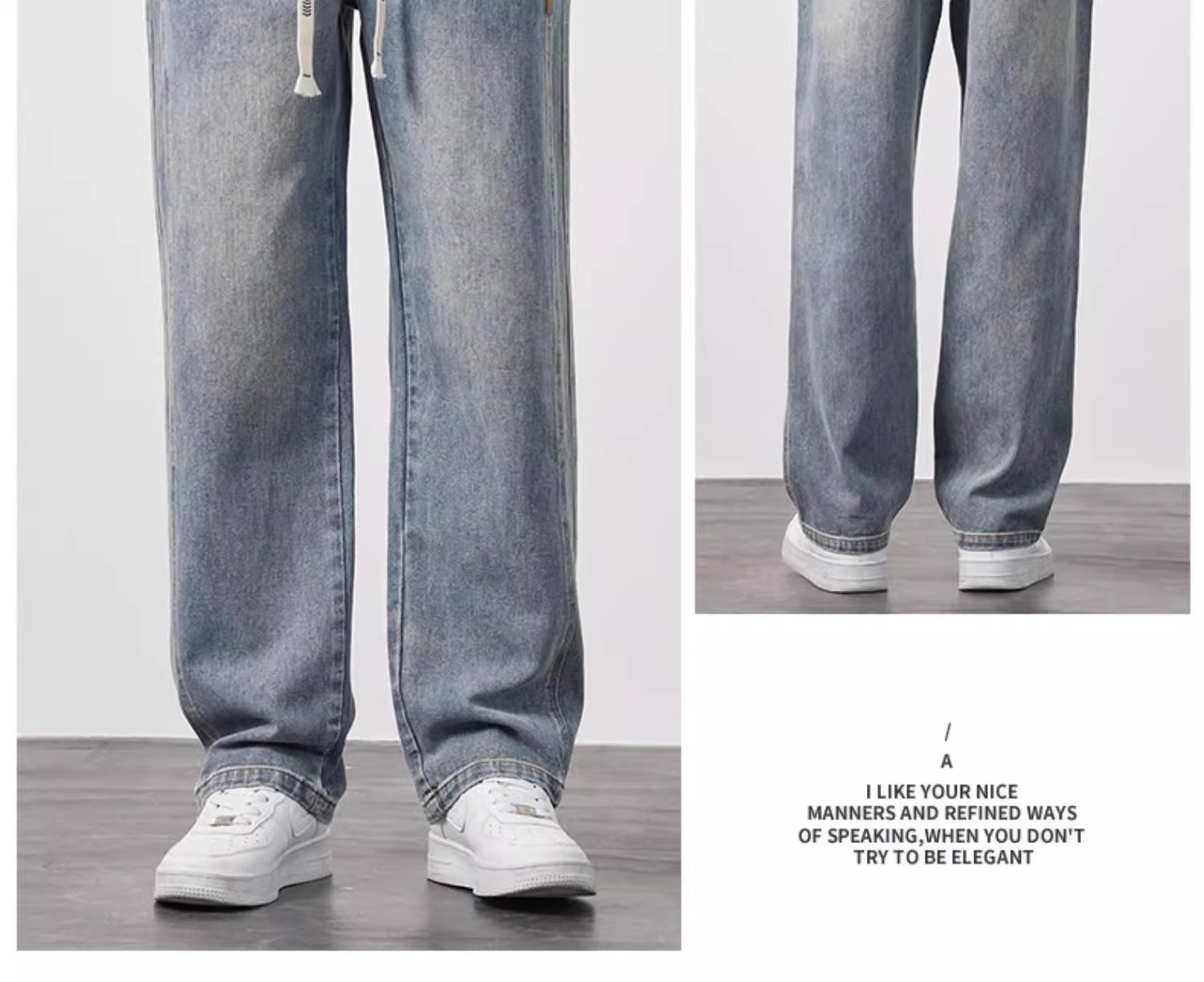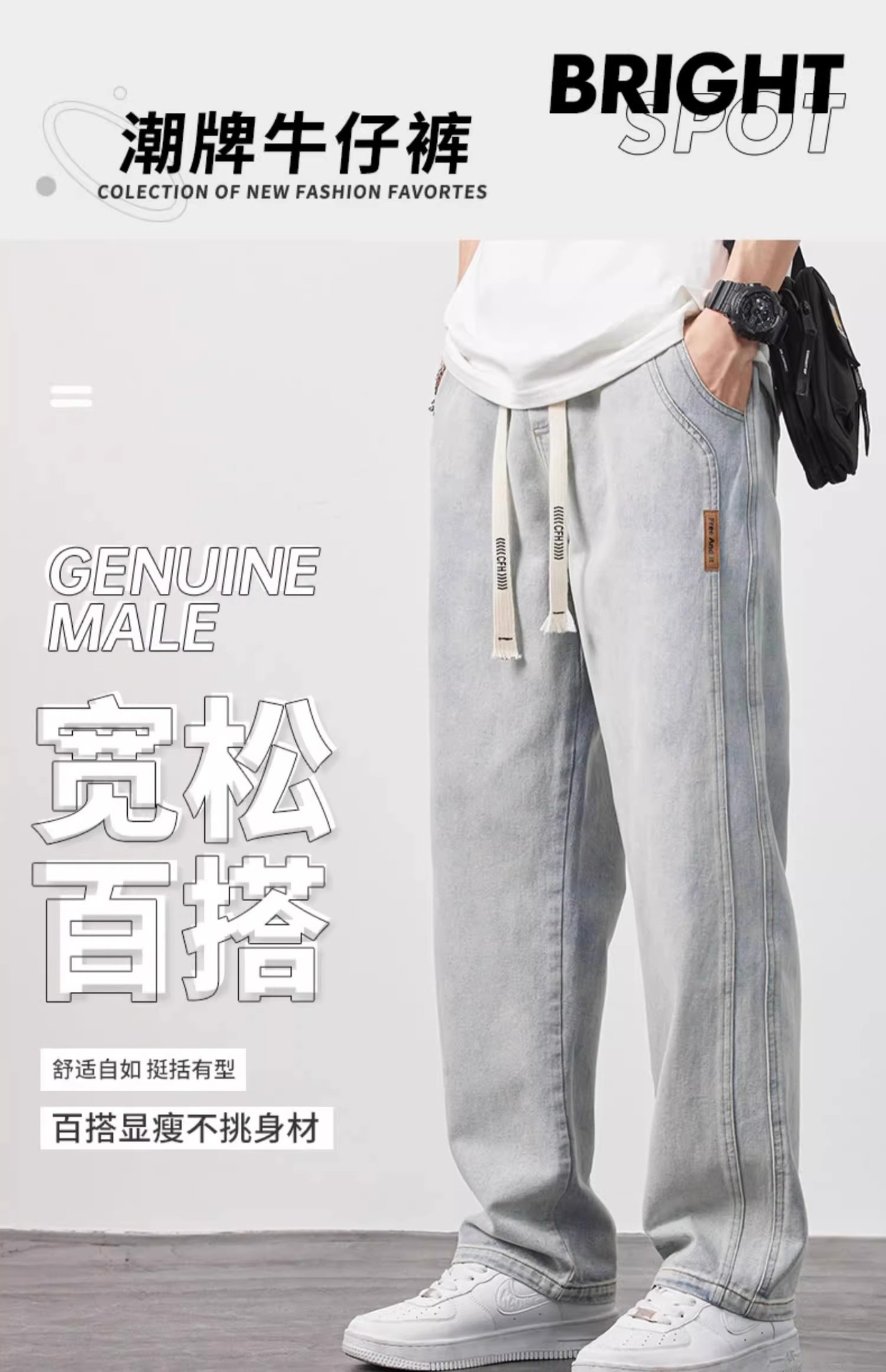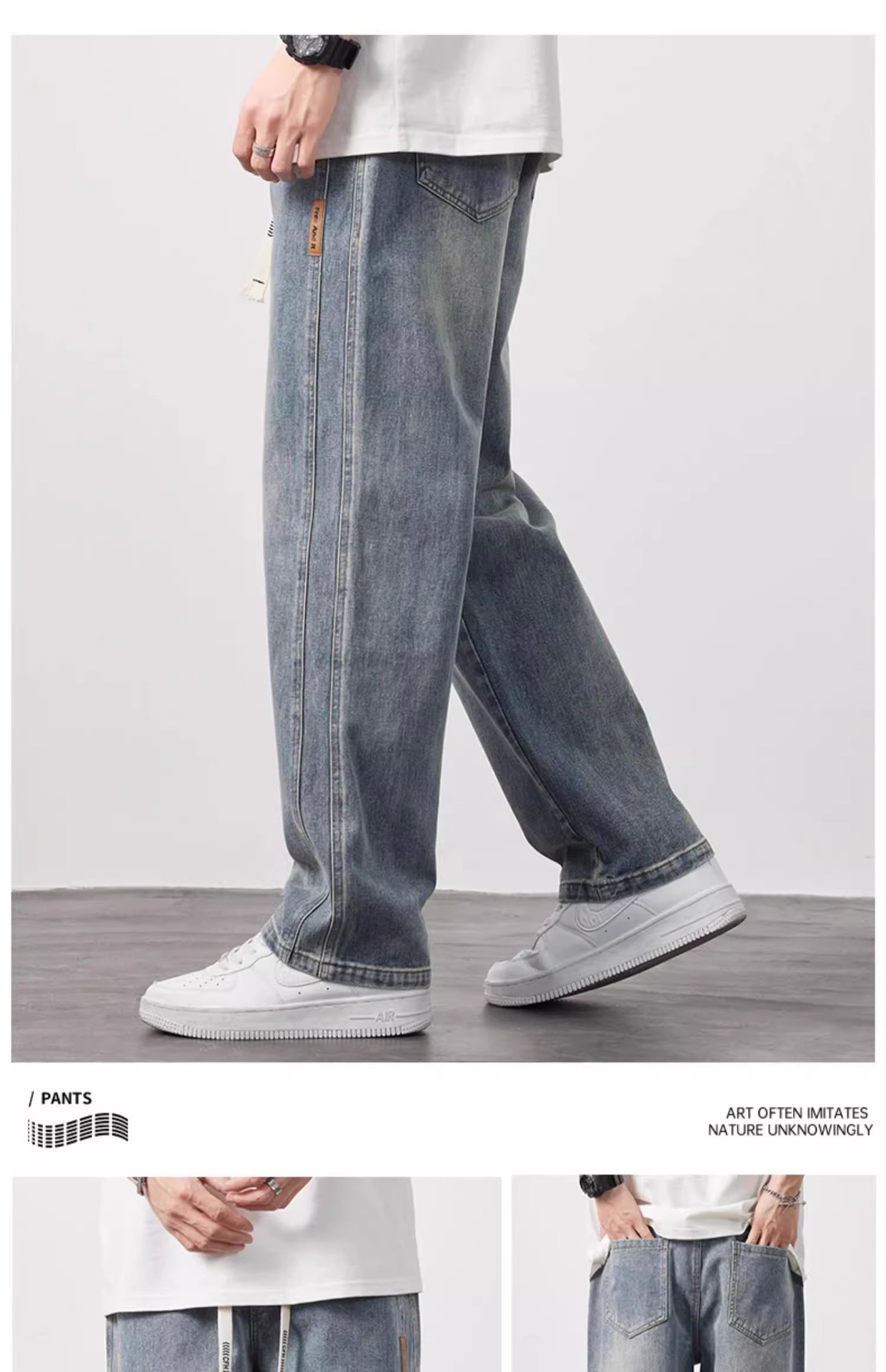 NASA 청바지 남자 여름 얇은 2025 새로운 도착 루스 스트레이트 올 매치 드로우 스트링 와이드 레그 롱 바지스토어 가기