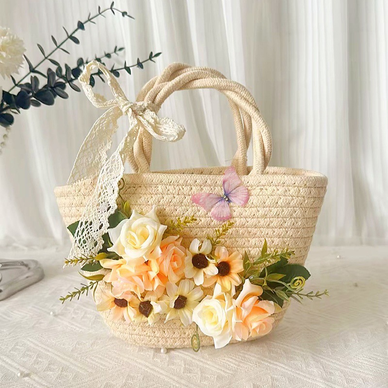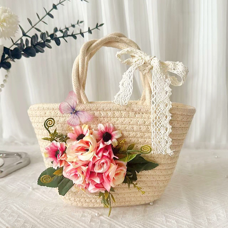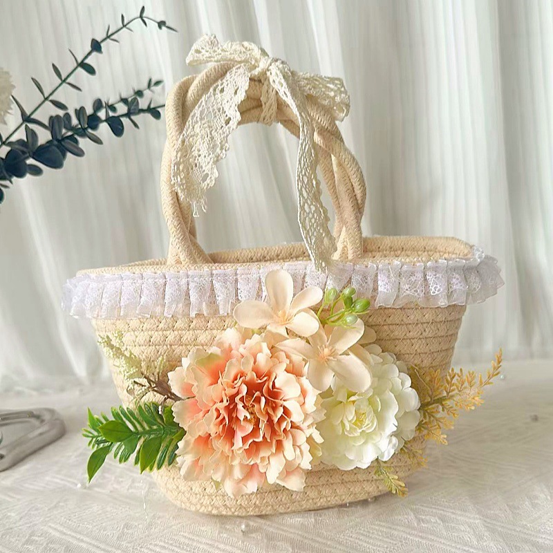 • 내추럴 코튼 로프 우븐 백 + C 스타일 샴페인 컬러 실크 부케
