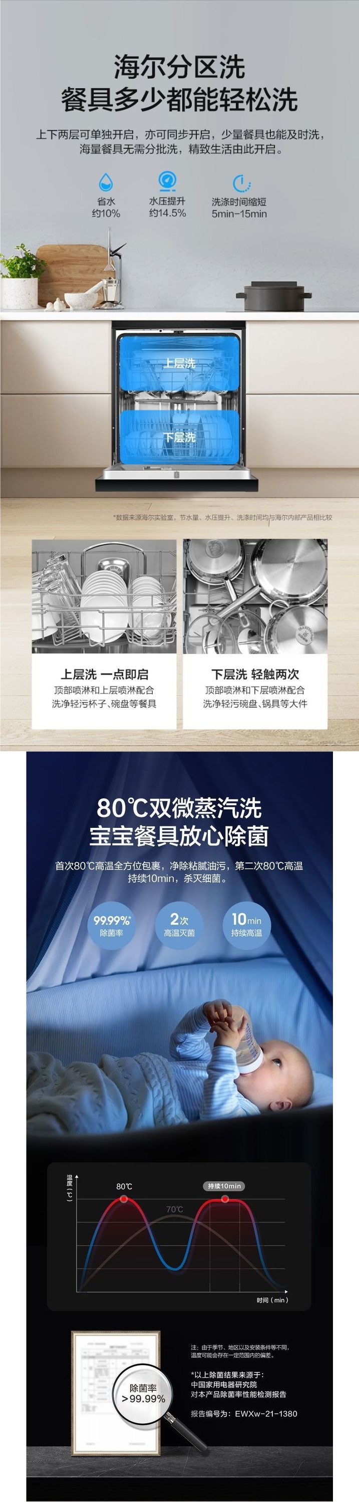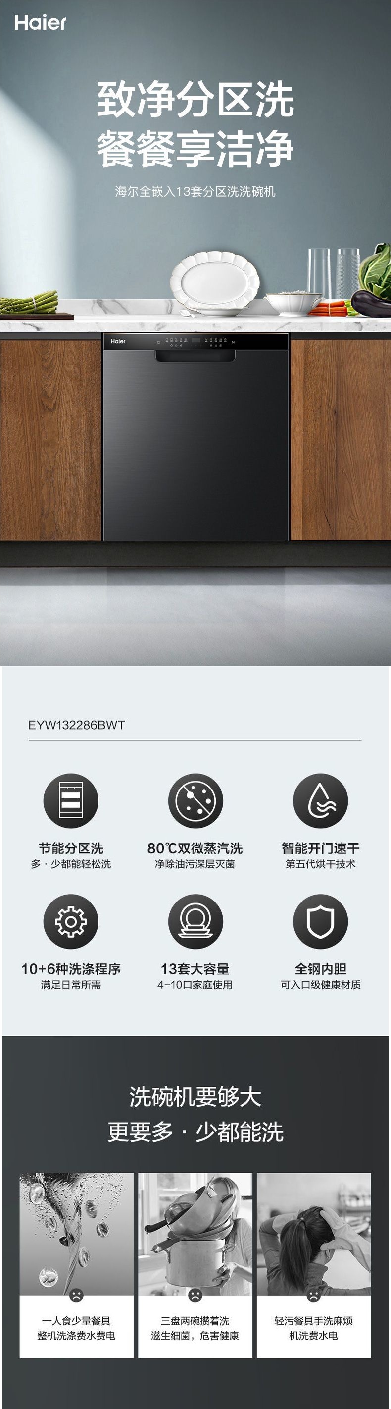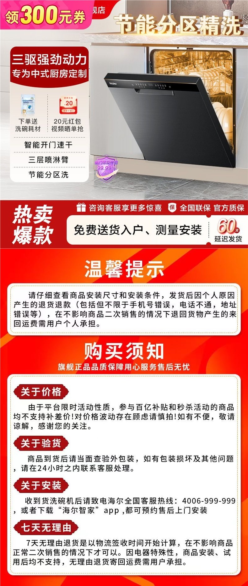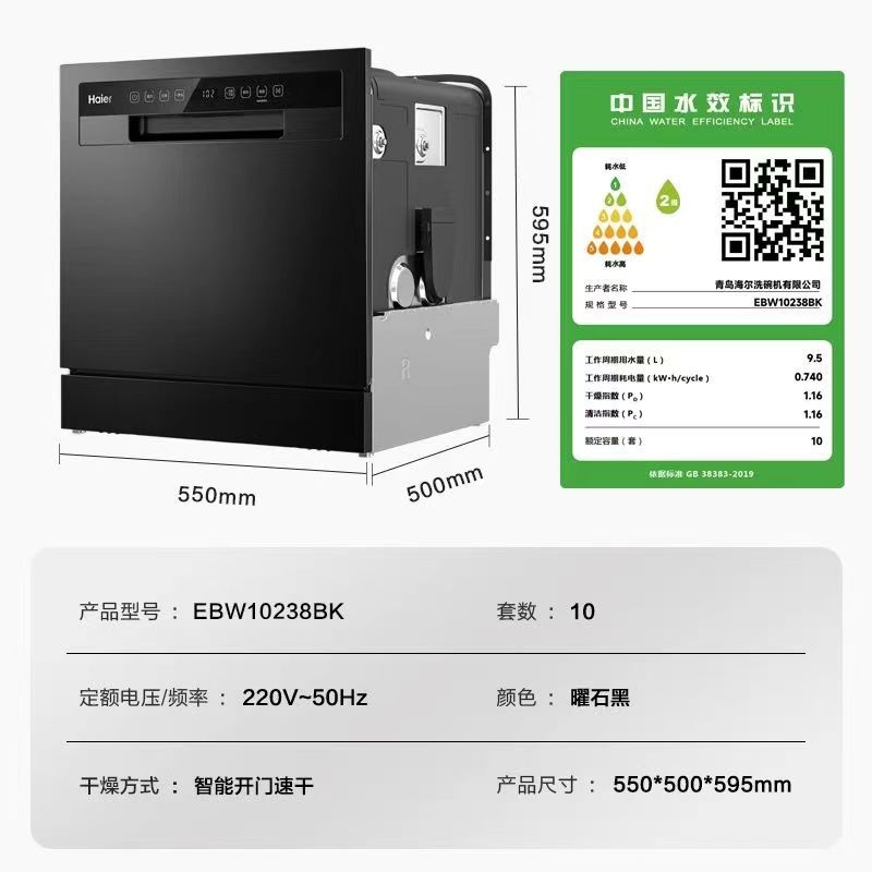 [정부보조금 15%] 하이얼 식기세척기 G7 가정용 전자동 구역세척 내장형 지능형 건조 에너지 절약