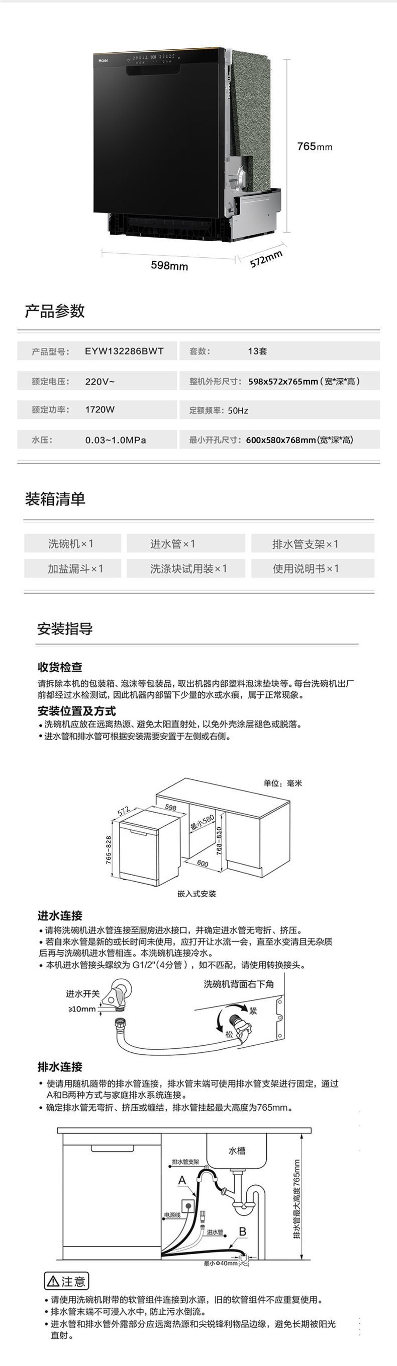 [정부보조금 15%] 하이얼 식기세척기 G7 가정용 전자동 구역세척 내장형 지능형 건조 에너지 절약스토어 가기