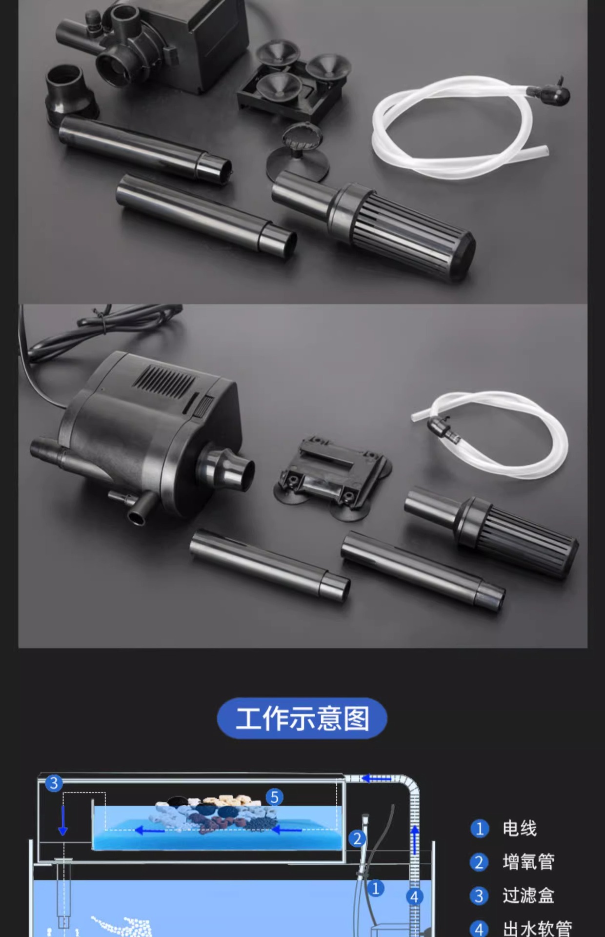 Songbao WP1660 1990 수조 필터 3-in-1 펌프 산소화 수중 펌프 수족관스토어 가기
