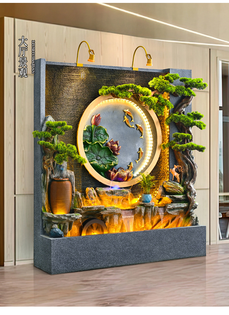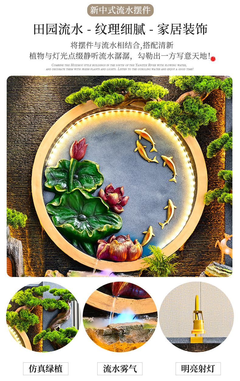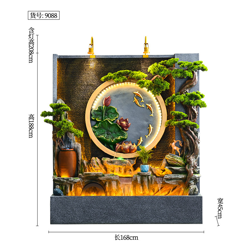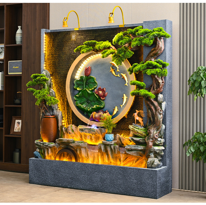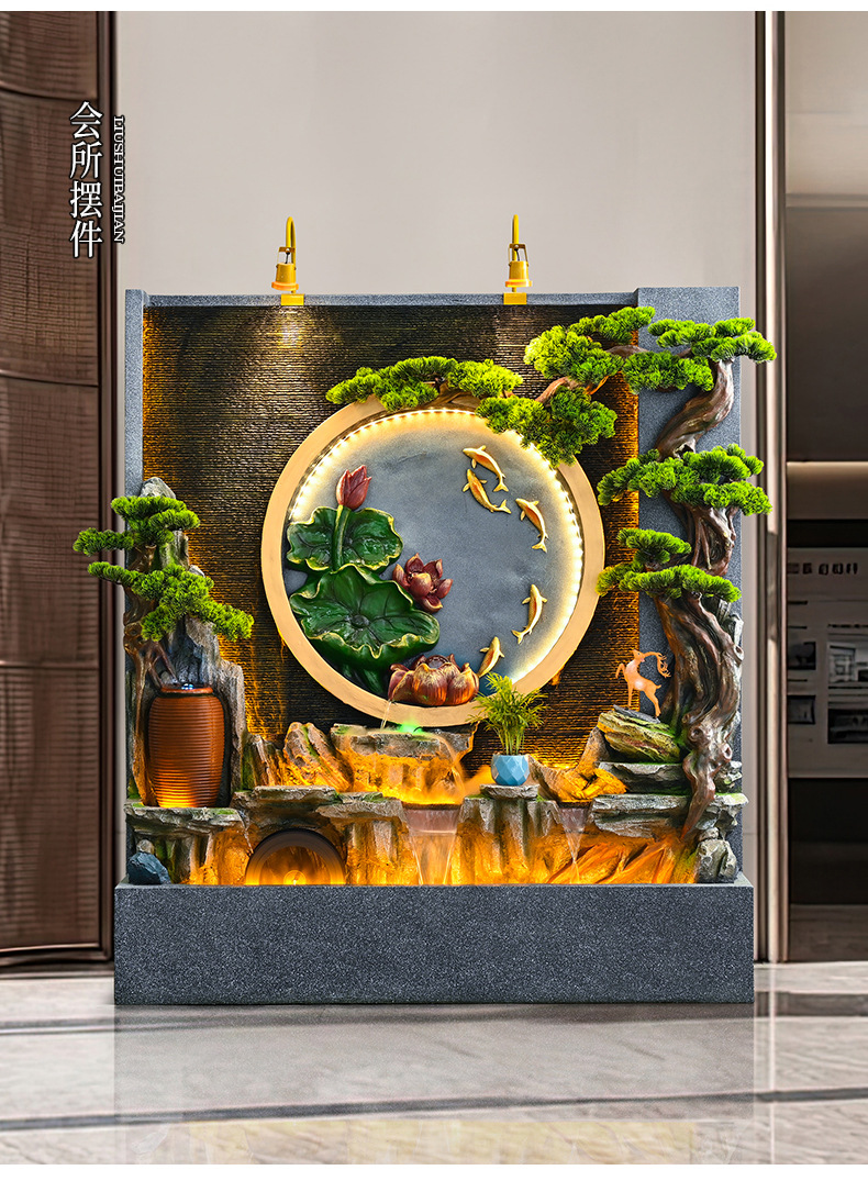 새로운 중국 스타일의 러기드 흐르는 물 분수 장식품 호텔 클럽 빌라 거실 사무실 행운의 보물 상자 풍수 휠