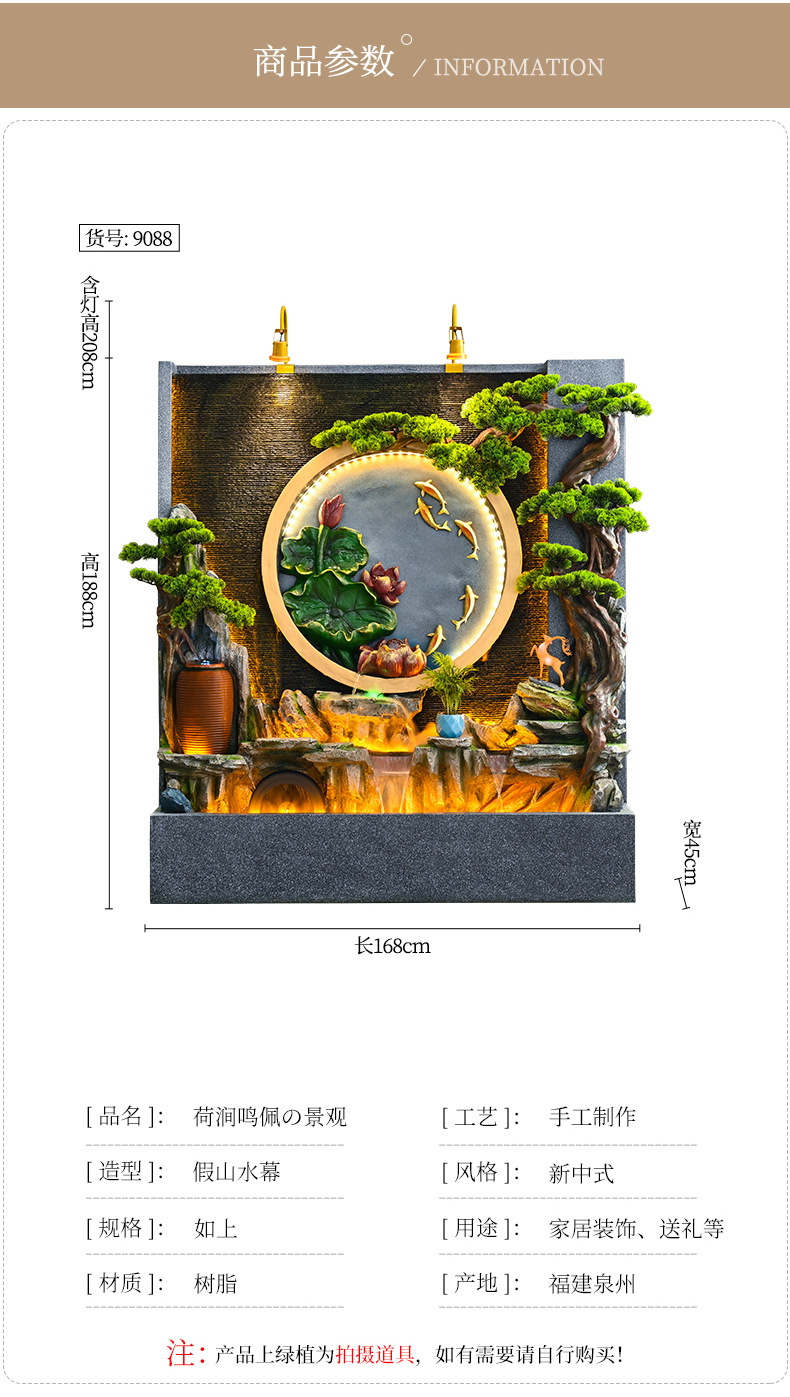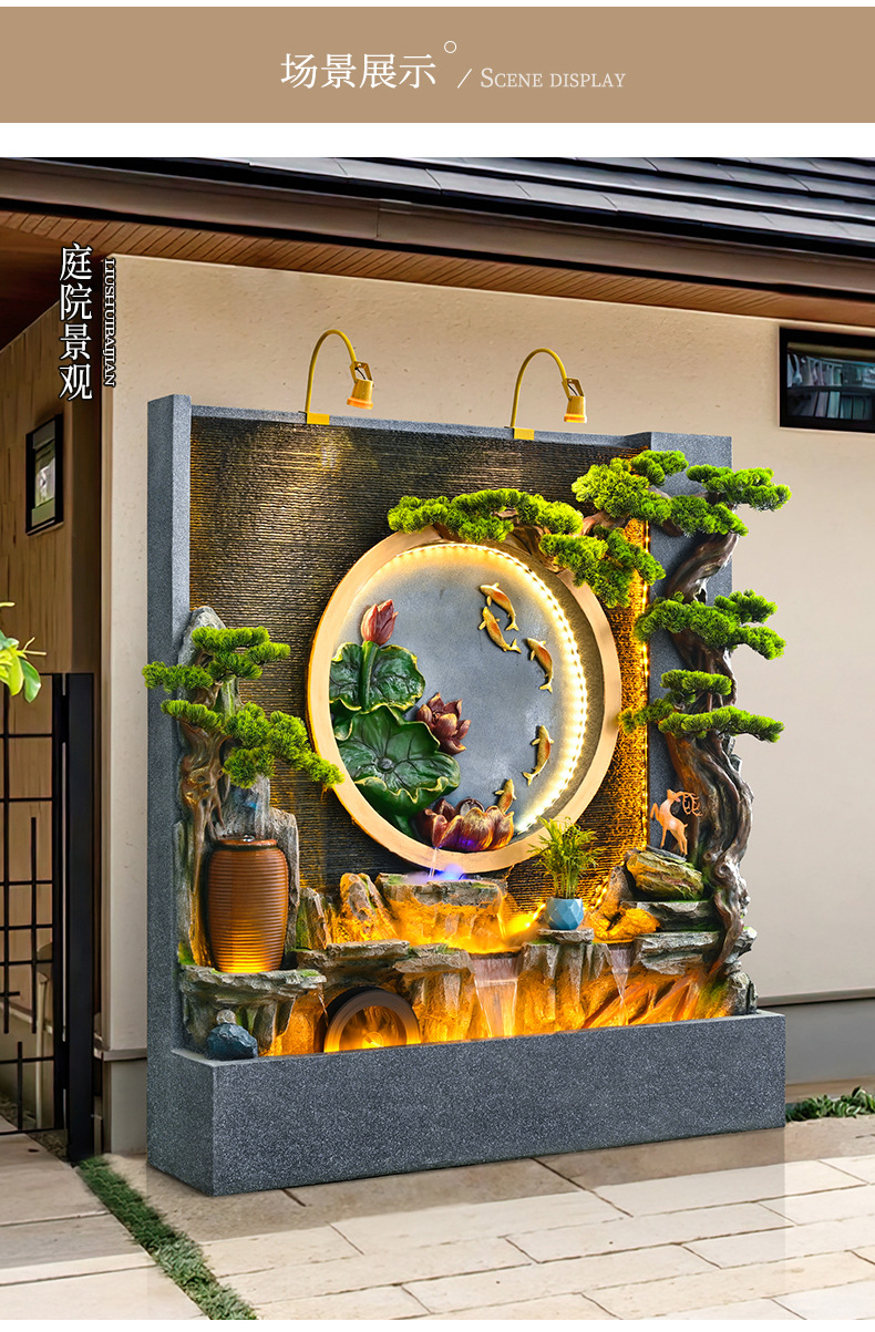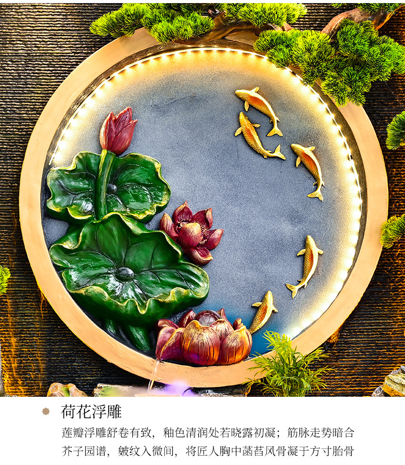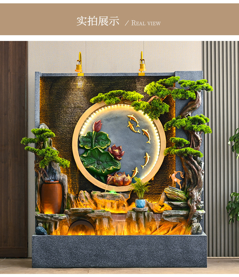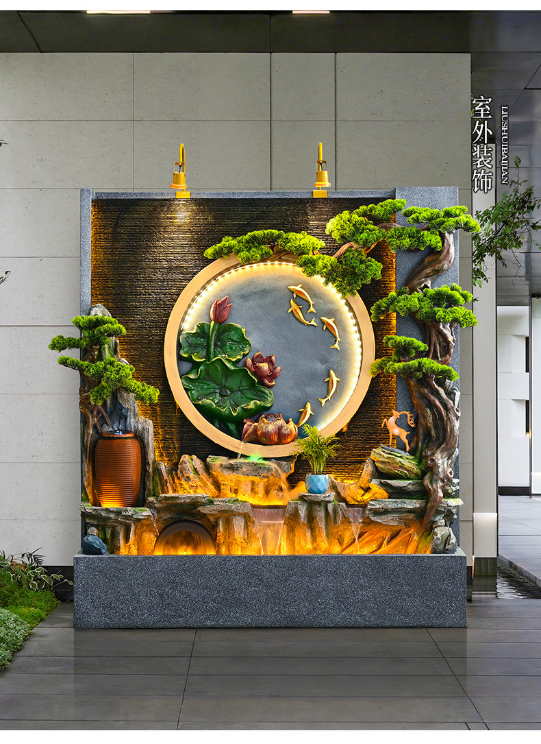 새로운 중국 스타일의 러기드 흐르는 물 분수 장식품 호텔 클럽 빌라 거실 사무실 행운의 보물 상자 풍수 휠