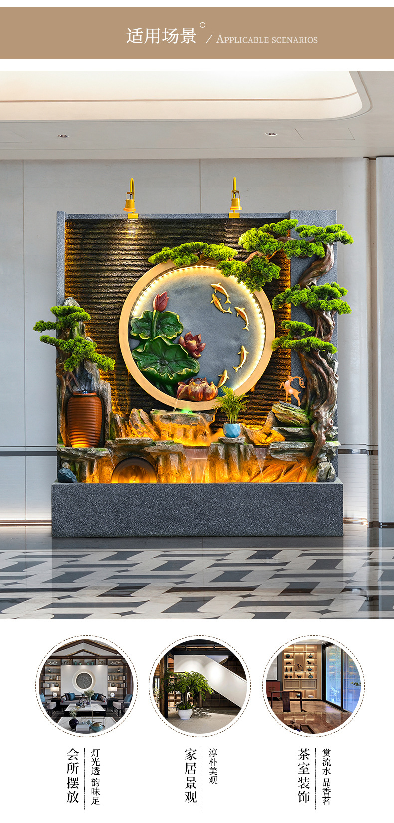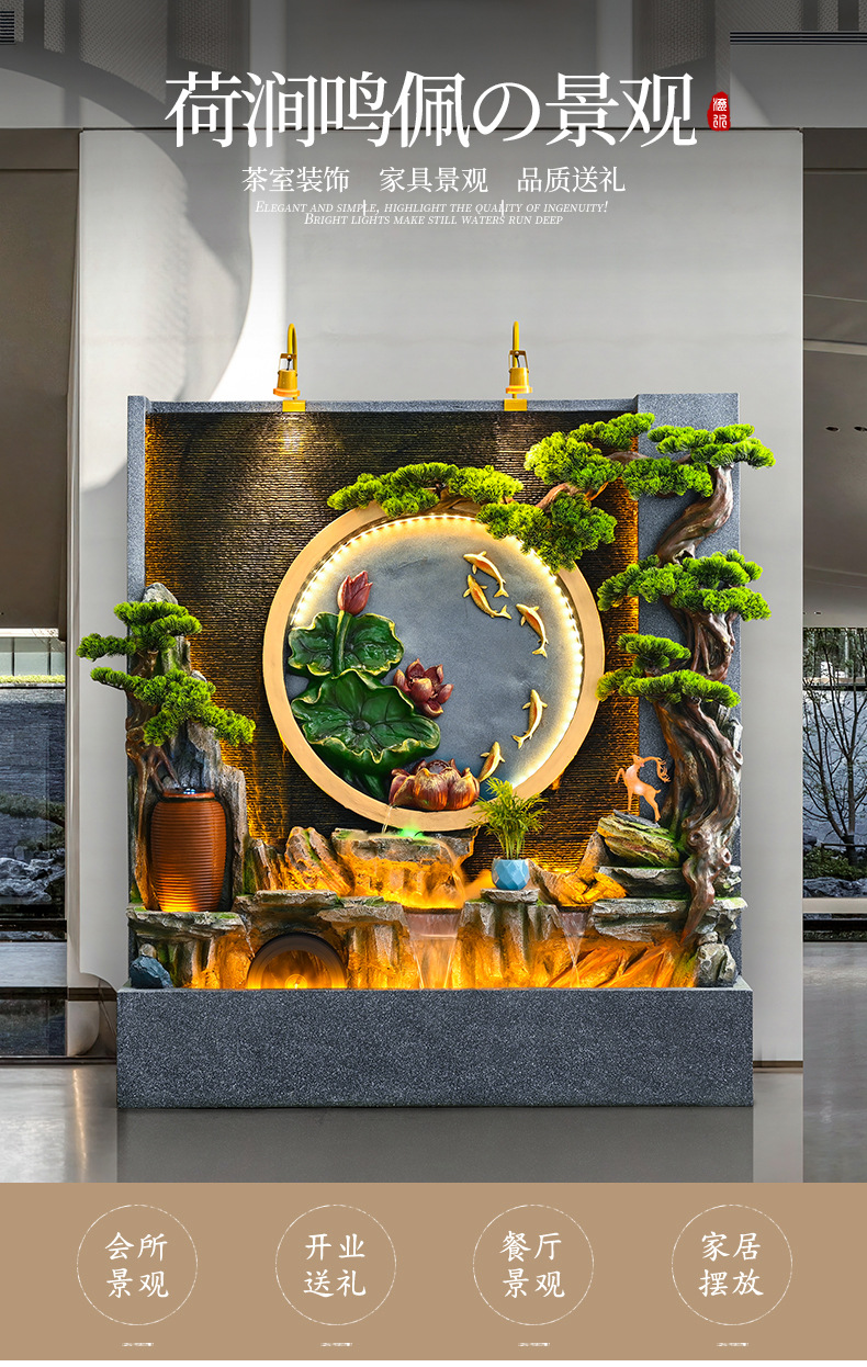 새로운 중국 스타일의 러기드 흐르는 물 분수 장식품 호텔 클럽 빌라 거실 사무실 행운의 보물 상자 풍수 휠스토어 가기