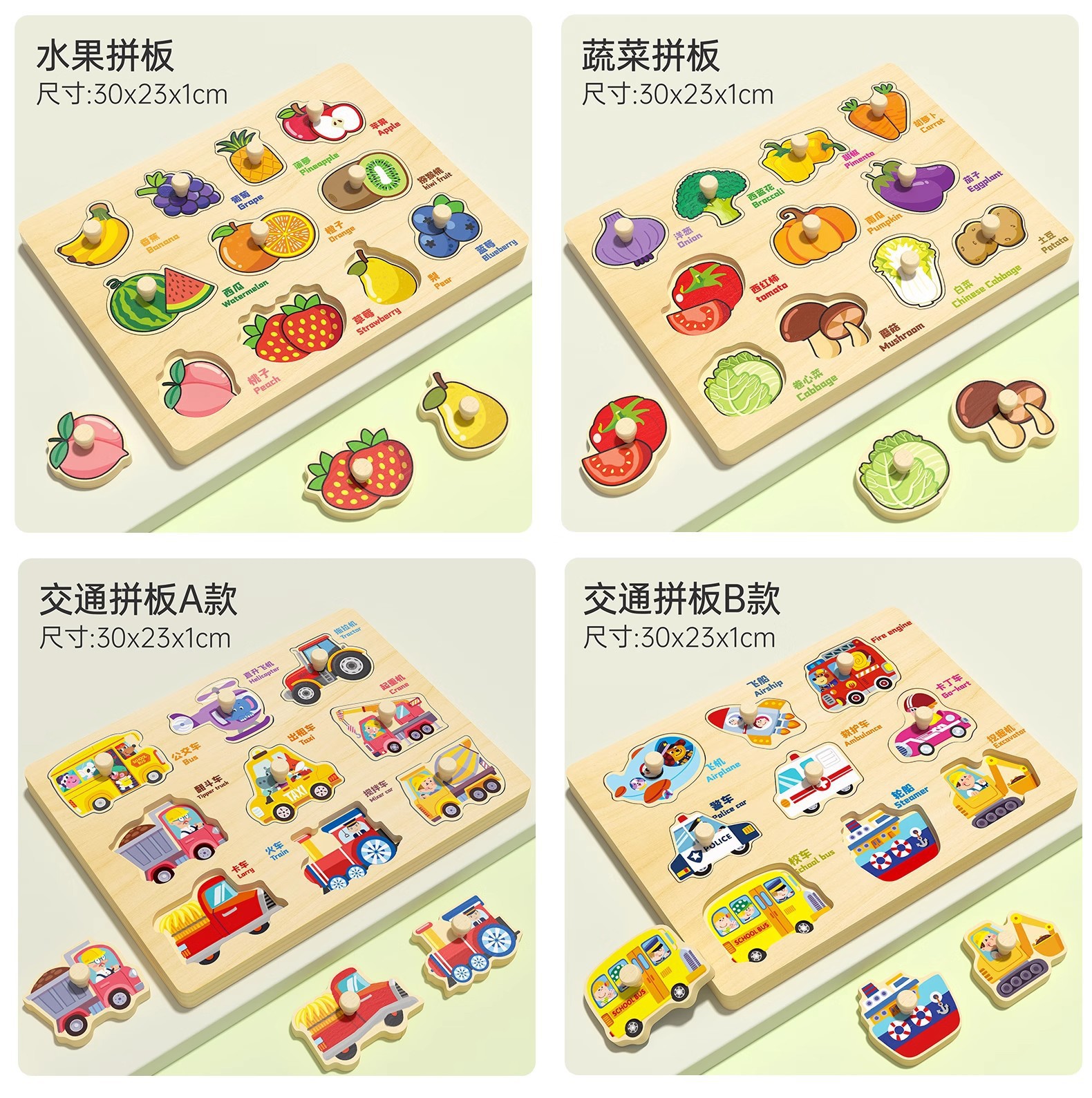 • 야채 손으로 잡아 퍼즐 보드 [중국어와 영어 이중 언어 조합]