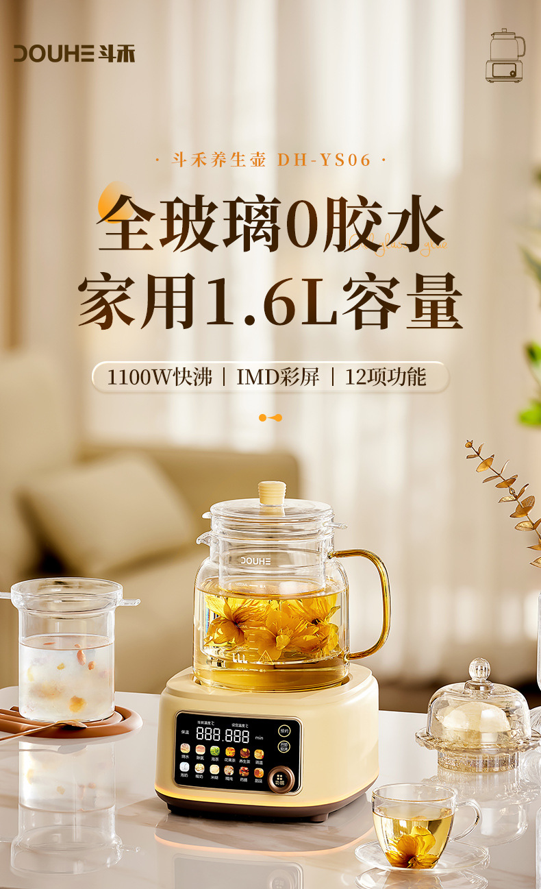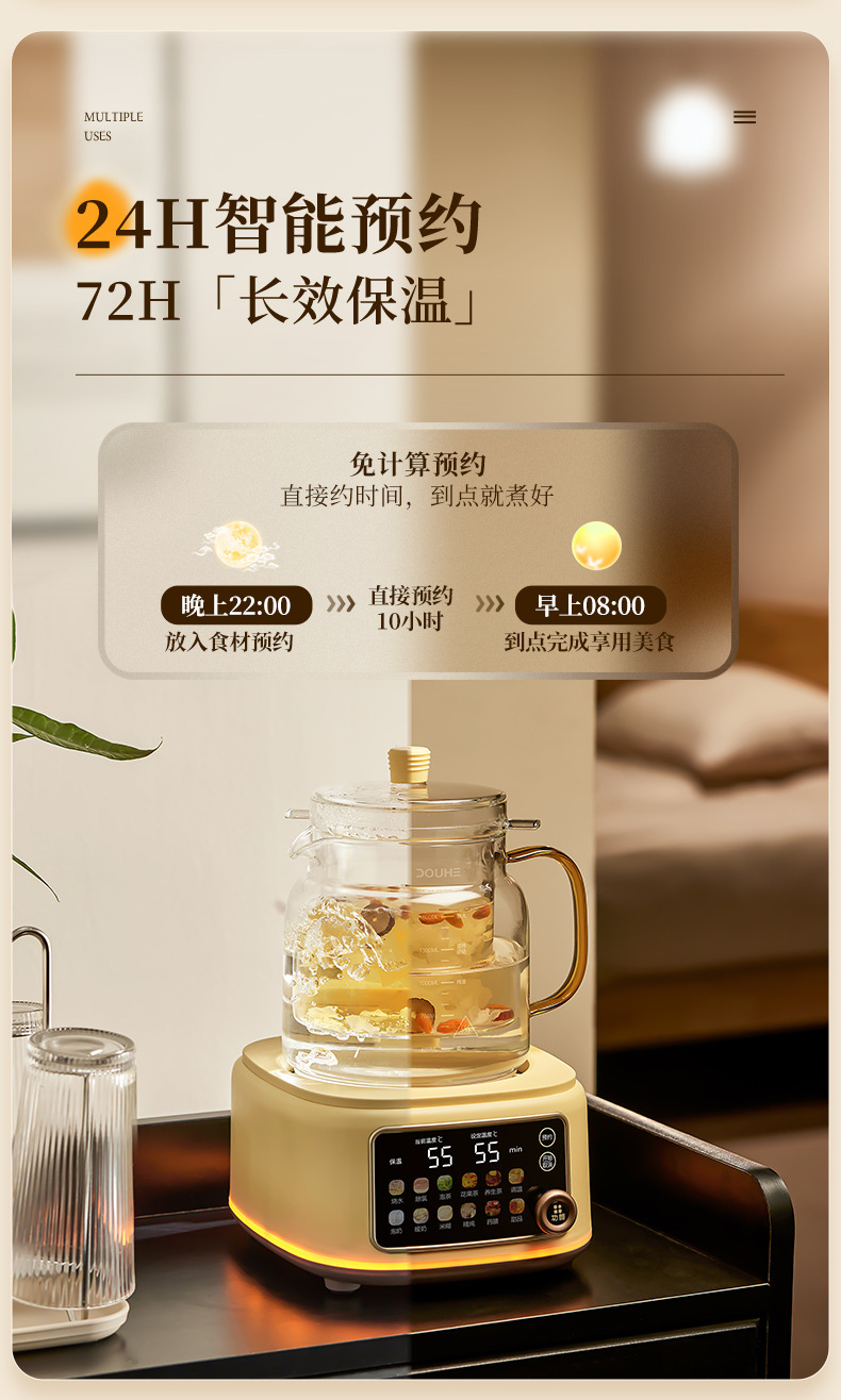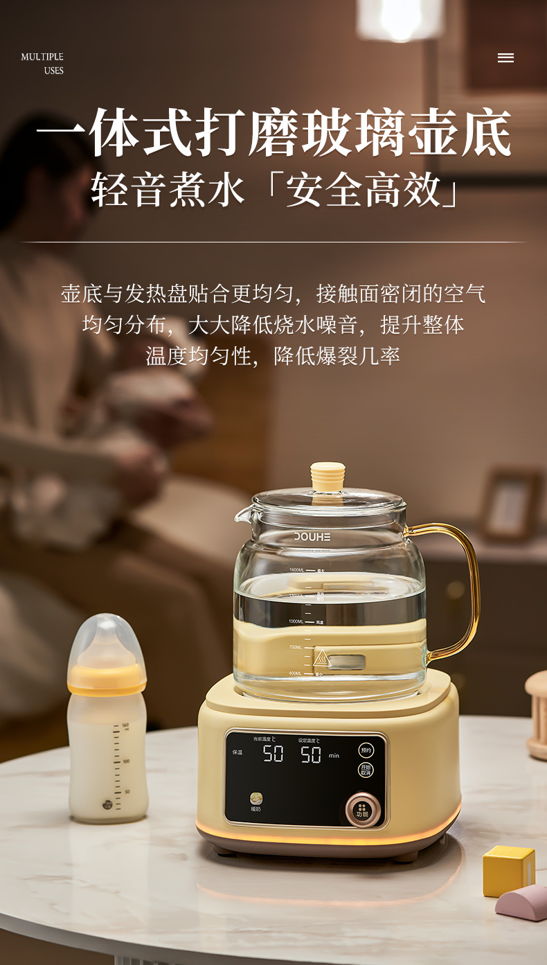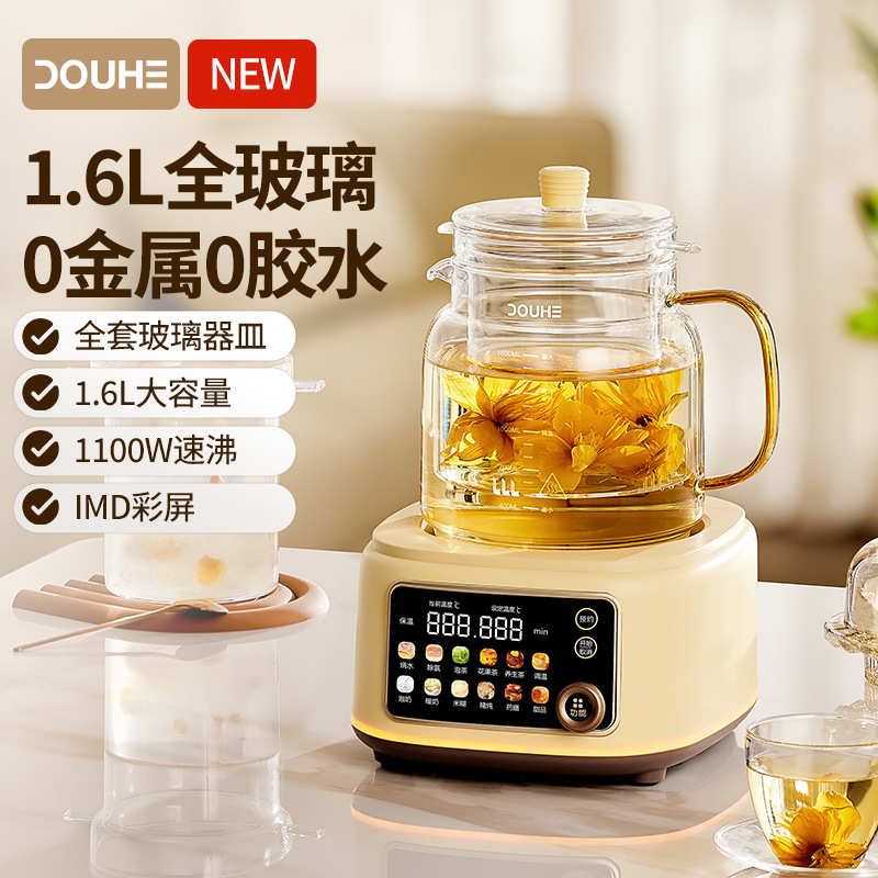 Douhe 전체 유리 항온 건강 보존 주전자 가정용 다기능 사무실 작은 차 전기 주전자 2025 새로운 스타일스토어 가기