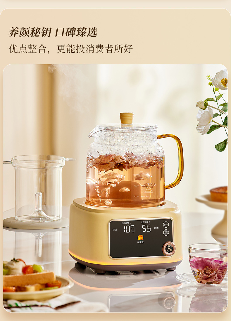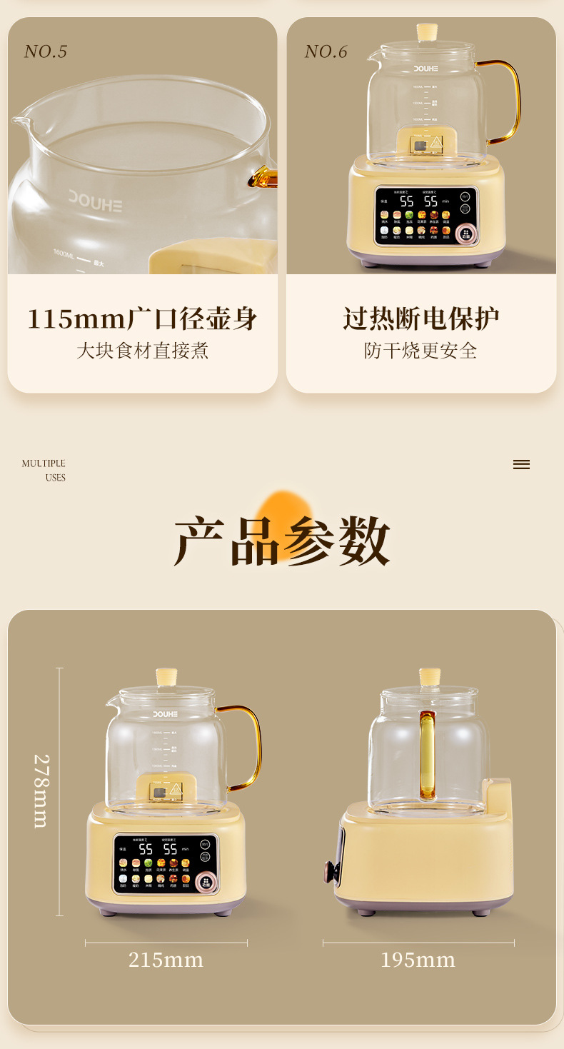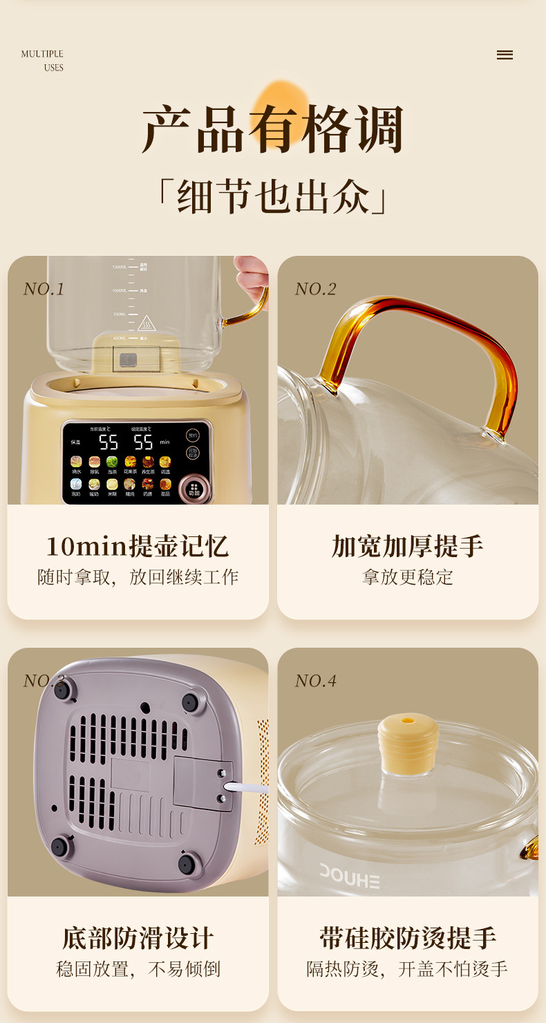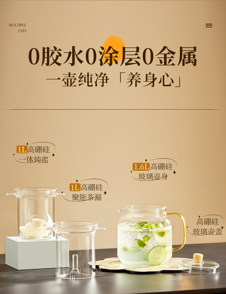 Douhe 전체 유리 항온 건강 보존 주전자 가정용 다기능 사무실 작은 차 전기 주전자 2025 새로운 스타일스토어 가기